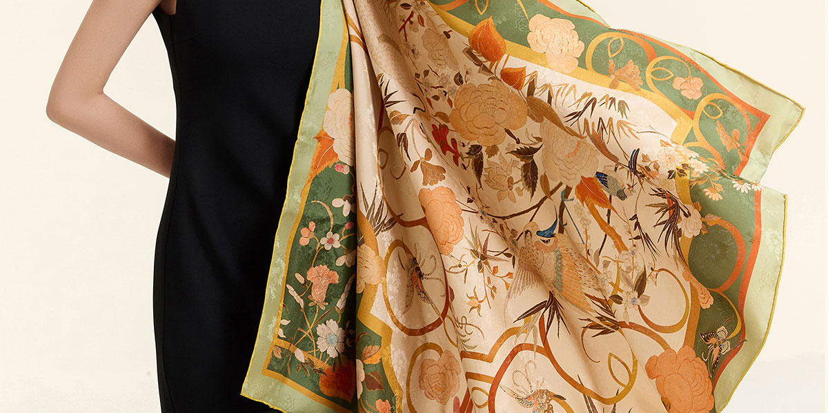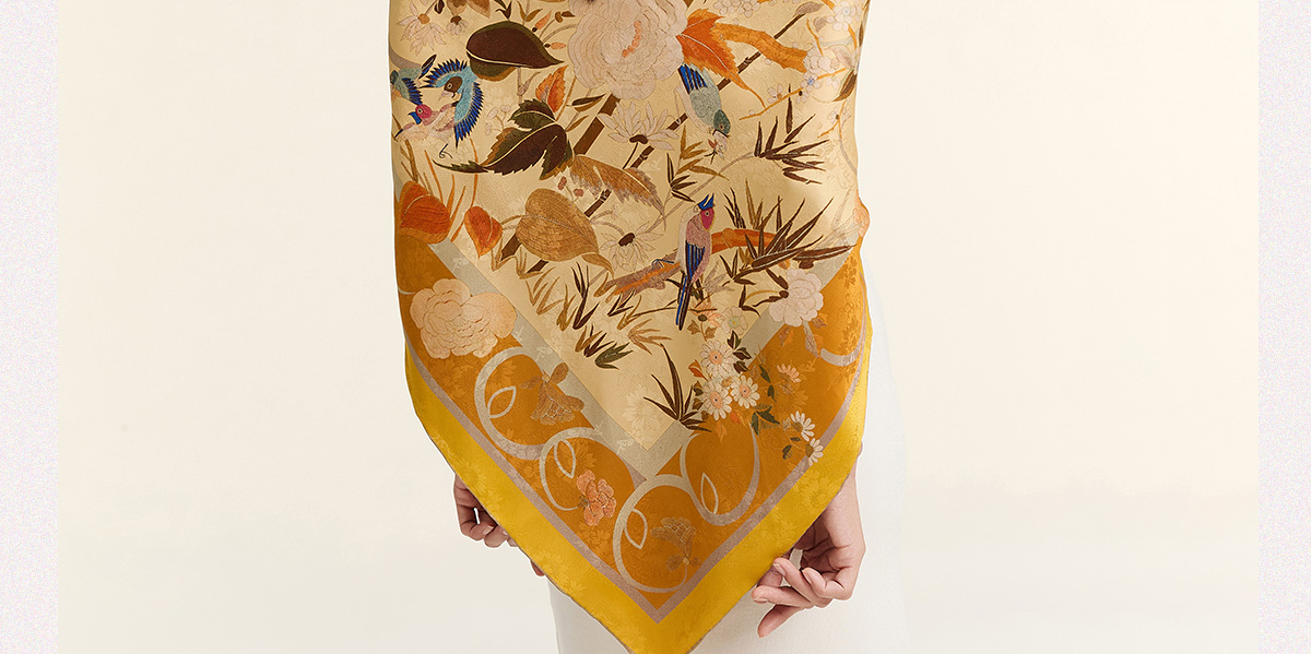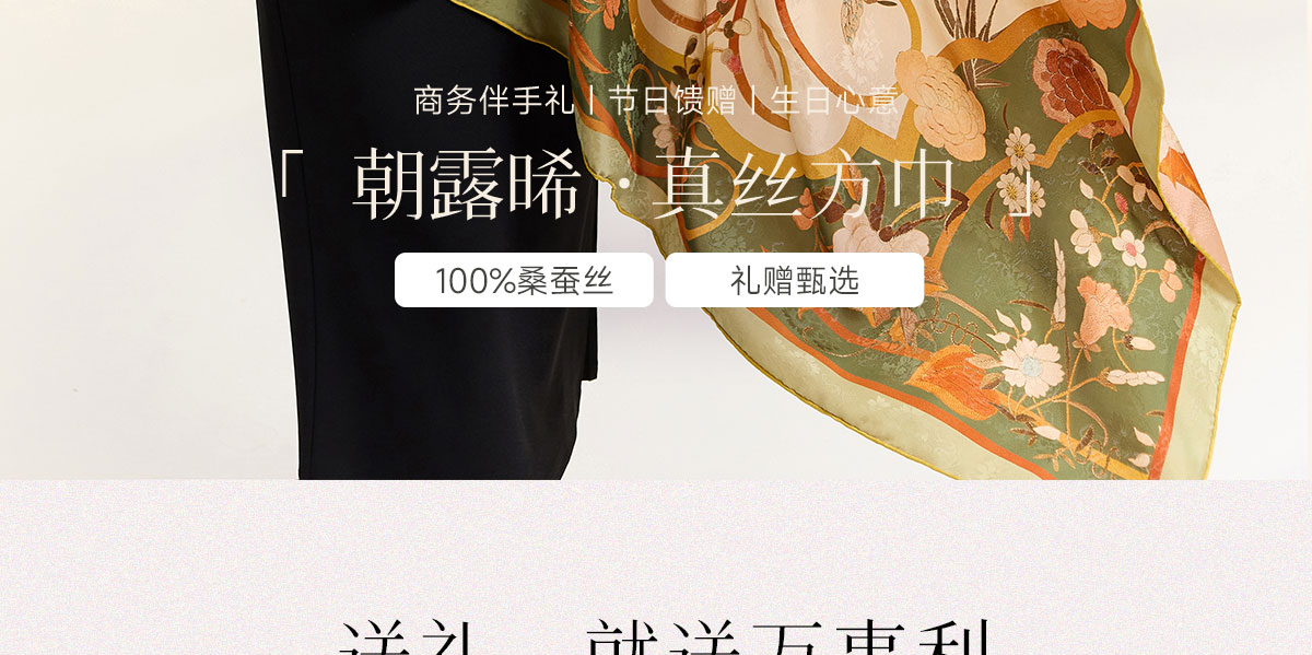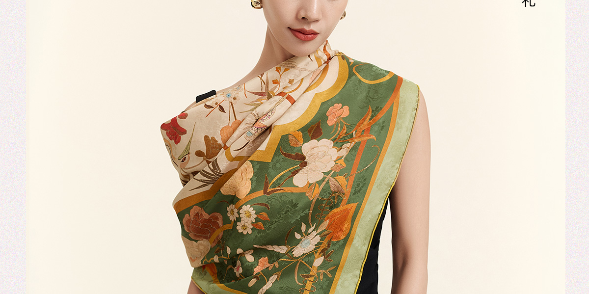万事利“朝露晞”105厘米新丝绸双面印花大方巾