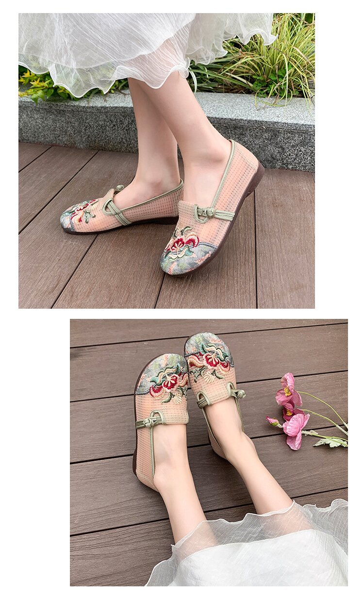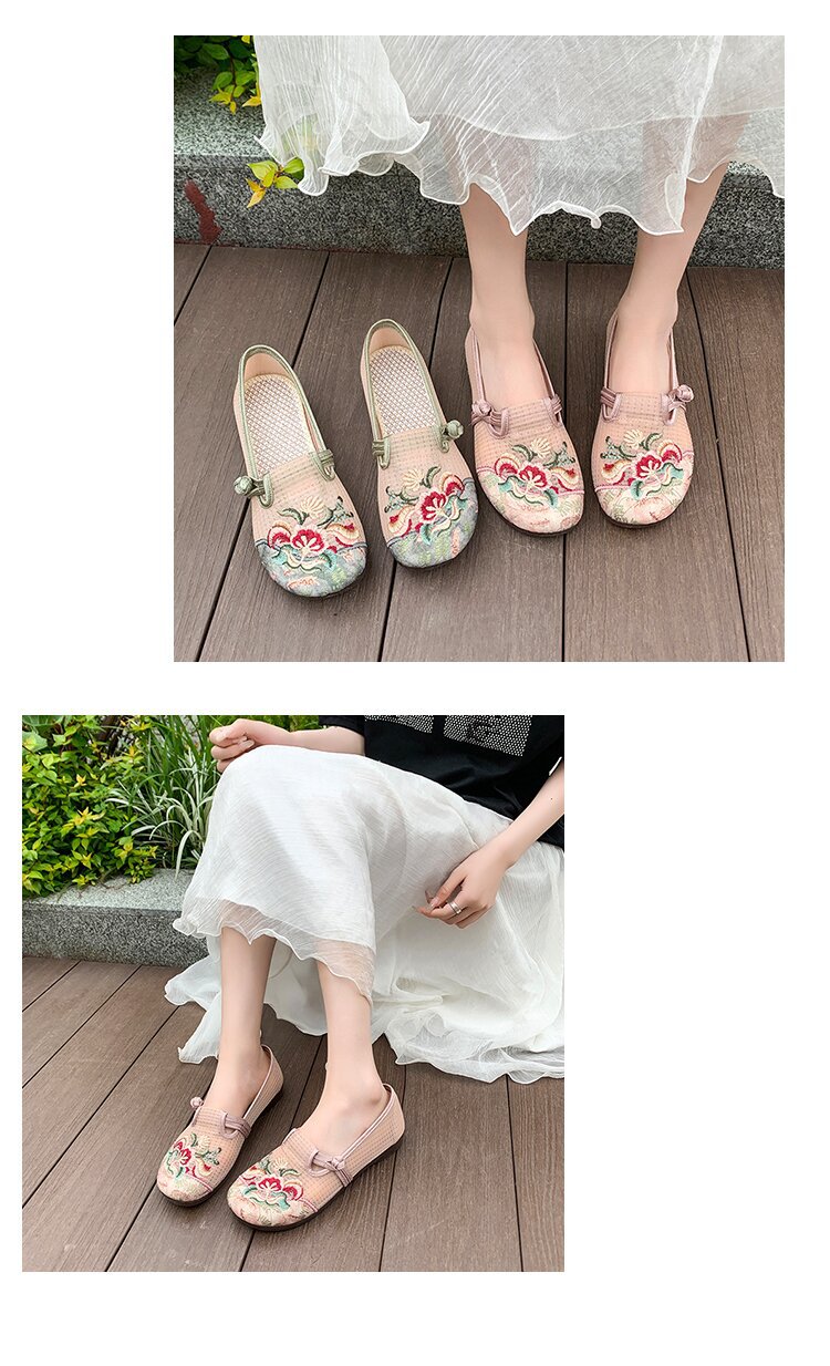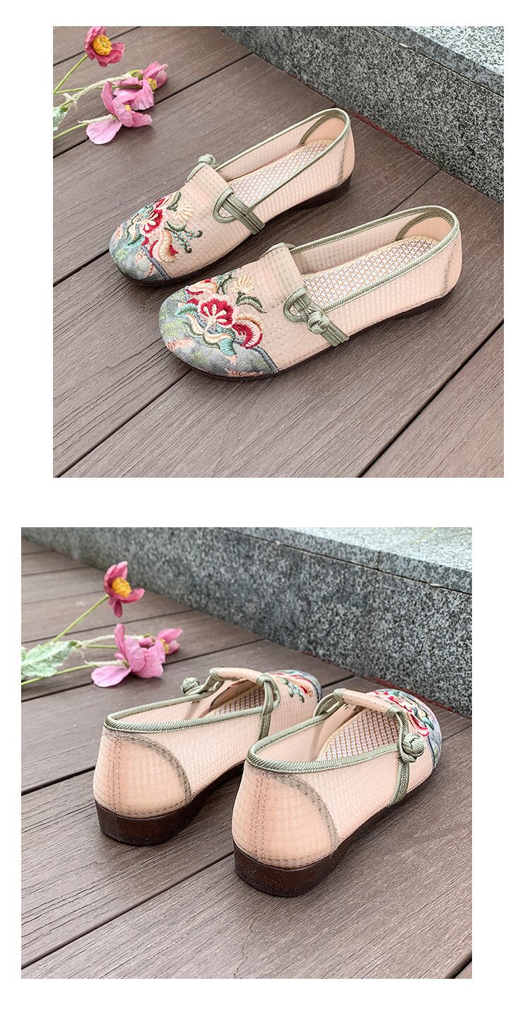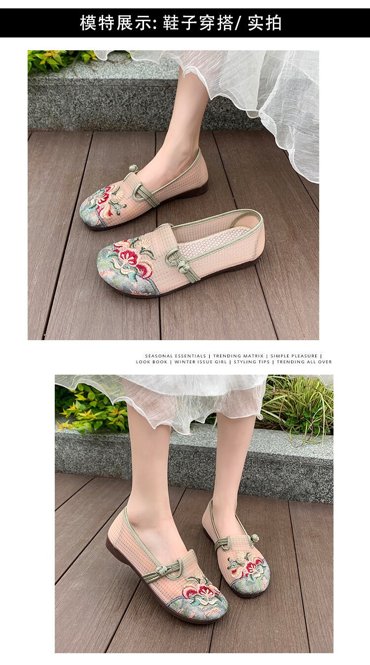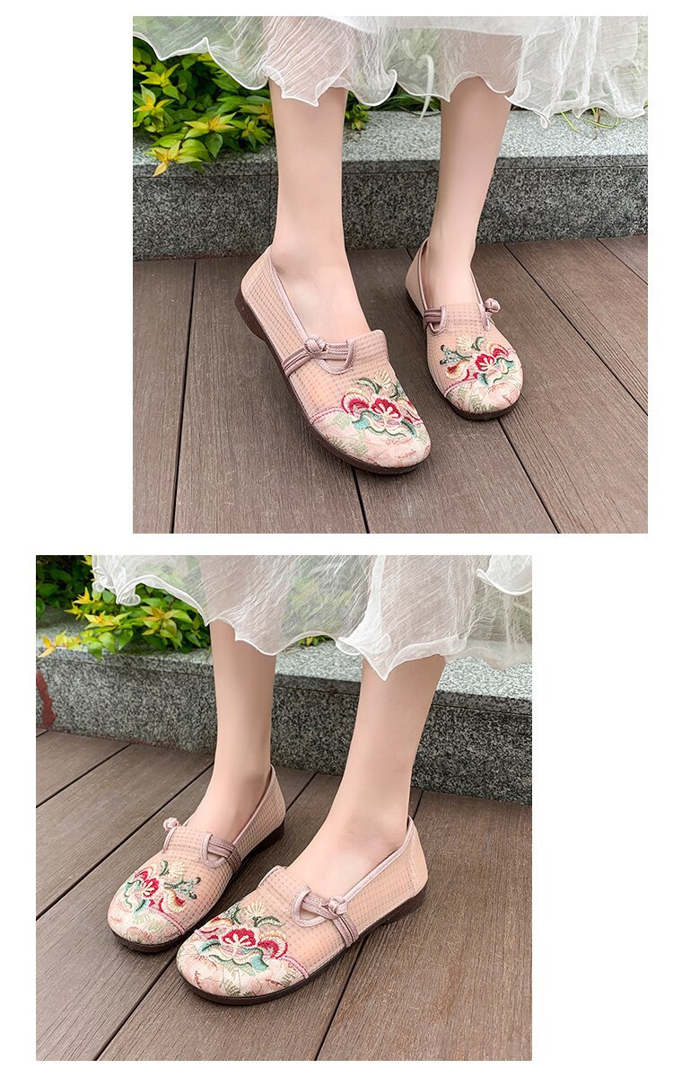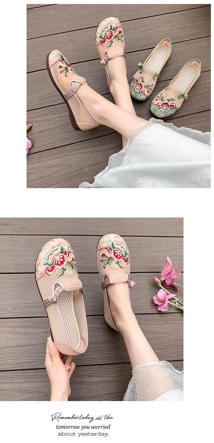清完下架【意迪森】X6-NT96绣花一脚蹬夏季网面透气女鞋软底妈妈平底老北京布鞋