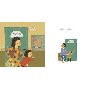 "这是一本双面书。正背面分别讲述小男孩跟爸爸和小女孩跟妈妈去浴池洗澡的故事。当两位小主人公脱下衣服后,发现自己和父母其中一方的身体有所不同,妈妈和爸爸针对彼此身体不同的地方给予孩子正确的解释,并对性这个话题进行了□初的启蒙。两个小主人公通过观察和父母的正确引导,从外观和基本生理结构发育,了解到男性和女性的不同,很适合作为儿童性早期教育读本。"
