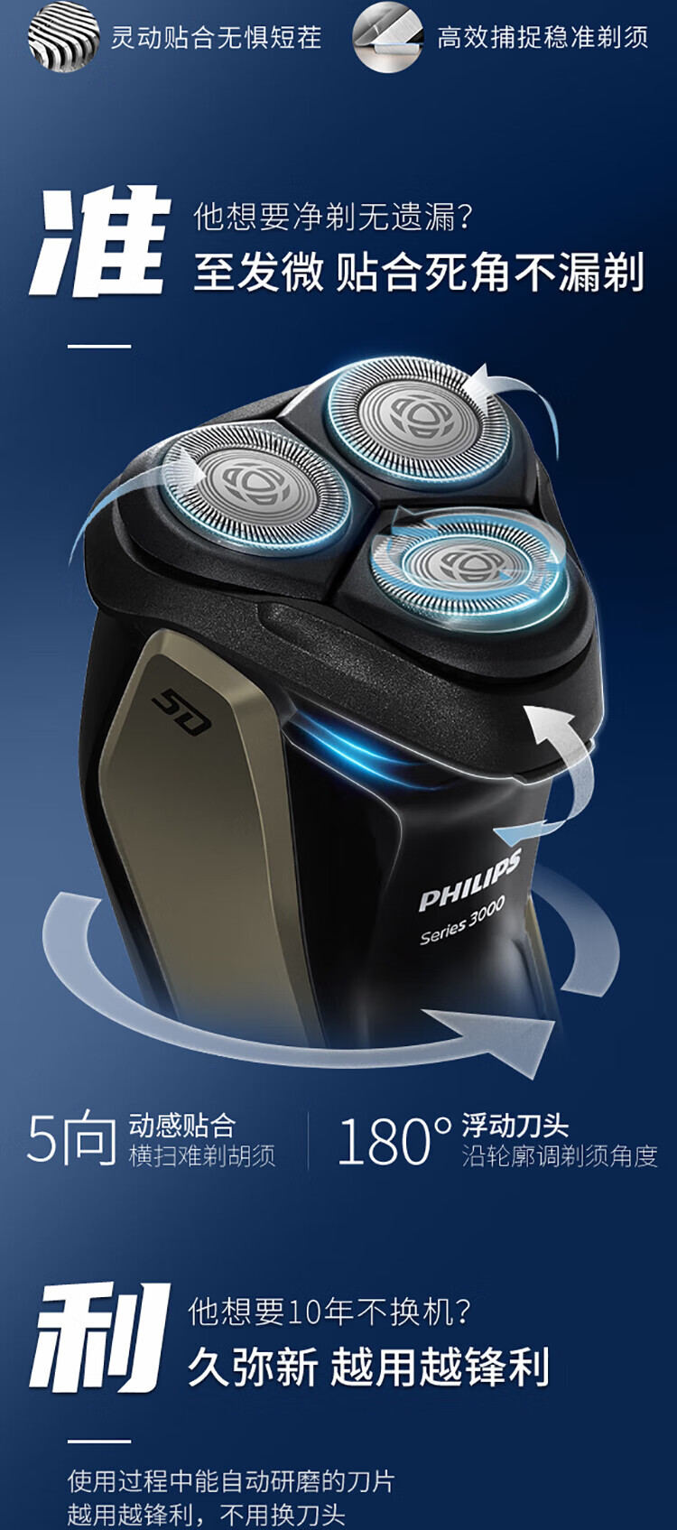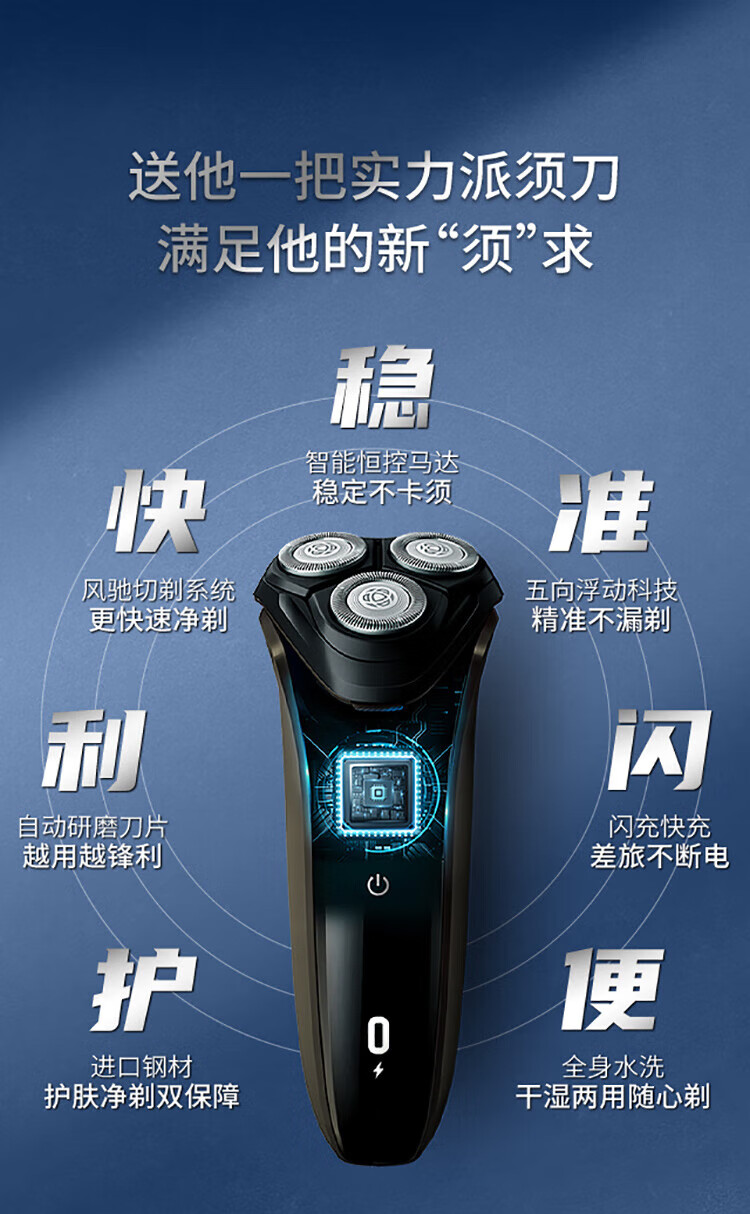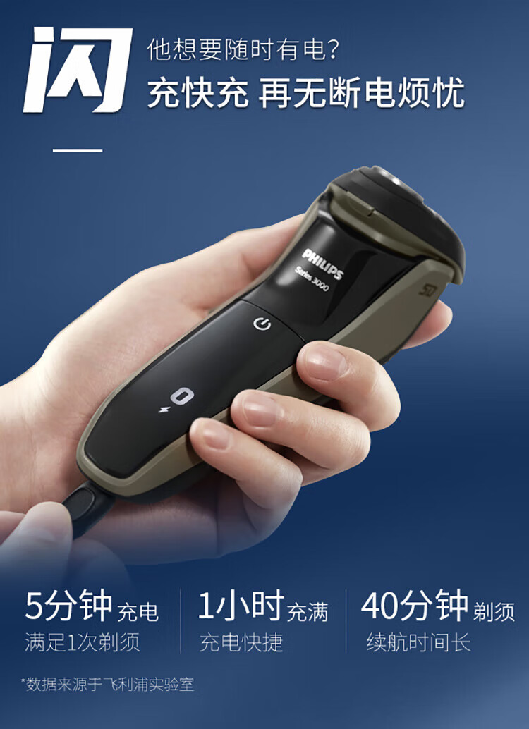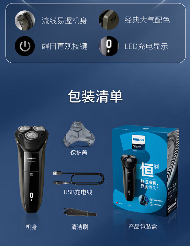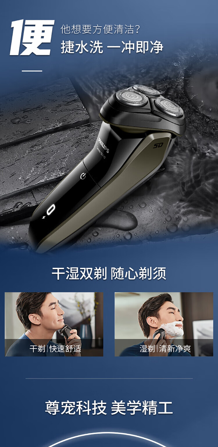 飞利浦PHILIPS男士电动剃须刀干湿双剃刮胡刀新3系升级款S3108