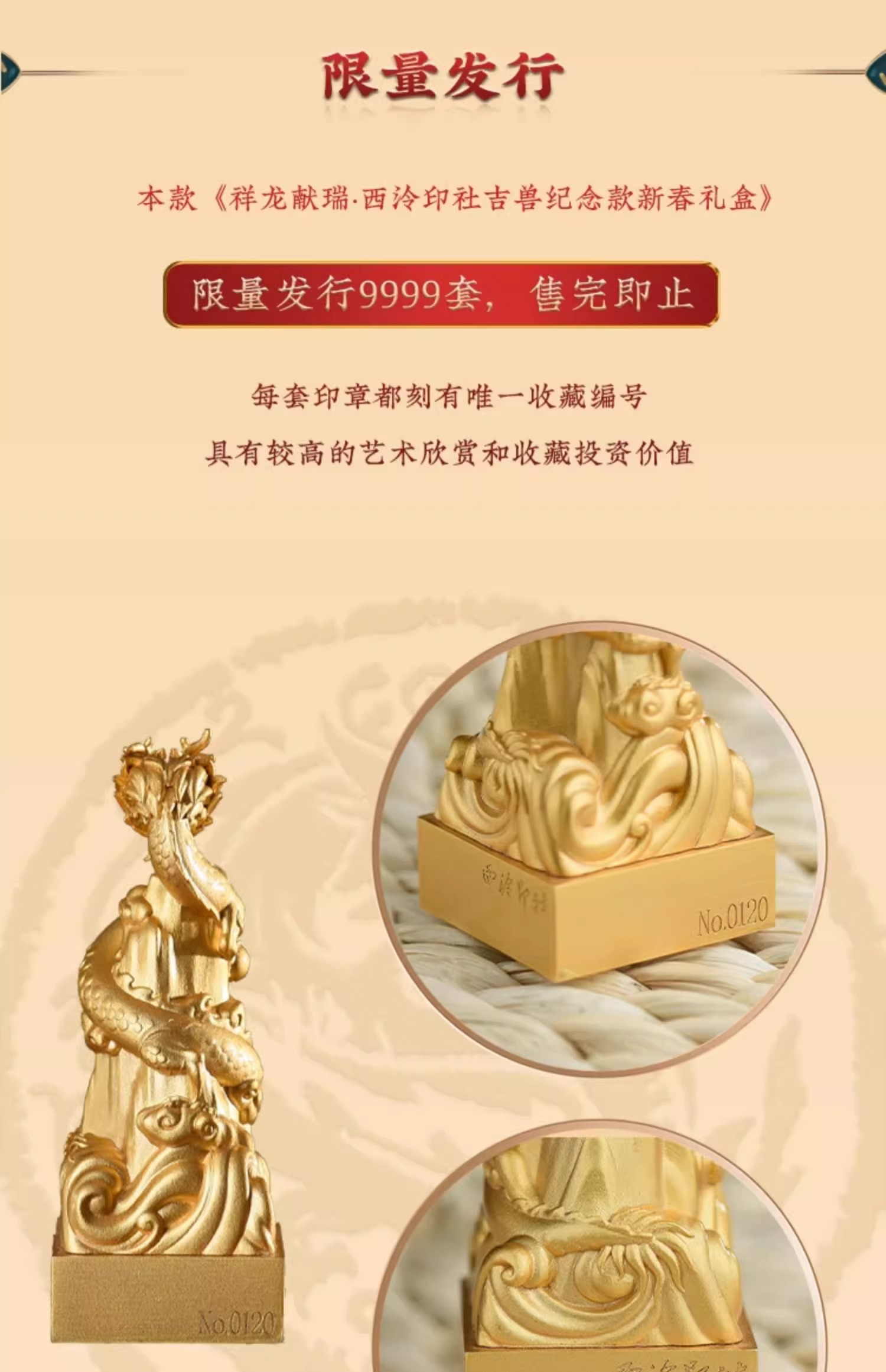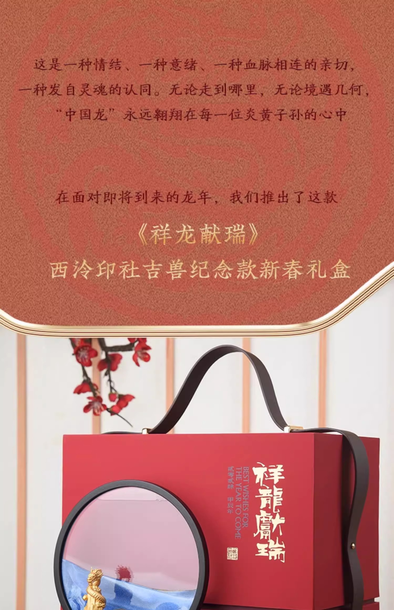 西泠印社2024龙年年礼《祥龙献瑞》生肖印章春节商务礼品送礼套装