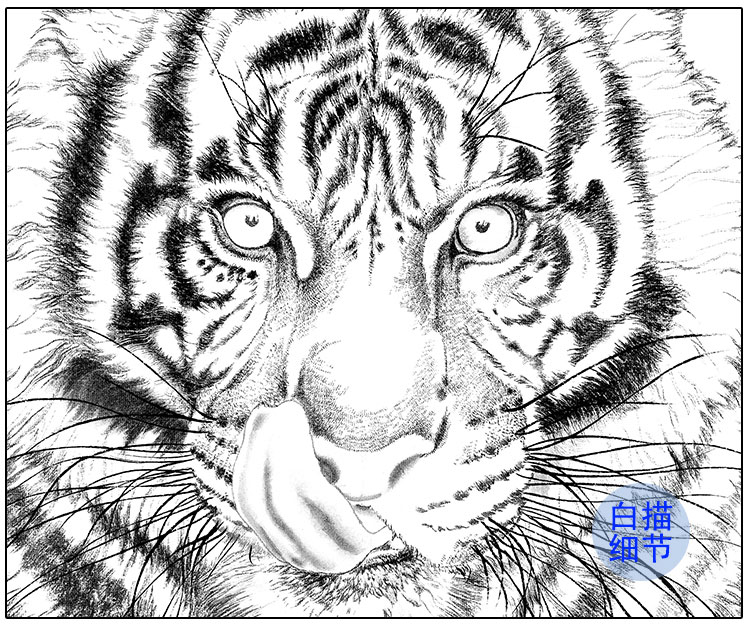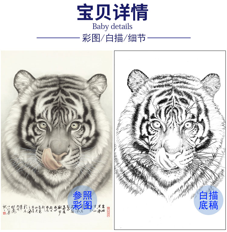 竖幅工笔动物白描底稿-刘继彪-老虎头-A632