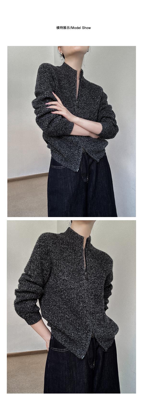 奥篇“旧时光”AB纱杂色立领拉链针织开衫 复古摩登