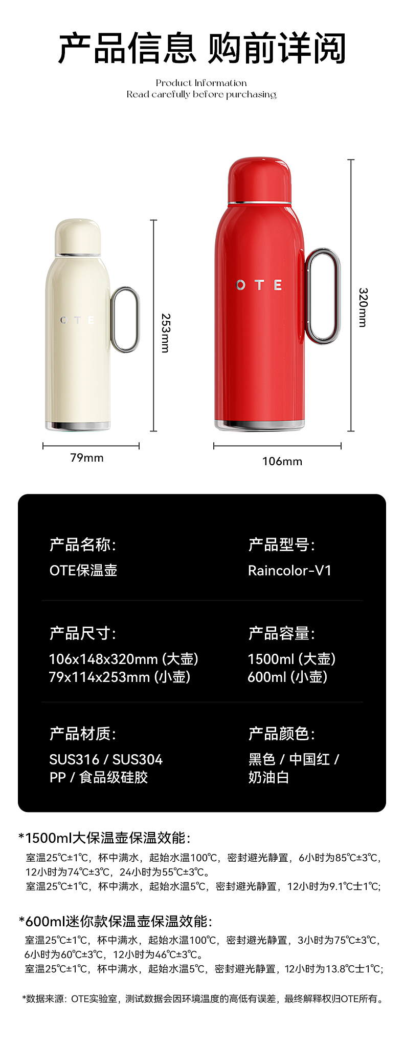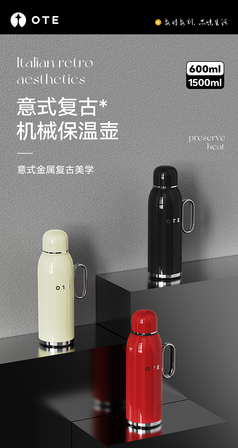 OTE欧堤保温壶大容量家用焖茶暖水不锈钢内胆便携热水水瓶茶壶礼物 【600ml】316不锈钢无缝内胆