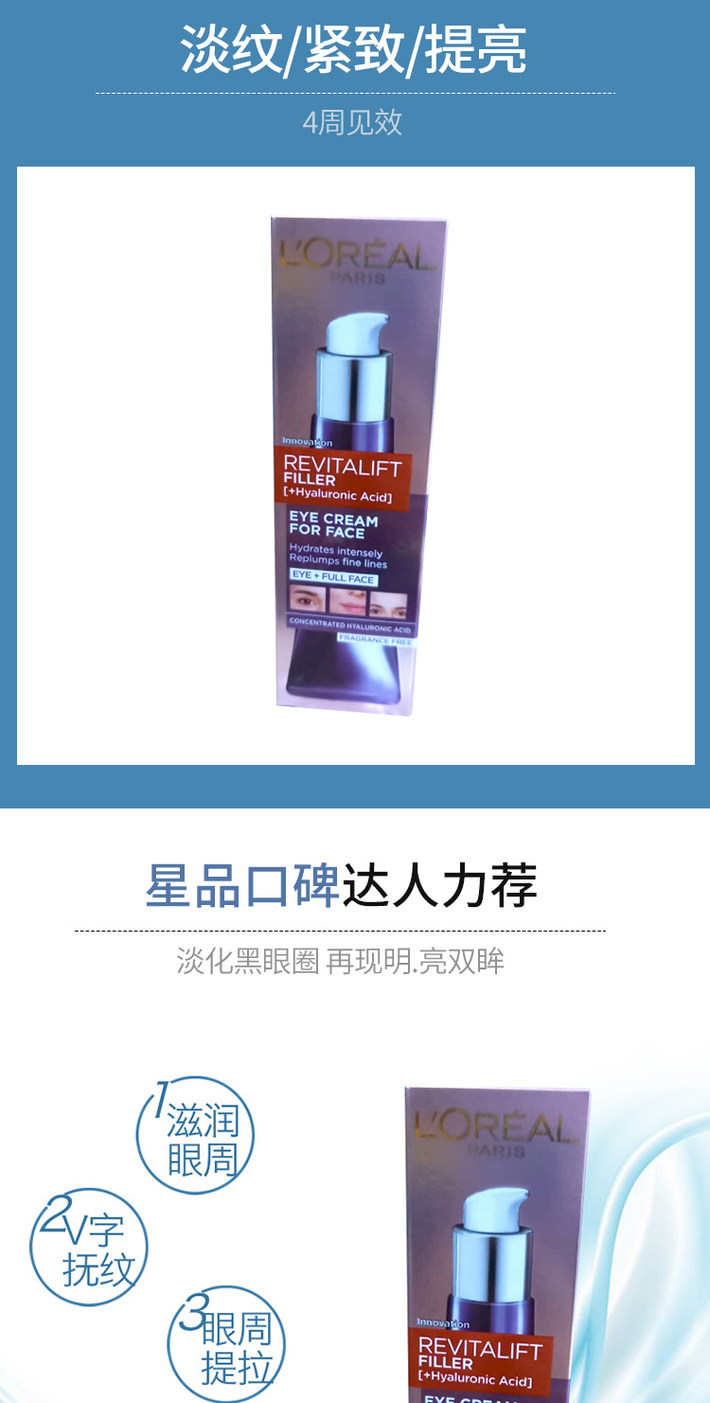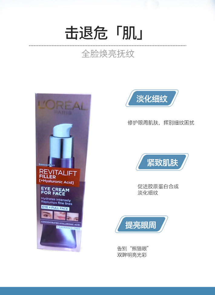 【门店直发】欧莱雅玻尿酸全脸淡纹小烫斗眼霜30ml(新老包装随机发货)