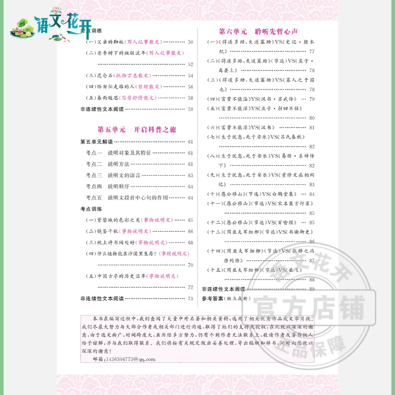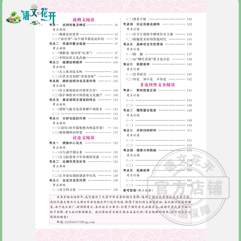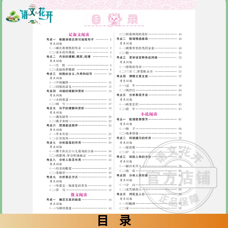 2025秋新版语文花开初中语文现代文阅读阅读理解训练提分法宝赠名著测试卷七年级八年级九年级