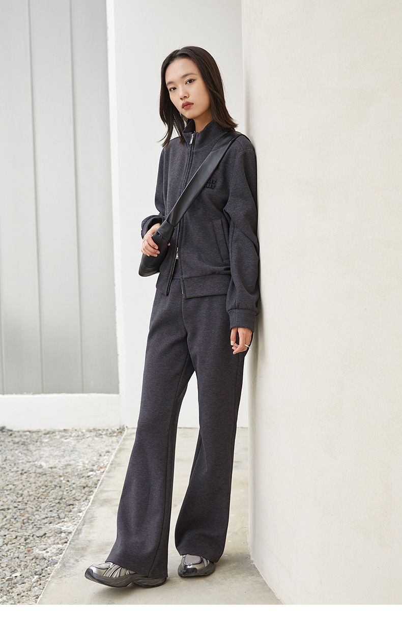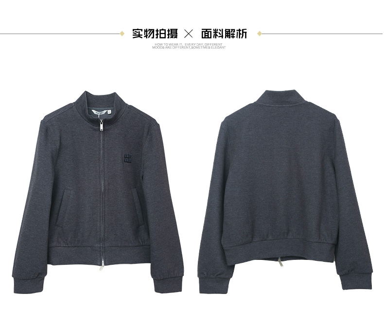 深灰色立领拉链运动风外套 刺绣字母短款夹克 秋冬季休闲百搭显瘦女式卫衣开衫