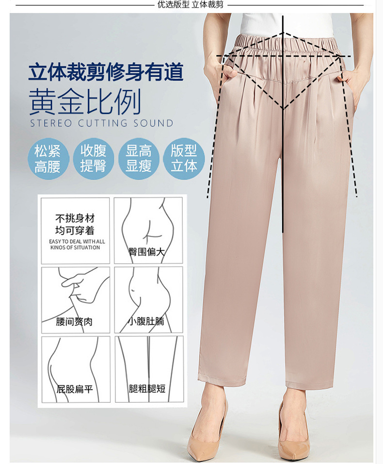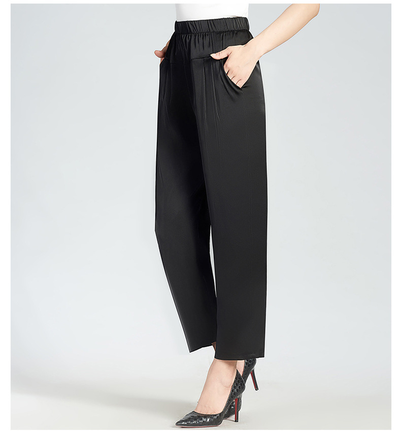 MQ-JNJP204夏装薄款宽松休闲高腰仿真丝九分裤YY