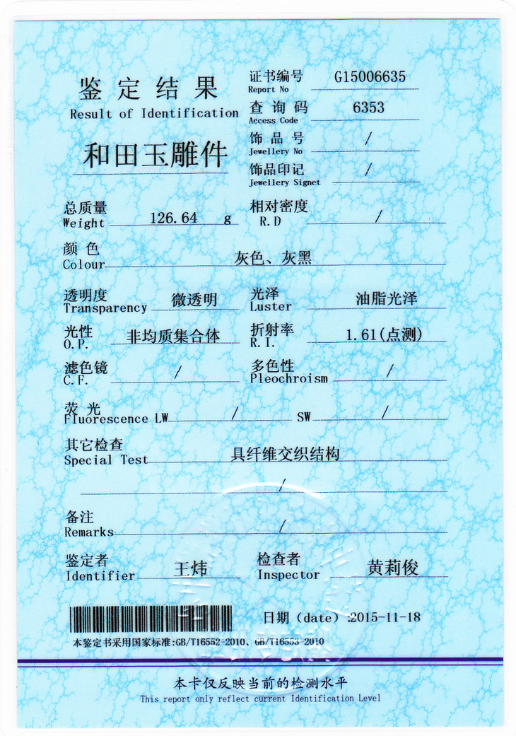 证书号:G15006635