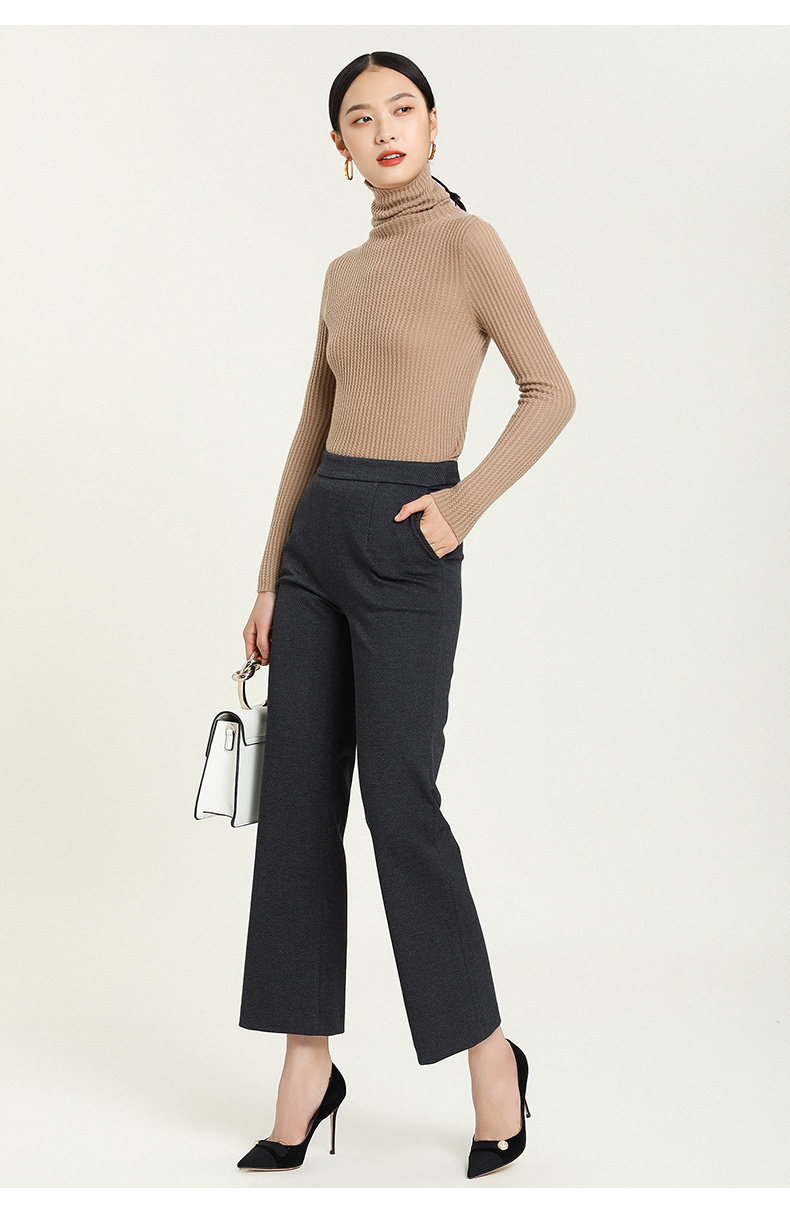 乔万尼舒适直筒微喇裤女秋冬高腰显瘦休闲裤宽松女裤子修身时尚ES4F312