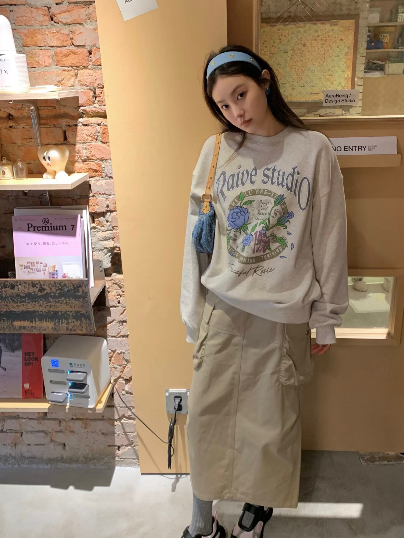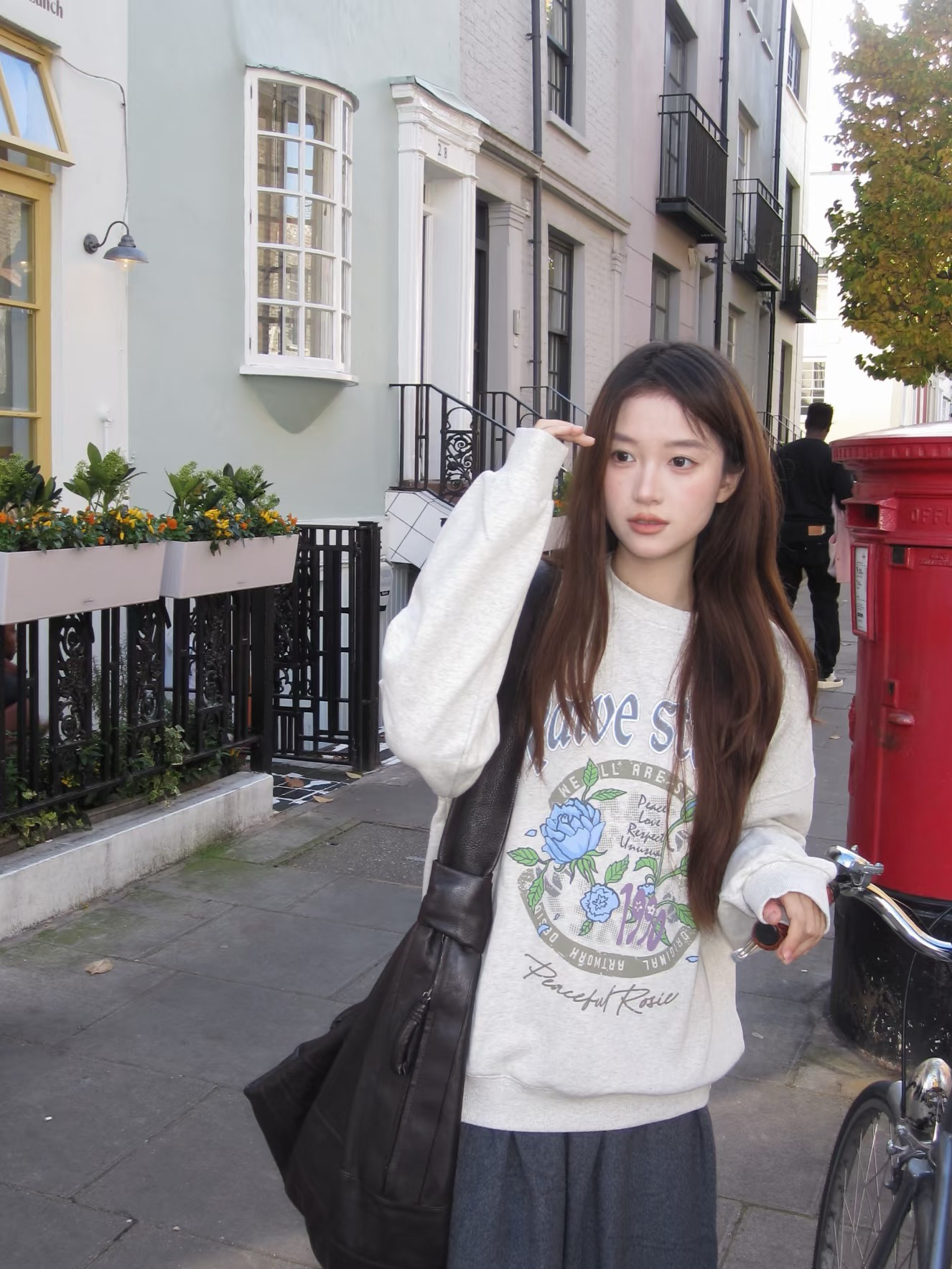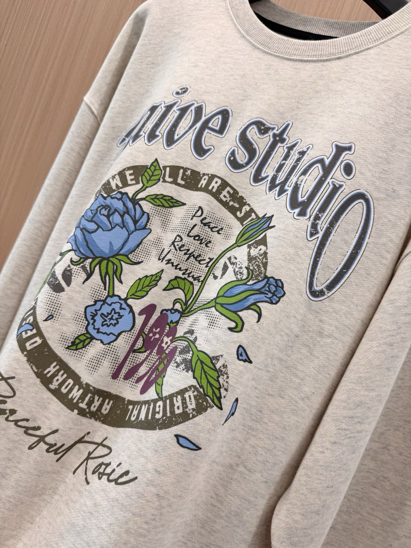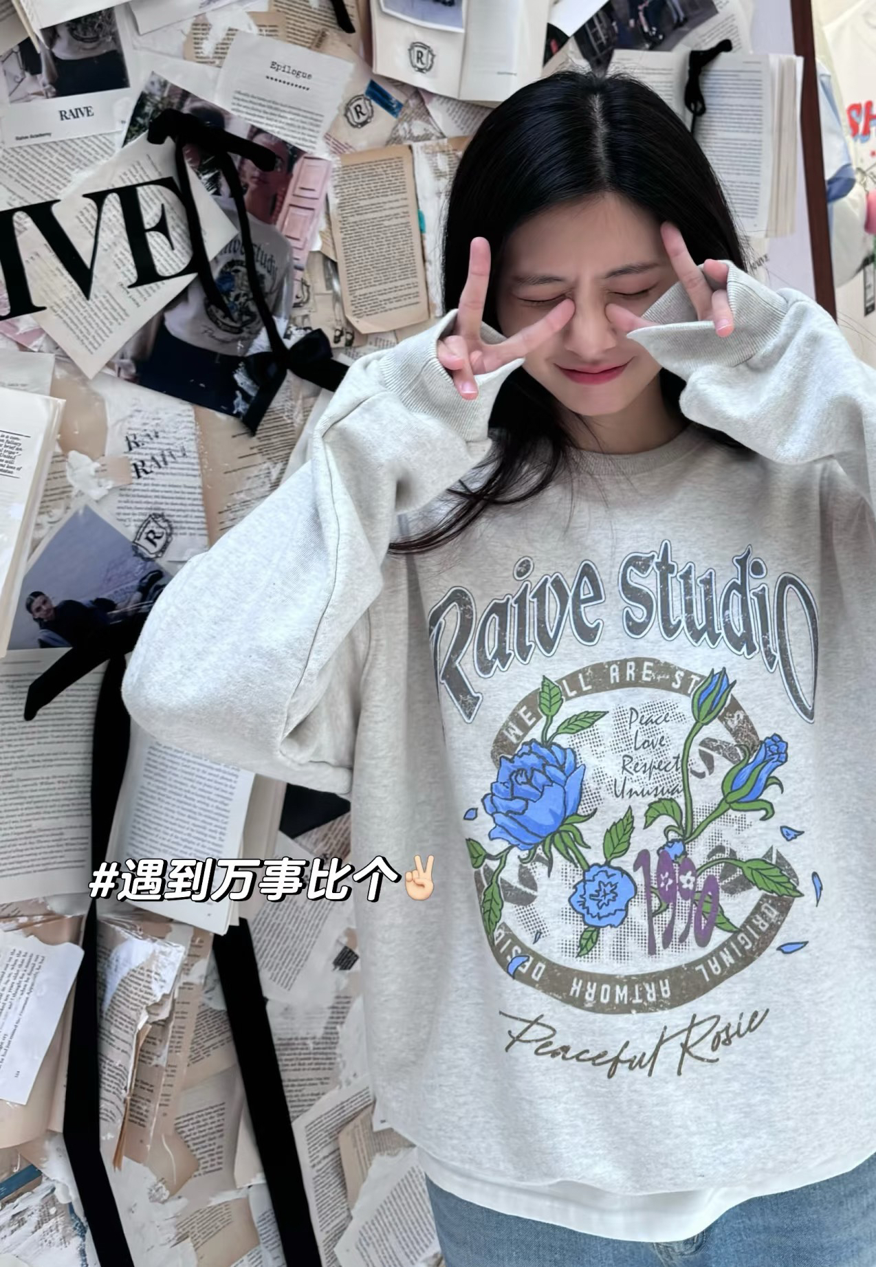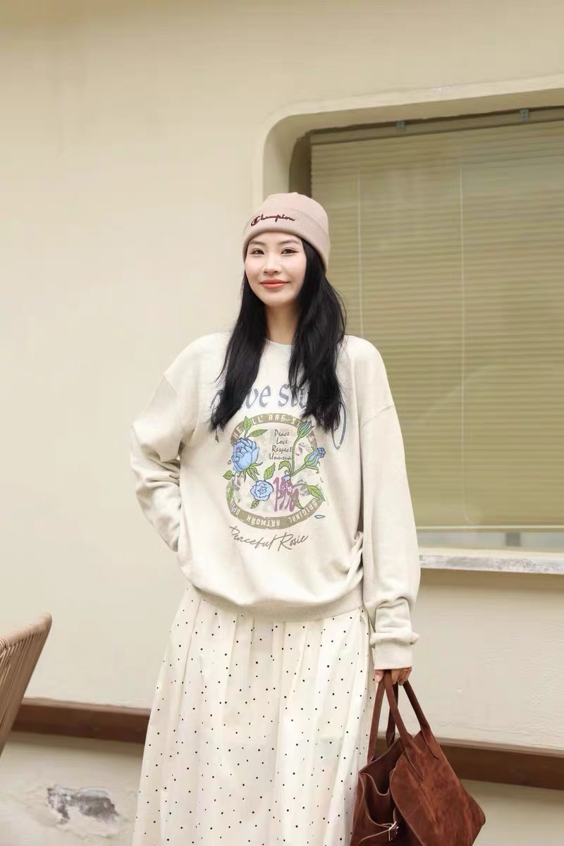 真的好!这卫衣的版型就真的是绝了,你可以没有好的身材,好的气质,你可以驼背,你也可以不用摆造型,上身后就版型特别好,先是它的颜色,真的太起脸了,太正了,正版面料真的是设计师用心设计的,颜色显得人很温柔,不突兀的颜色设计,真的太正了,印花的质感,配色:灰紫色蓝色,灰绿色,绿色,白色在这个浅米灰的面料上太好看了,对眼睛都很友好!