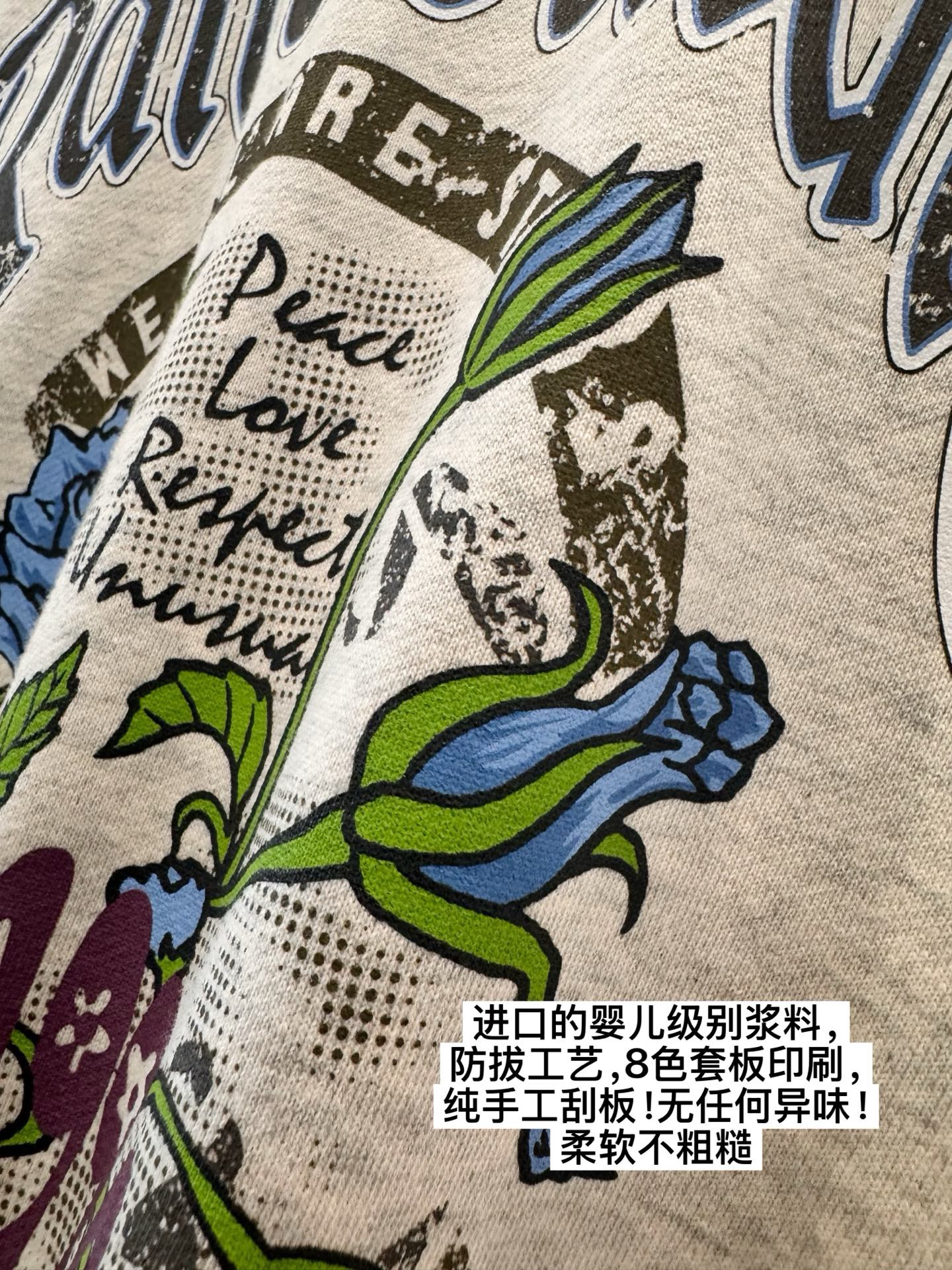 这款印花用的更贵,进口的婴儿级别浆料,防拔工艺,8色套板印刷,纯手工刮板!以前我给你们发过工艺视频!