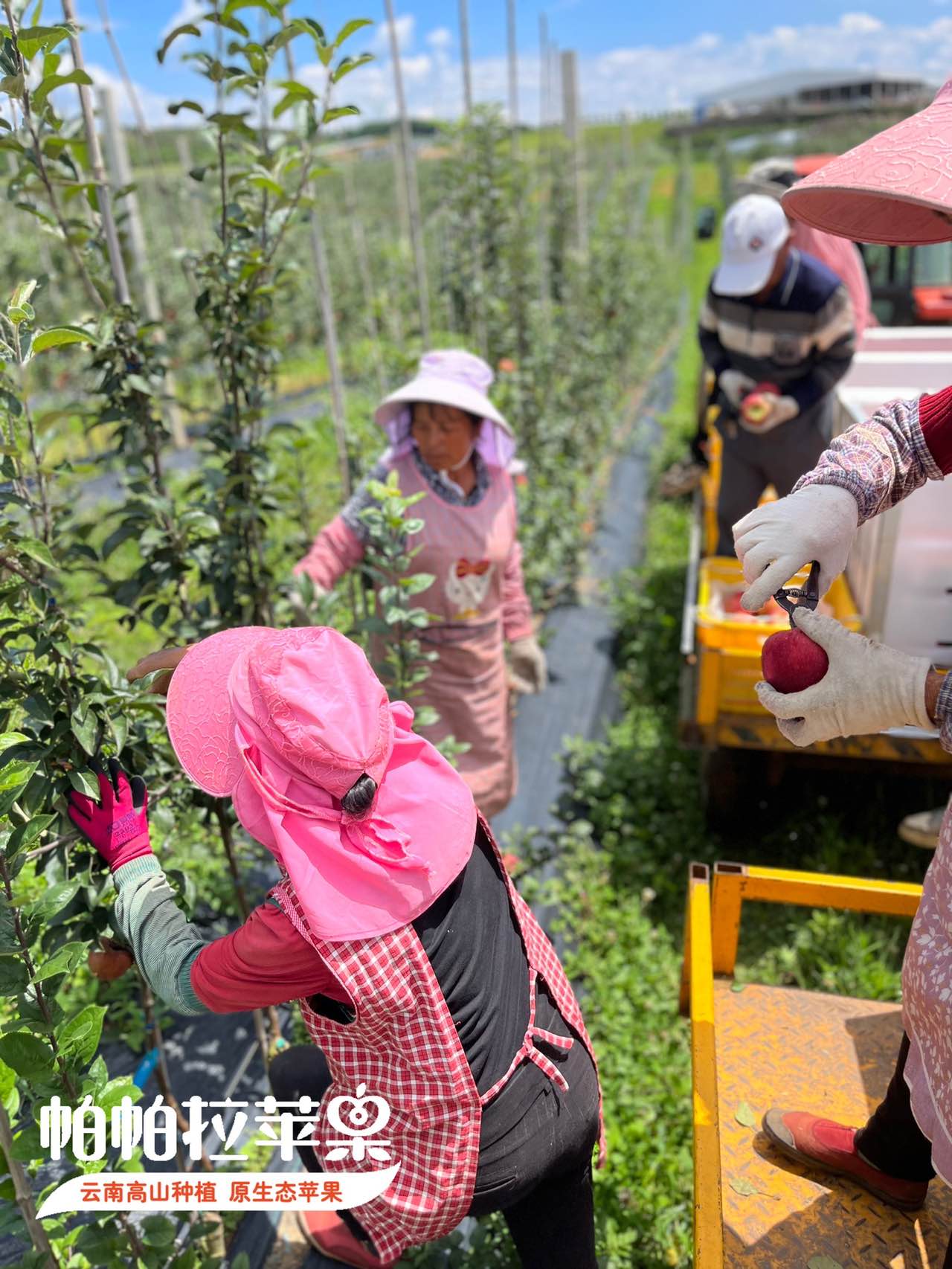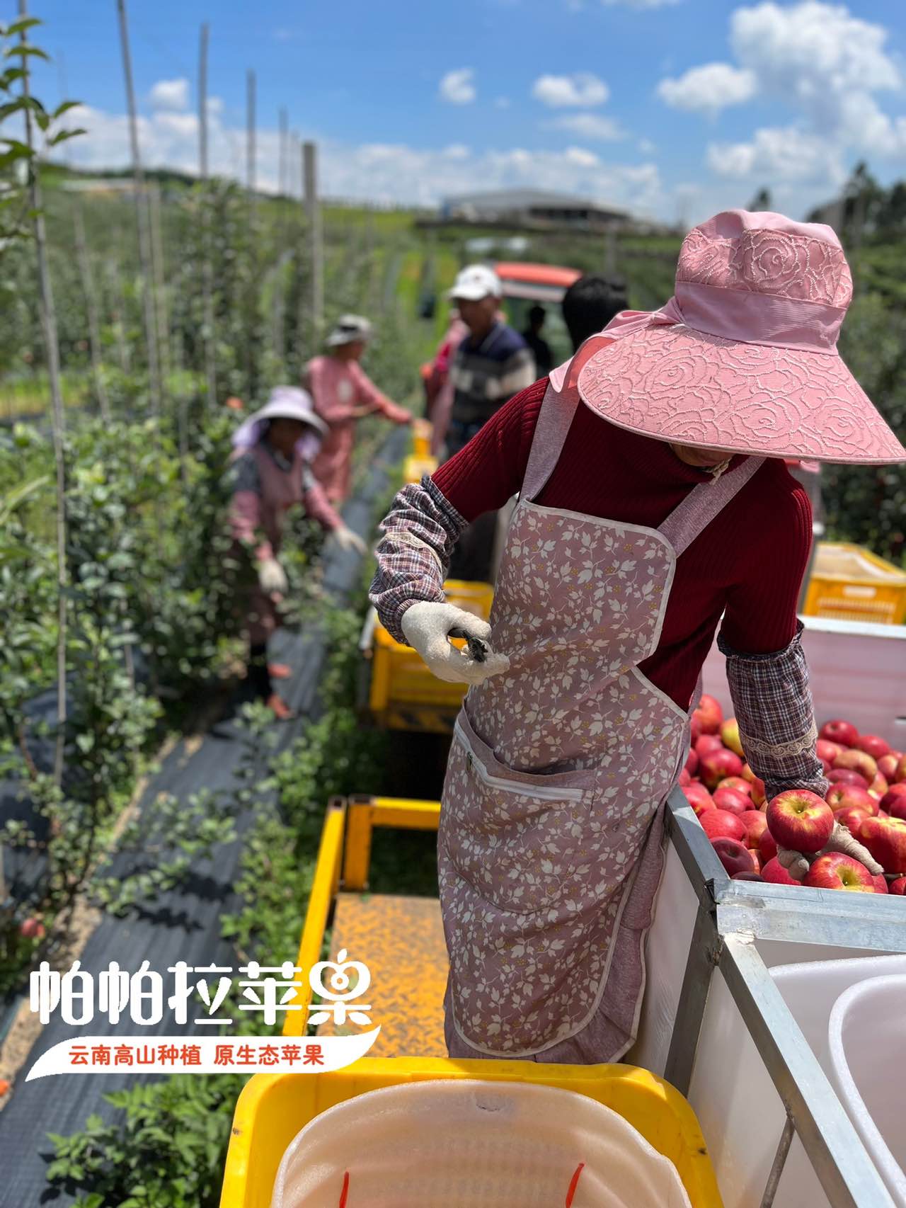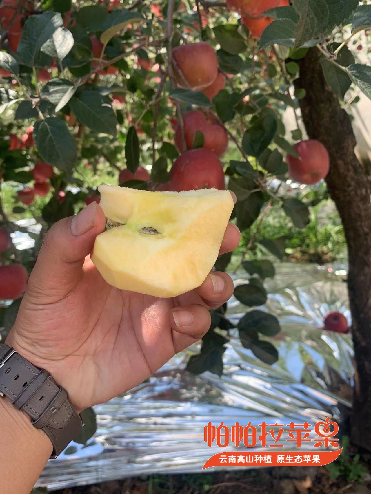 云南的苹果产区,位于海拔2000米以上的深山之中,苹果生长纬度低海拔高,光照充足,昼夜温差大。苹果白天着色,夜晚果肉化糖。