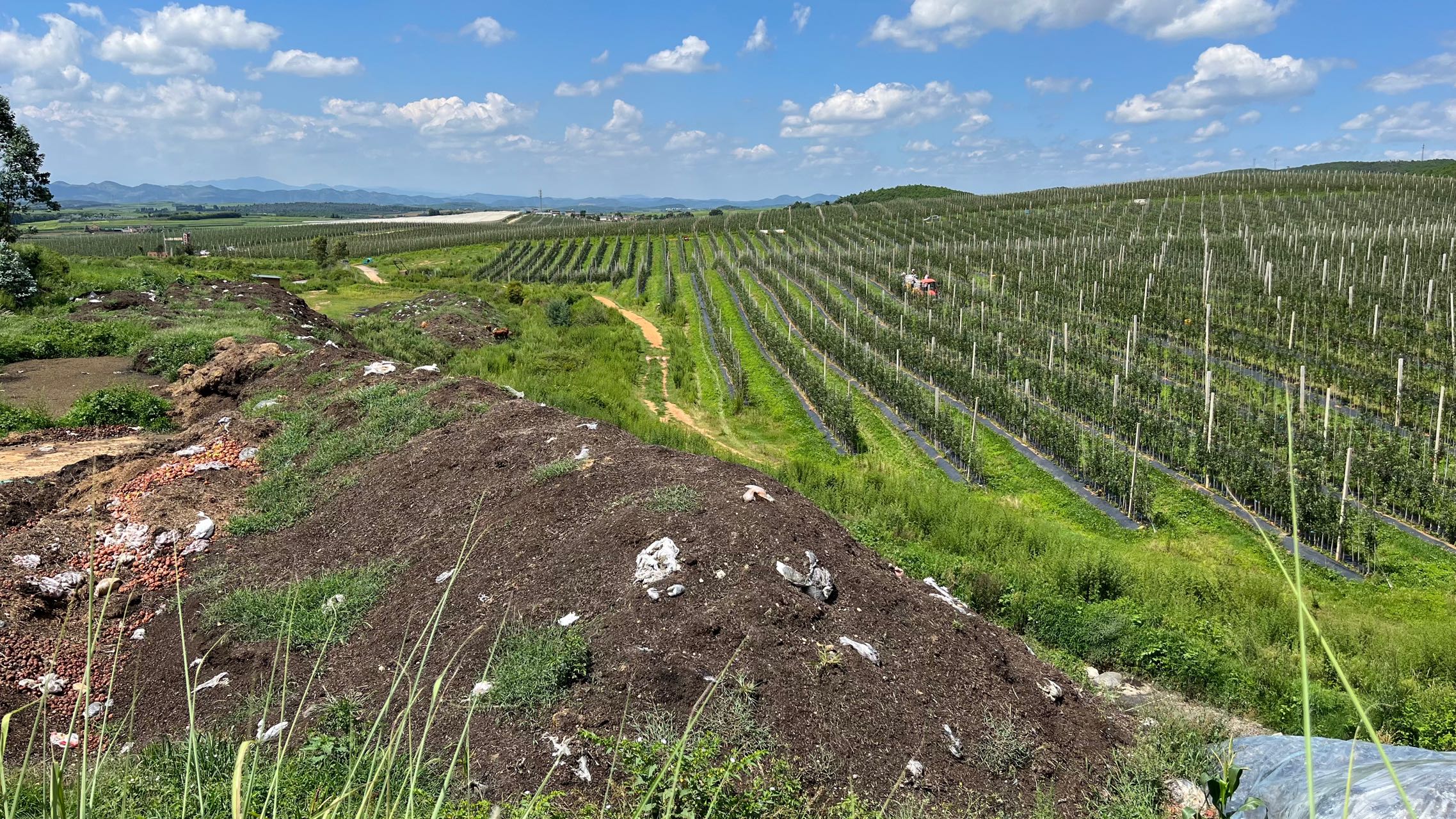 这里地处丘陵,气温昼高夜低,是苹果理想的生存环境。白天日照充足、风速均匀,苹果旺盛地代谢生长;夜晚气温骤降,减少呼吸损耗,利于糖分累积。