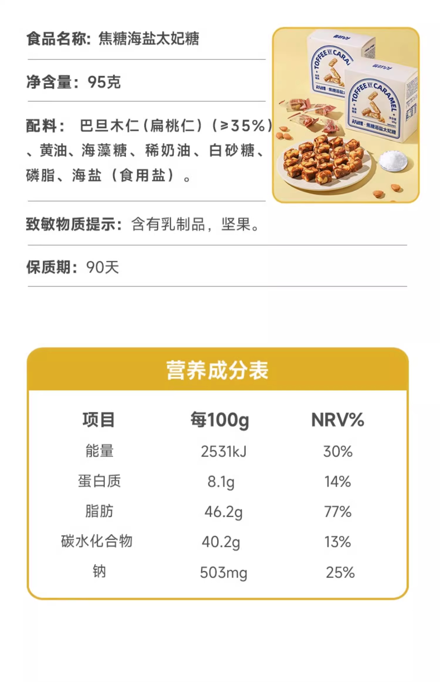 【糖香浓郁 酥脆清爽】元气怪兽法式太妃糖 咖啡/焦糖海盐/生椰口味糖 网红零食办公休闲解馋伴侣零食 95g/盒