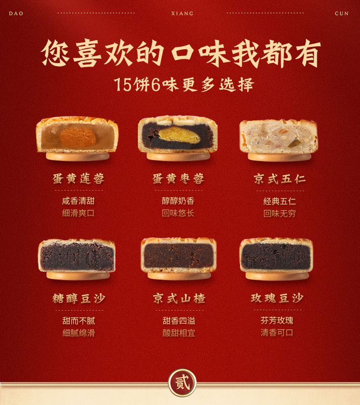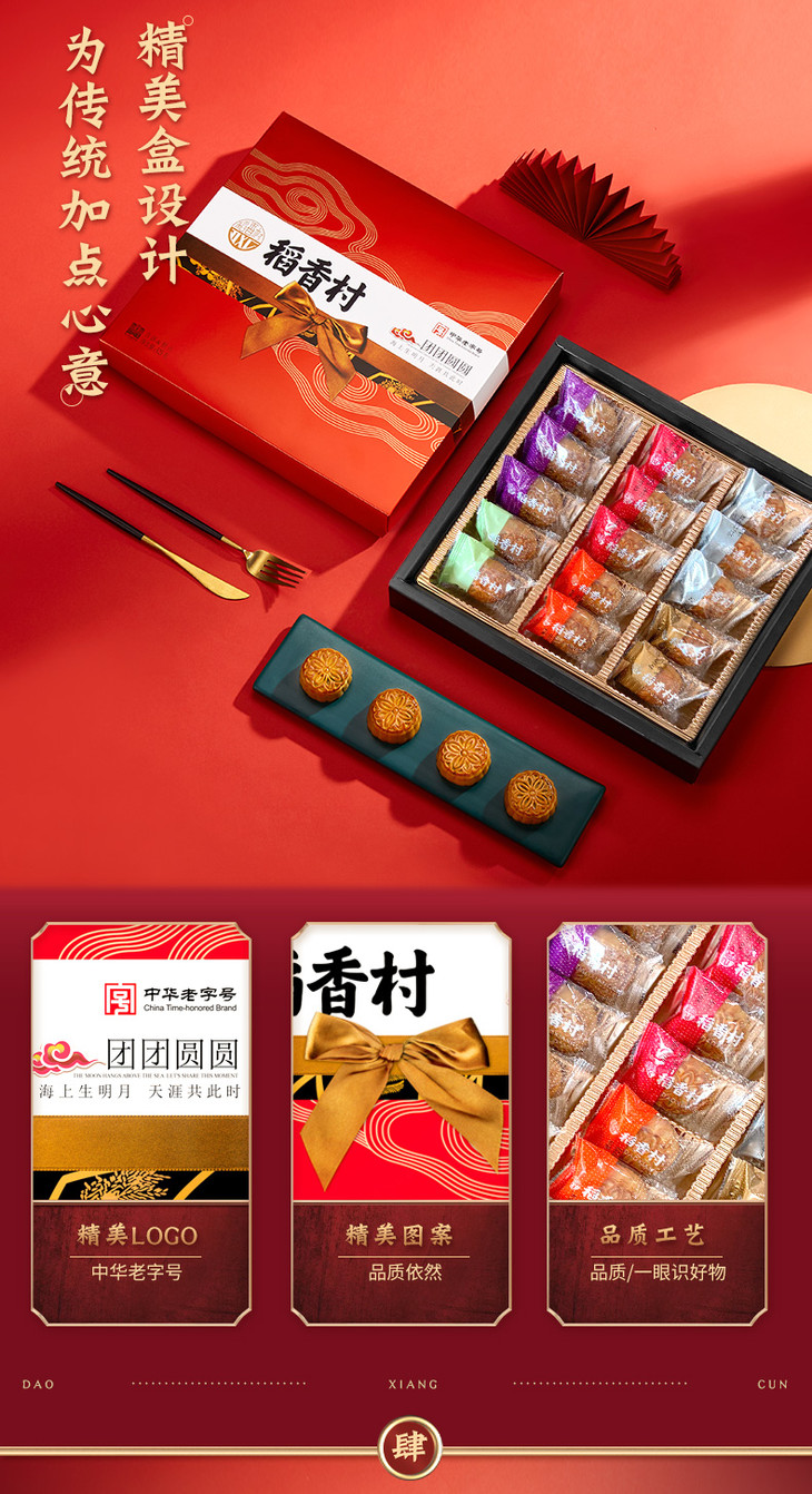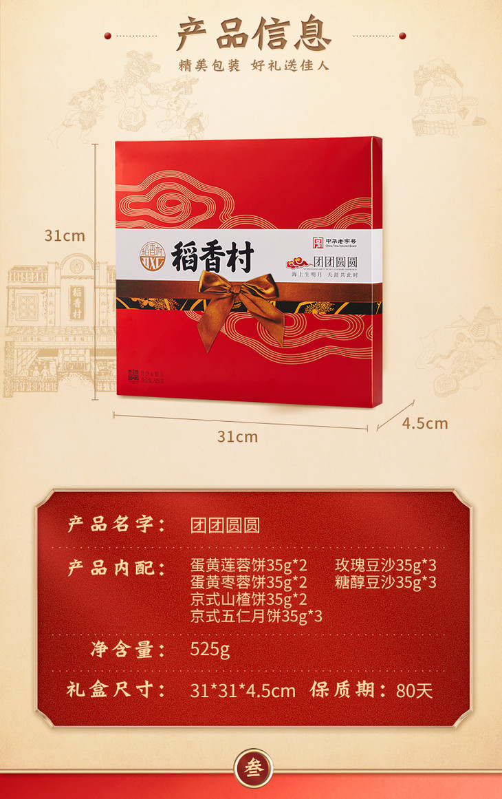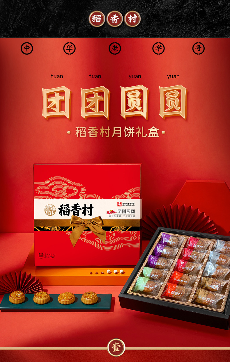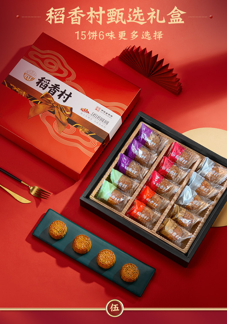 【中秋团圆礼】稻香村团团圆圆月饼礼盒广式蛋黄莲蓉京式五仁糖醇豆沙6味15饼/525g月饼礼盒
