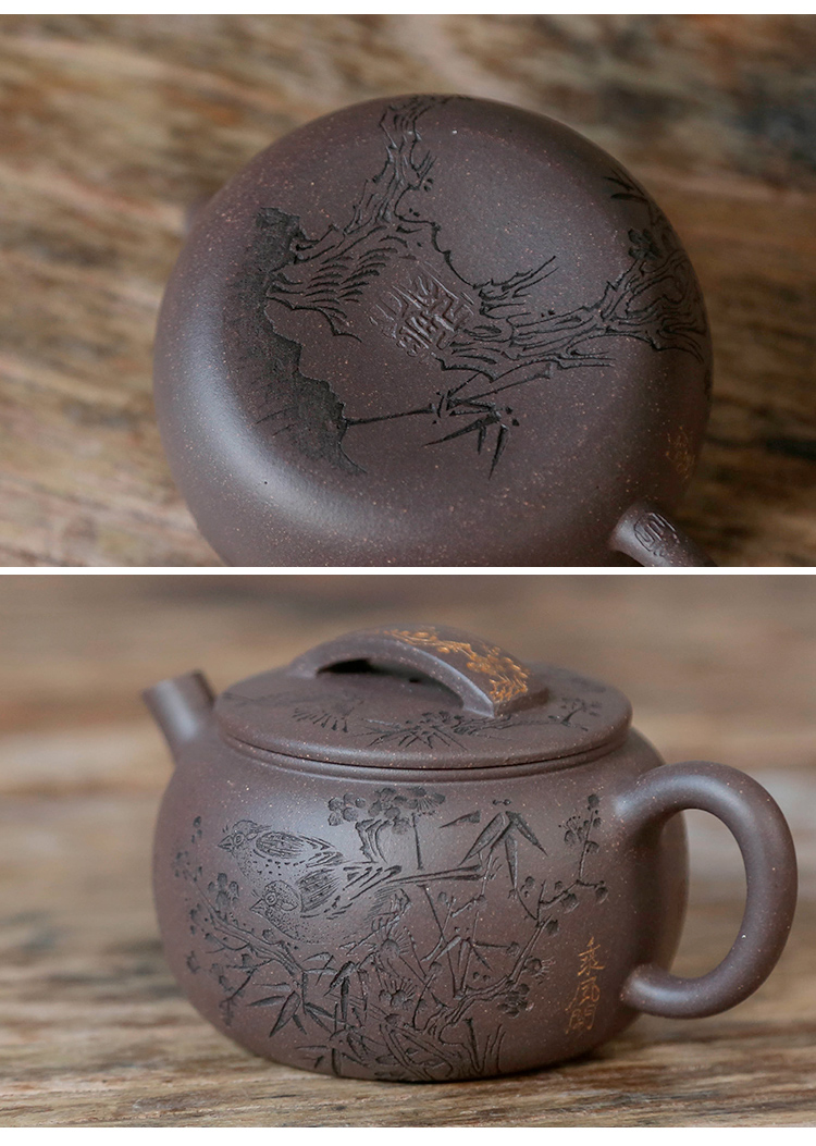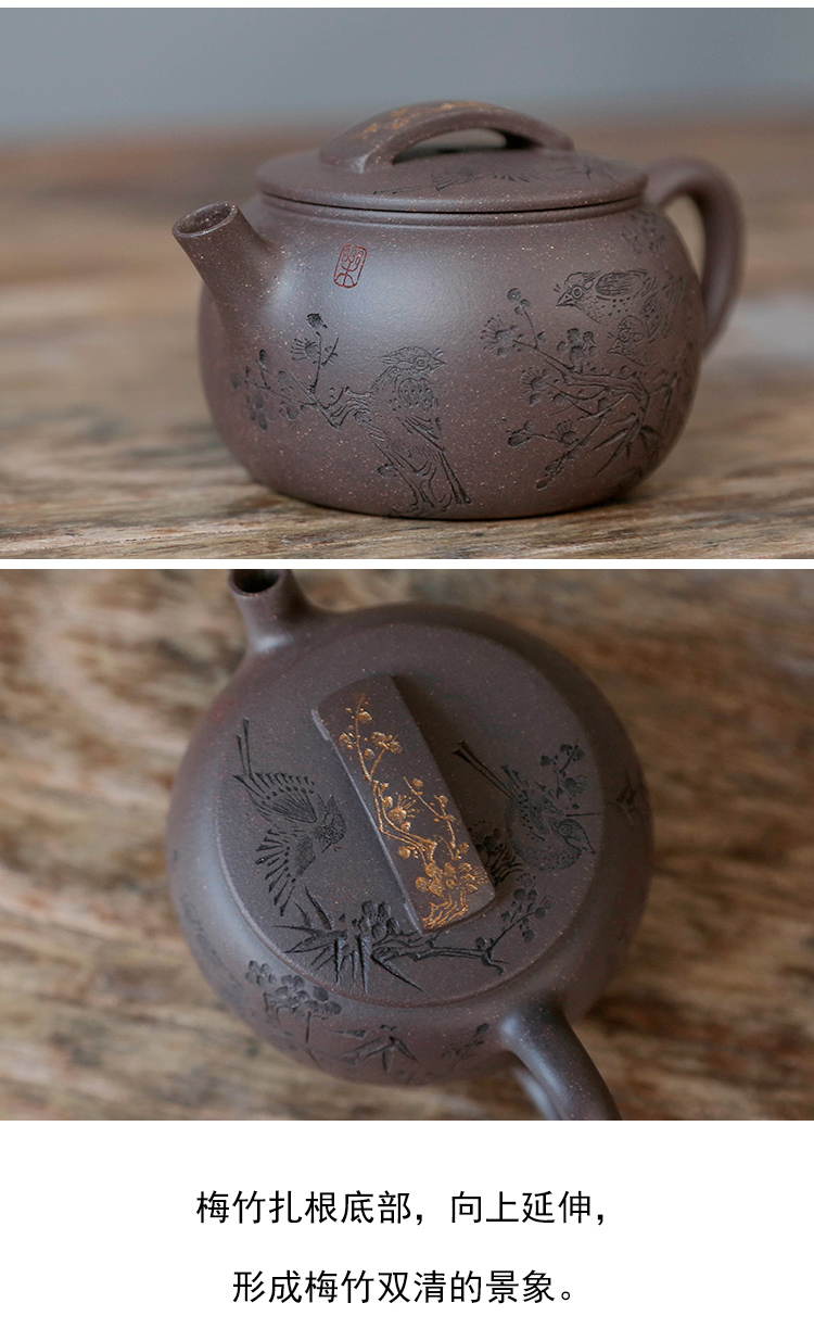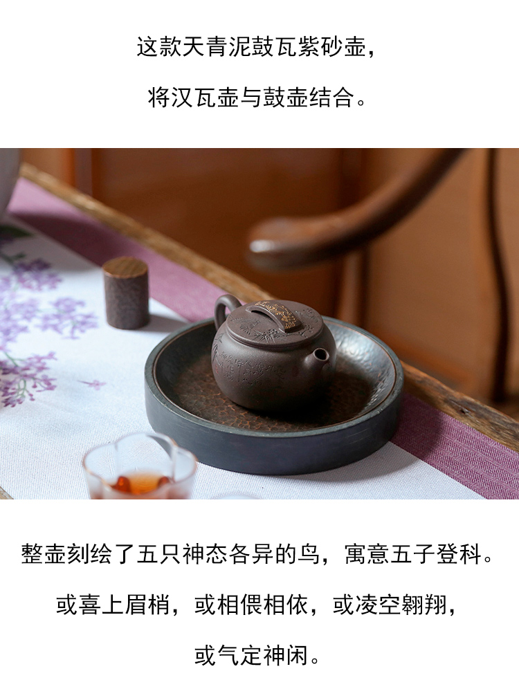茶香记 乘风阁【花不尽月无穷】天青泥鼓瓦紫砂壶120ml薄胎泡茶壶