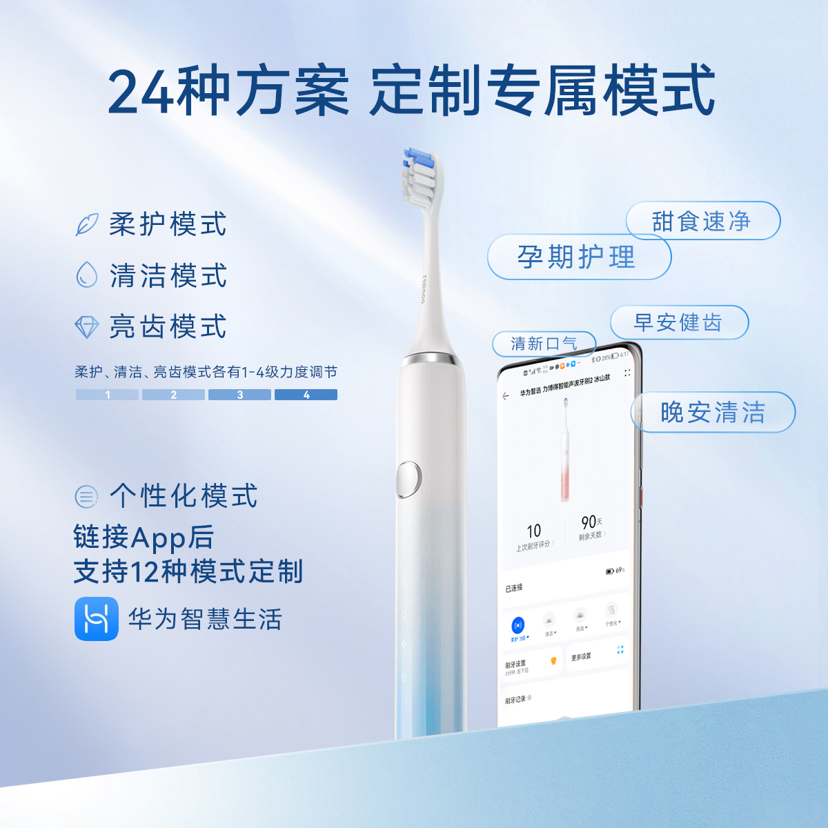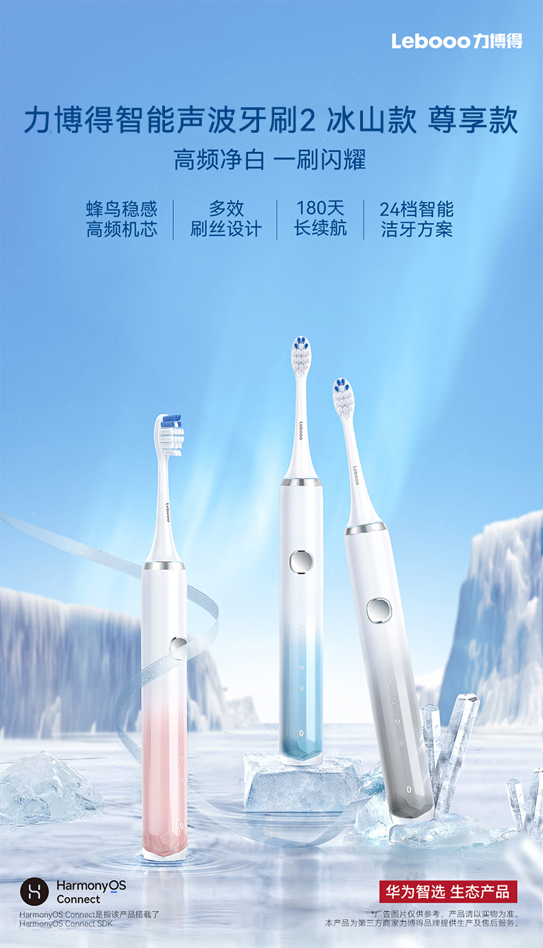 鸿蒙智选 力博得智能声波牙刷3 电动牙刷 送男友送女友礼物 成人学生牙刷 深度清洁亮白180天长续航