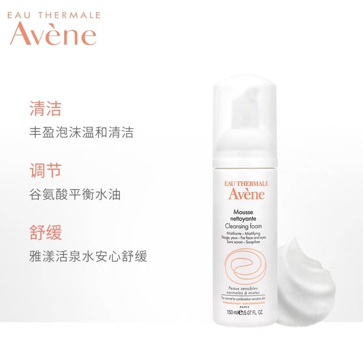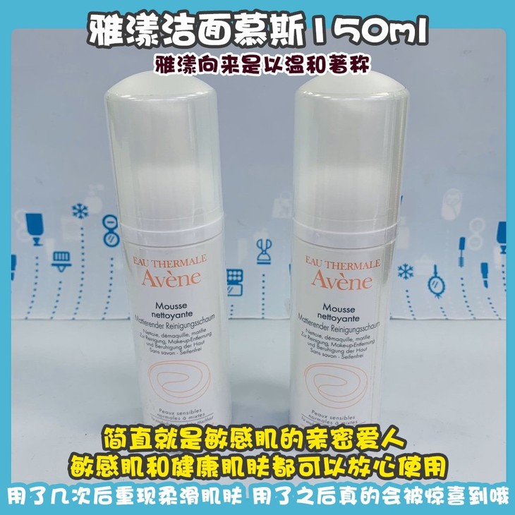 雅漾洁面慕斯150ml👍雅漾向来是以温和著称🤗,简直就是敏感肌的亲密爱人,敏感肌和健康肌肤都可以放心使用✅。这款净柔洁面慕斯☁,泵压式包装,慕斯质地,细致绵密的盈润泡沫🌬。清洁力也很棒💦,有效净柔清洁面部及眼唇部肌肤的彩妆及多余油脂👻,易清洗。细腻柔和,肌肤凉爽舒适柔软🍃,用了几次后重现柔滑肌肤,你用了之后真的会被惊喜🌟到哦!