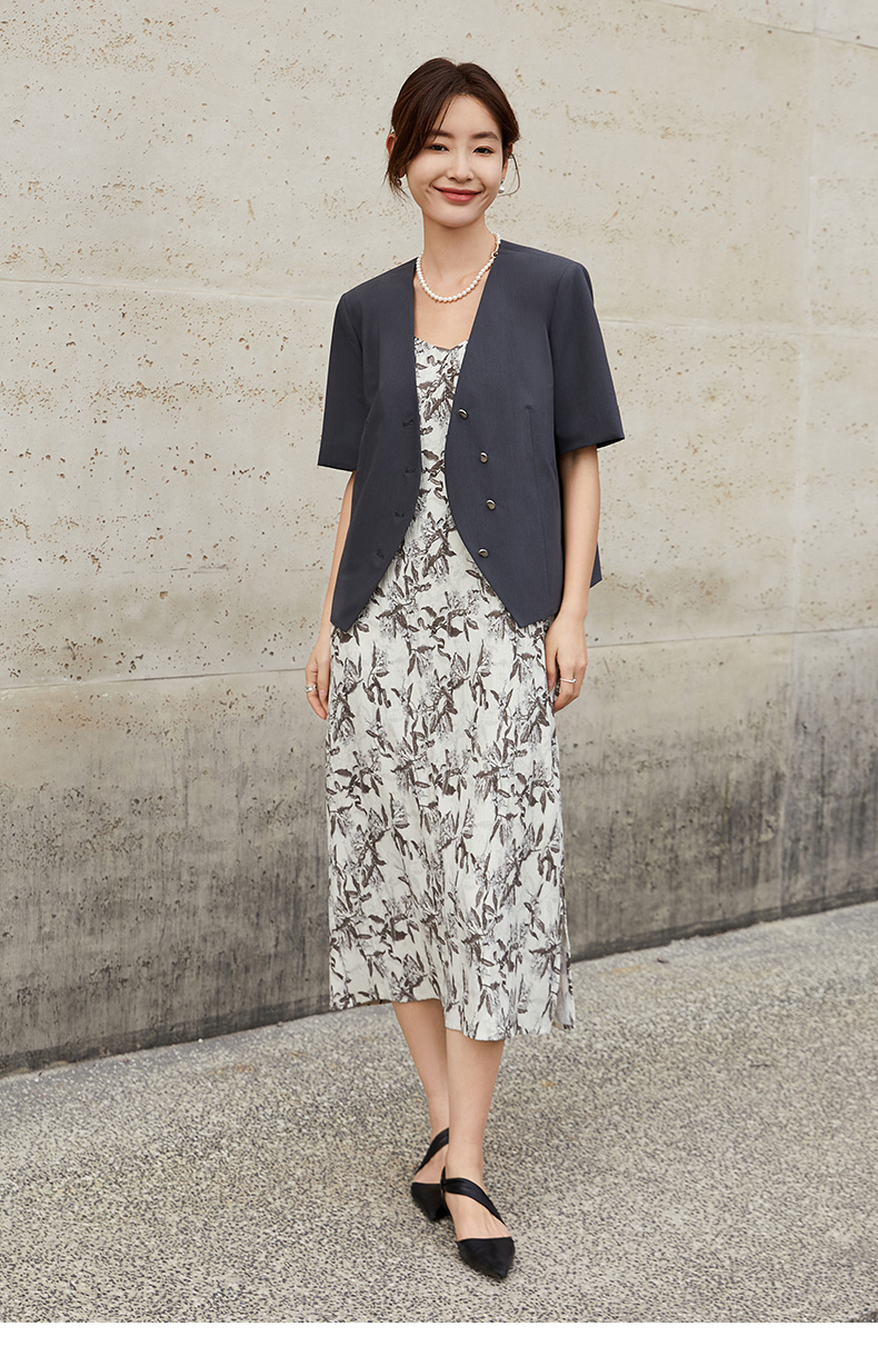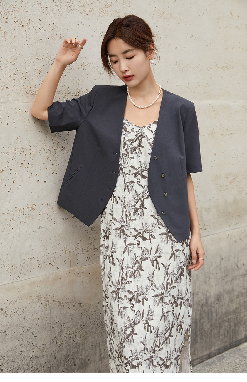 超绝短袖西装!单排扣叠搭连衣裙 气质拉满