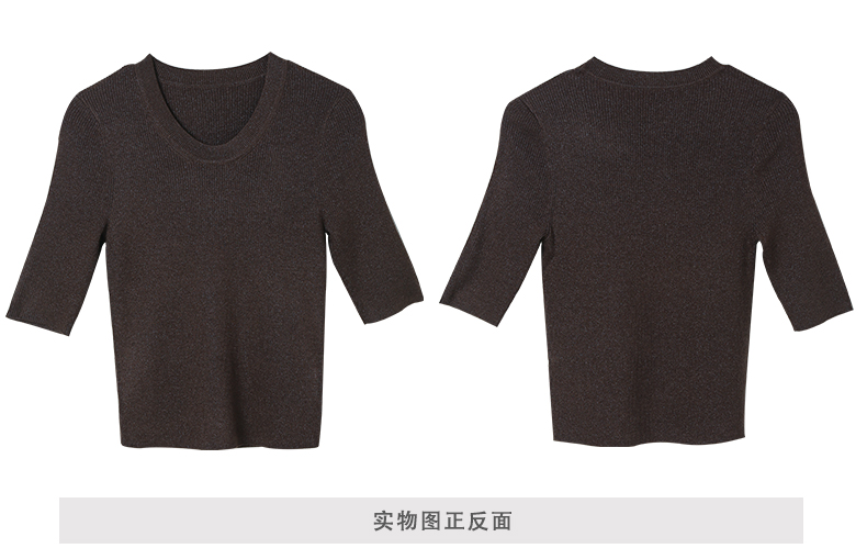 中袖圆领修身版弹力打底针织衫