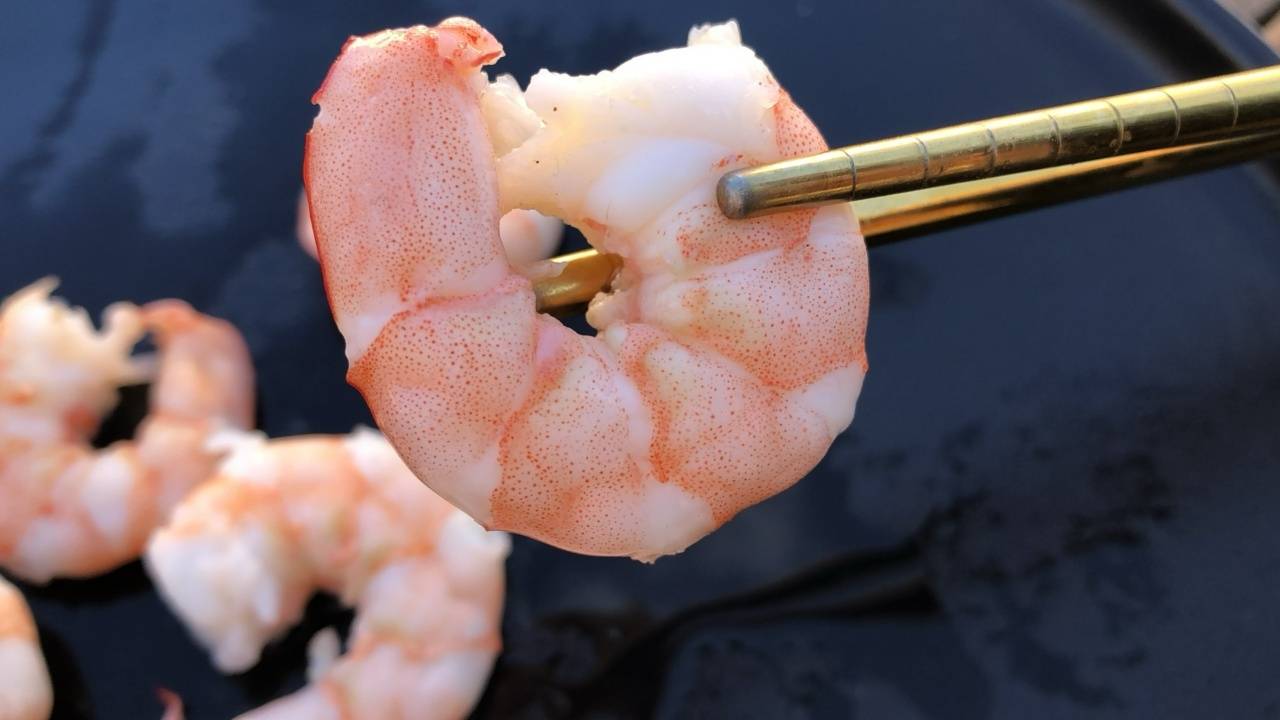 看颜色是最直观的,保水的虾仁是水晶样,虾尾处都呈透明感了! 没有保水的虾仁,看上去干干巴巴的,不会有透明处!