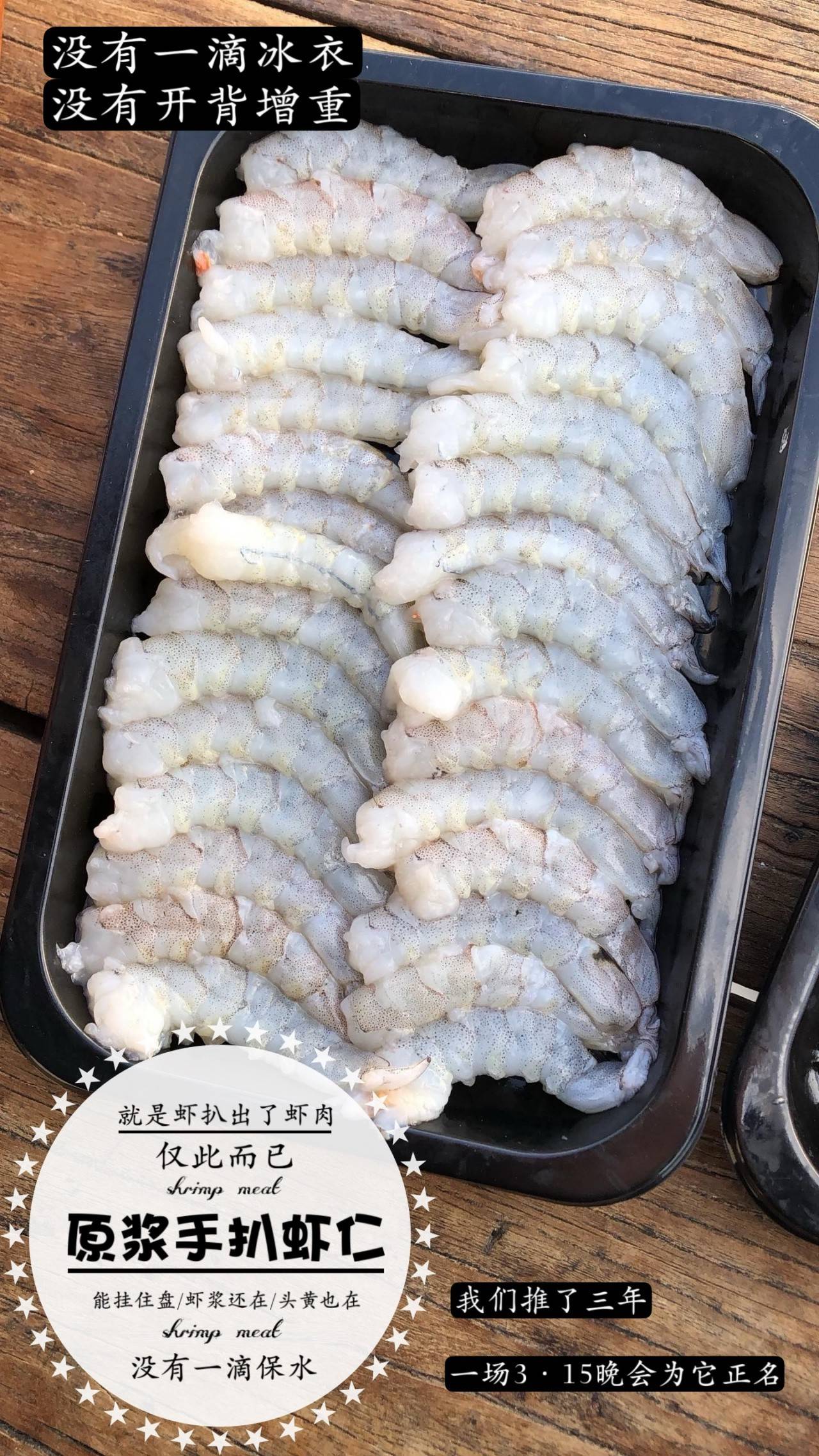 没有一滴保水剂【原浆手剥虾仁】没有冰衣!没有任何浸泡、保水、漂白!有的虾头上的黄还在!真正的无增弹、无增重、不开背、不碱洗!