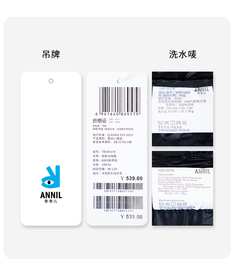 男童短款羽绒服冬季新款安奈儿童装TB545574