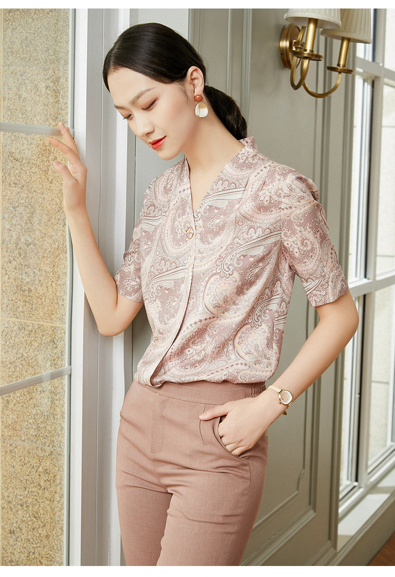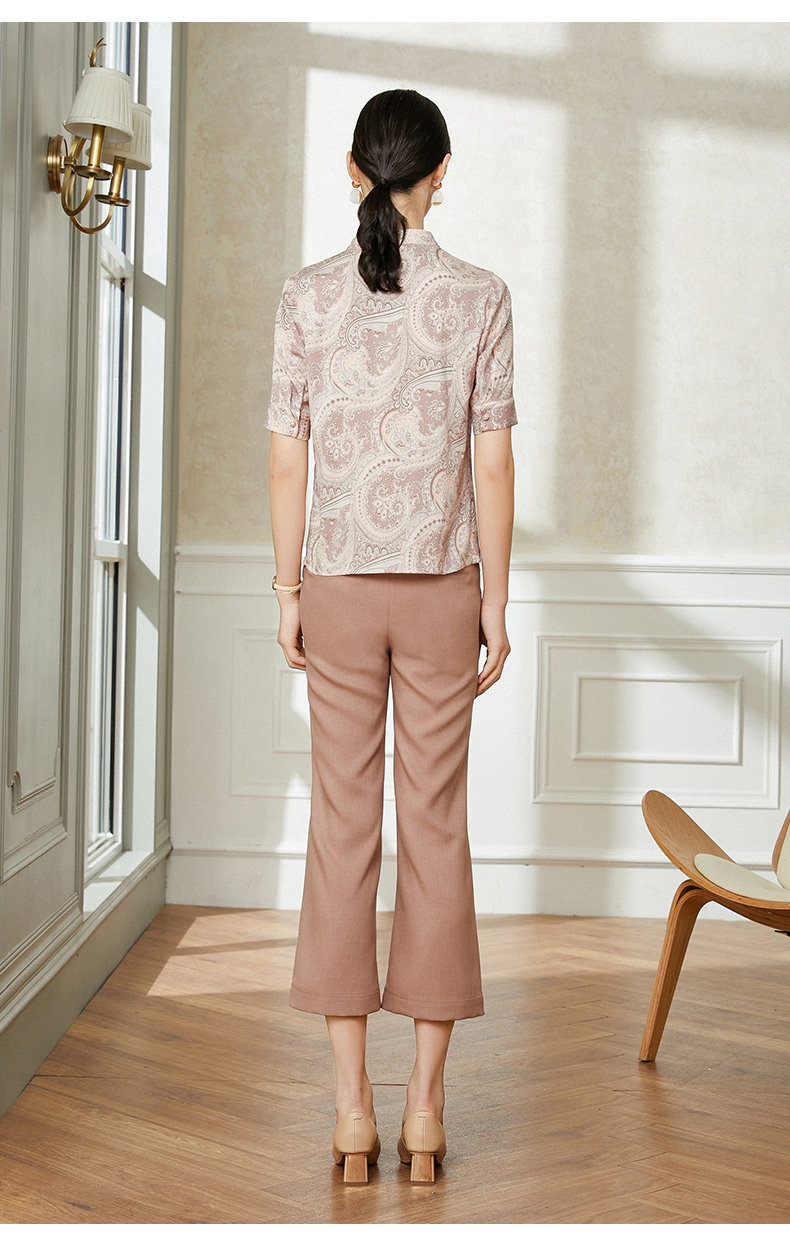 乔万尼真丝短袖衬衫女设计感小众复古港味气质EI2C750