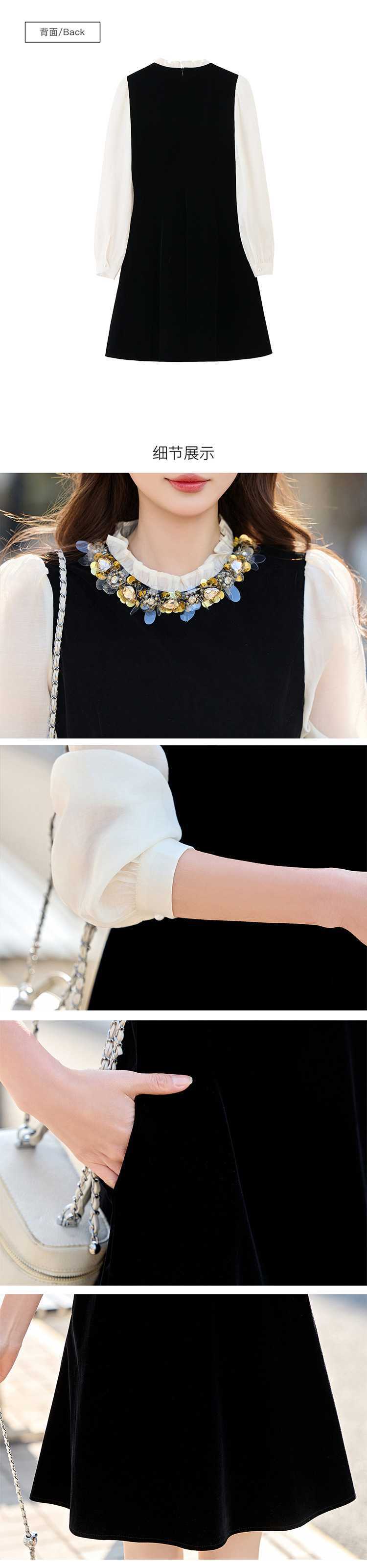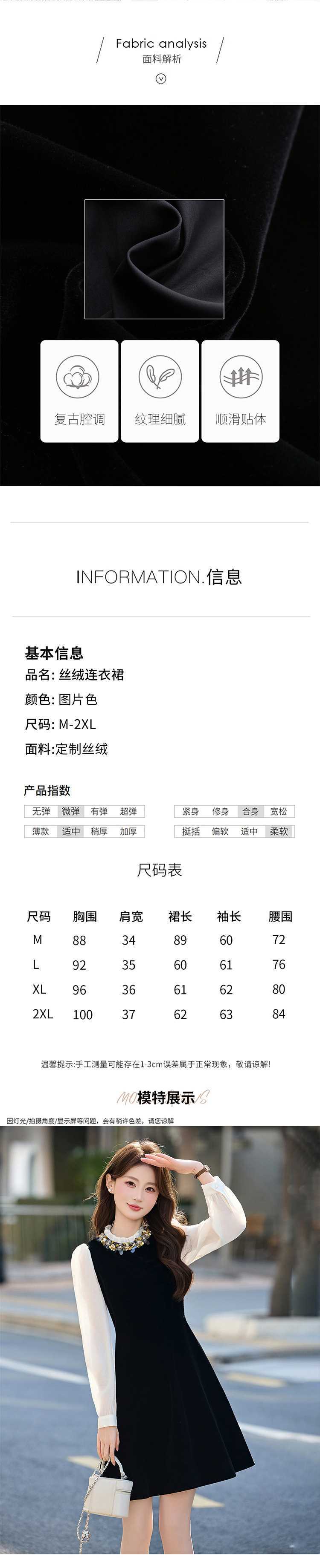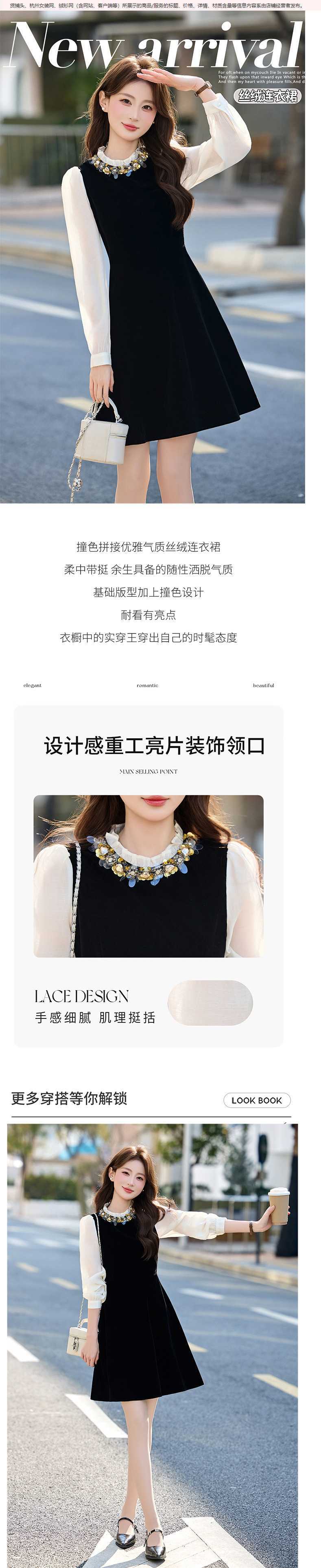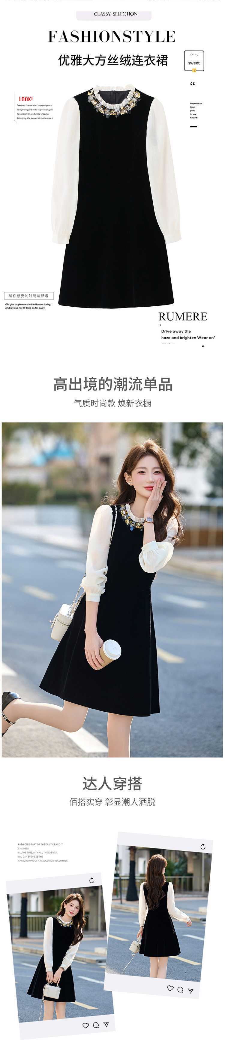 新款时尚气质圆领长袖丝绒连衣裙TSX5080