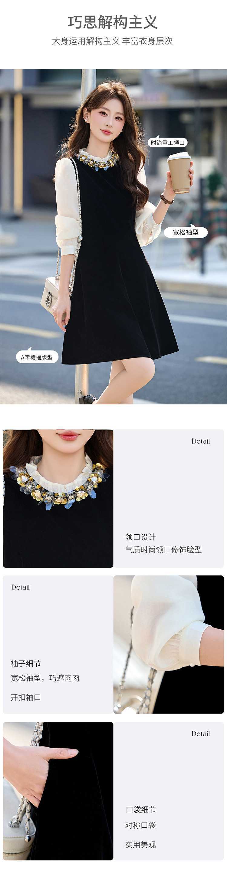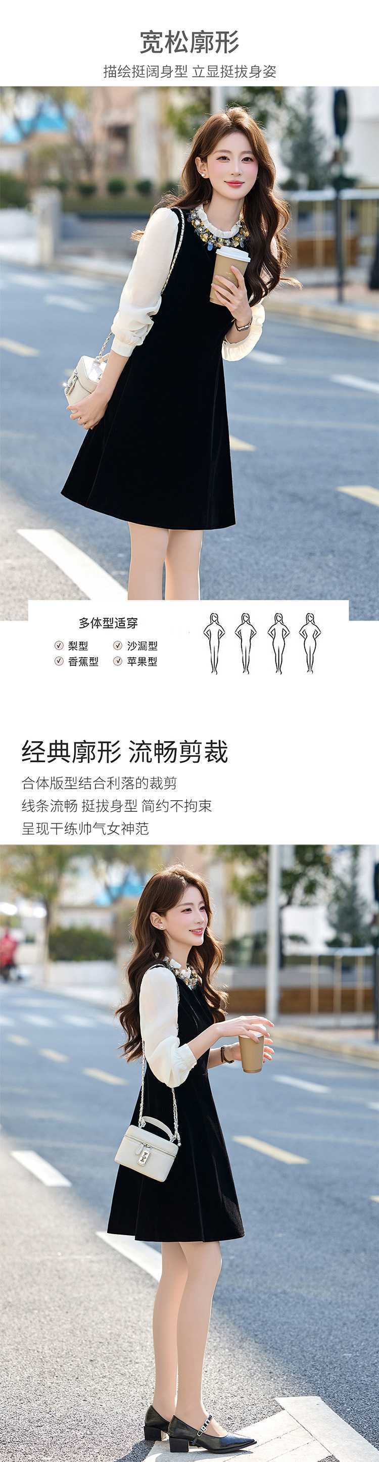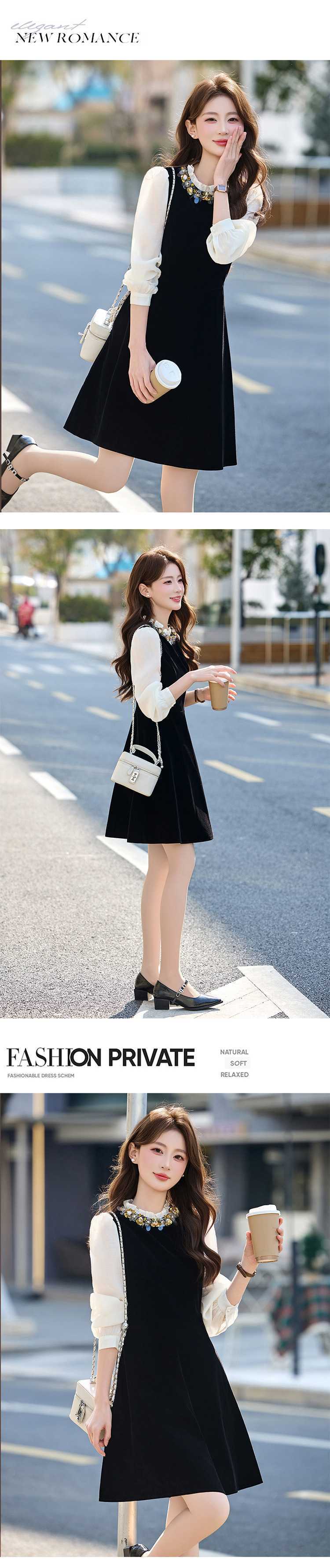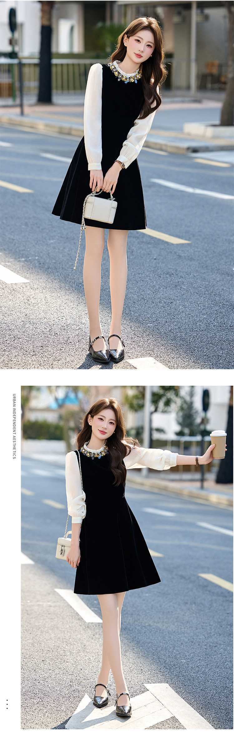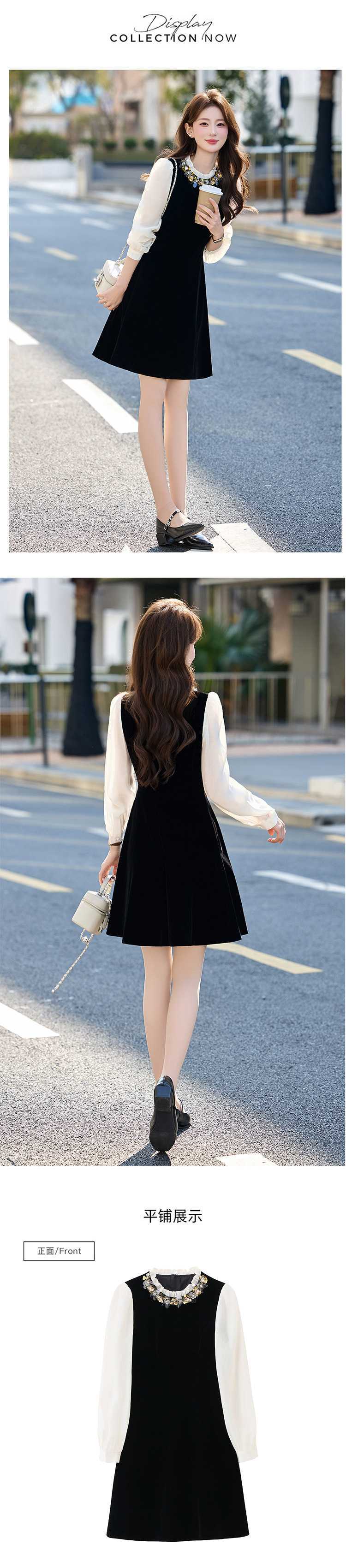 新款时尚气质圆领长袖丝绒连衣裙TSX5080