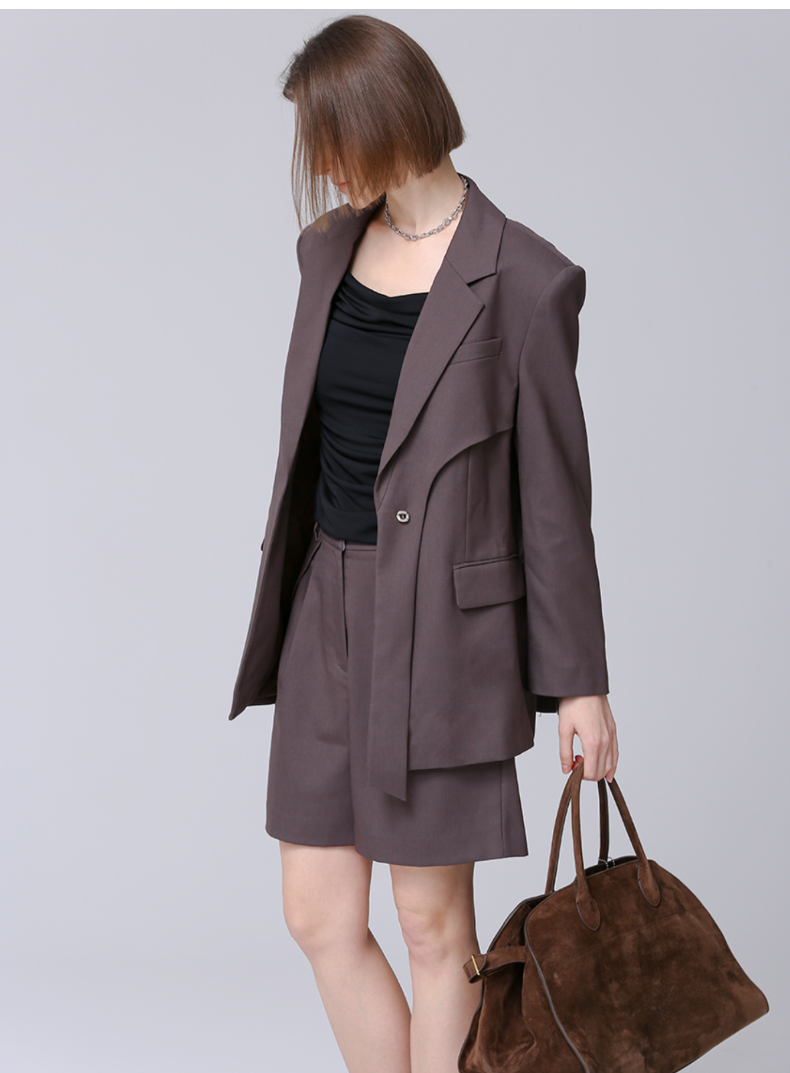 VIMAGE纬漫纪秋季新款时尚休闲通勤百搭直筒显瘦西装短裤V2005605