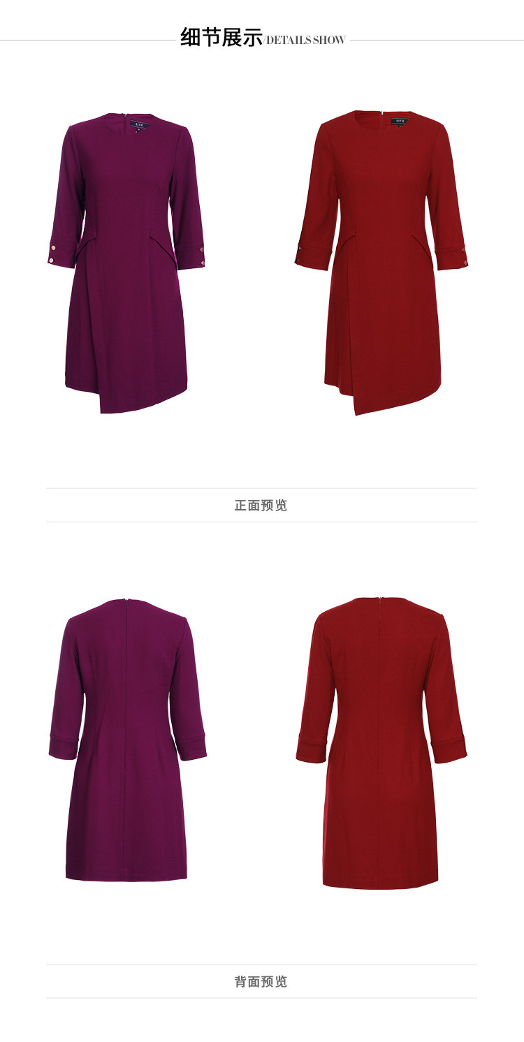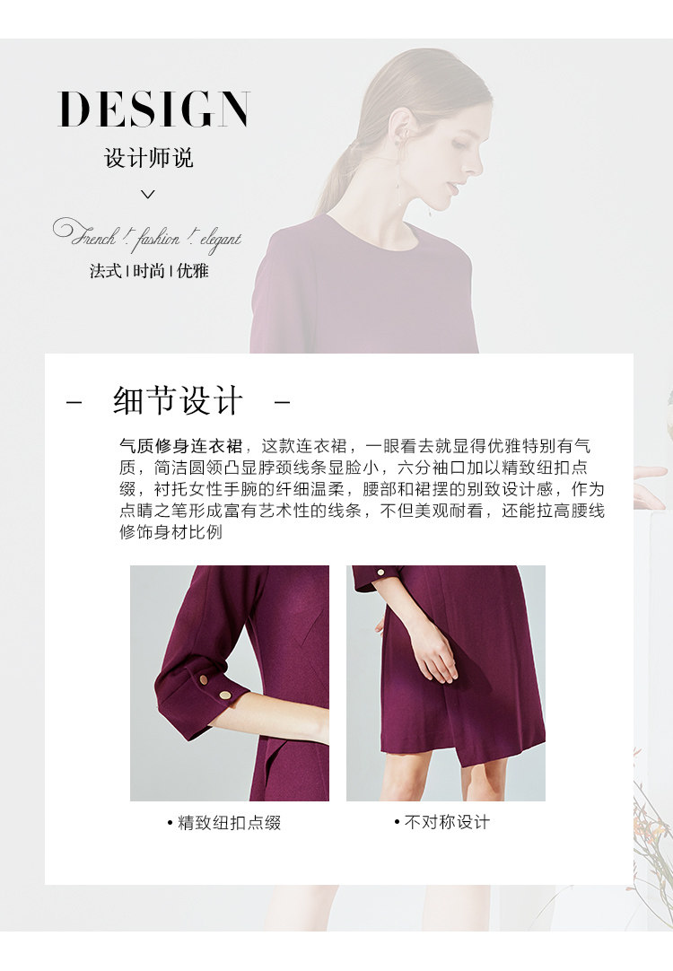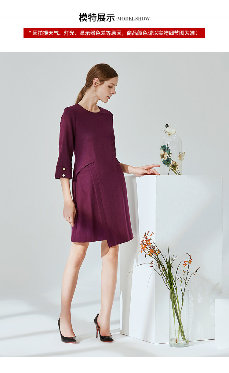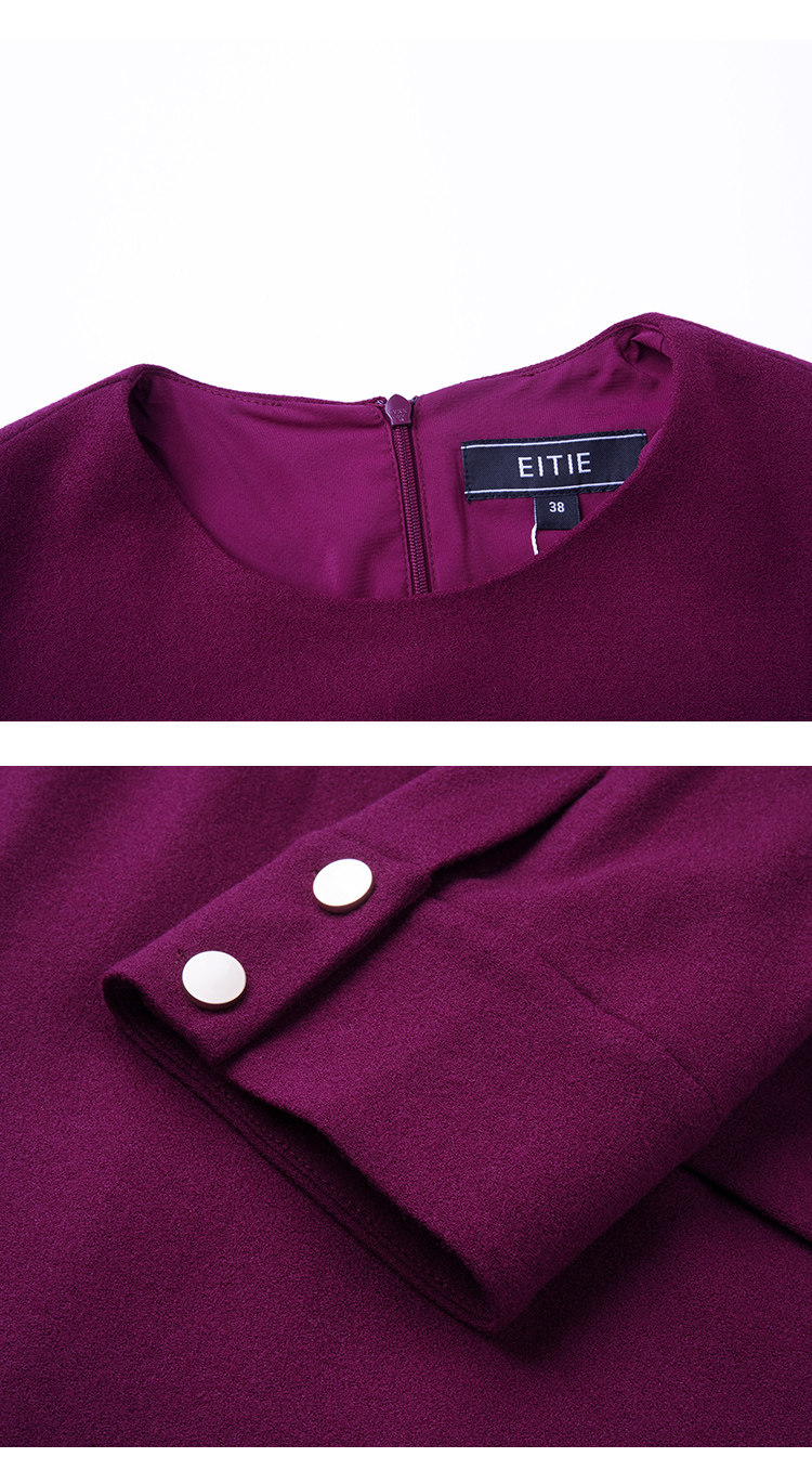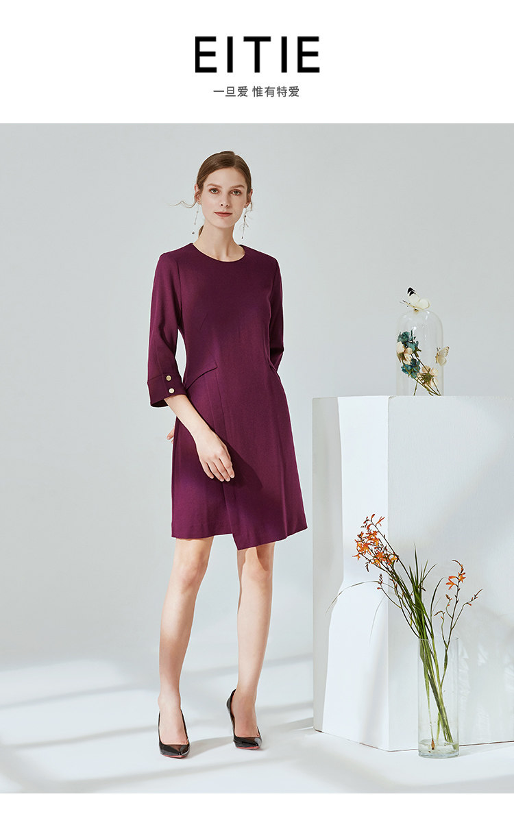 EITIE爱特爱春季新款通勤圆领七分袖收腰A版连衣裙中长女6007768