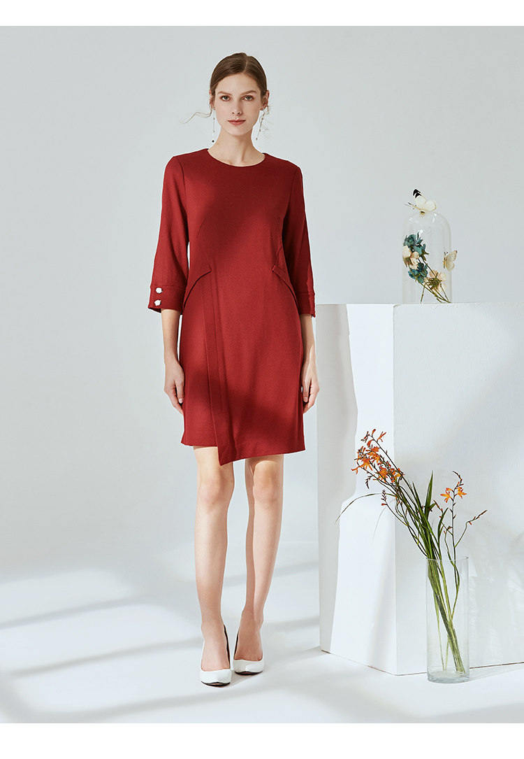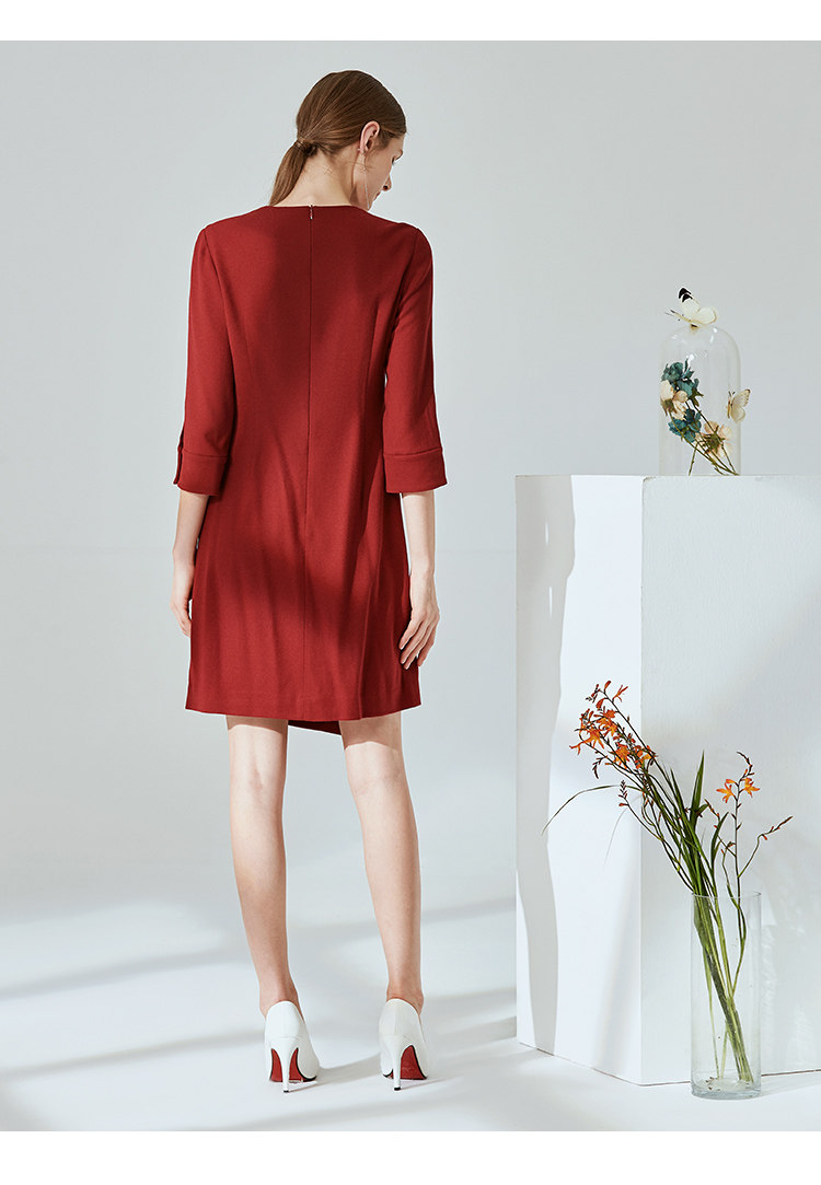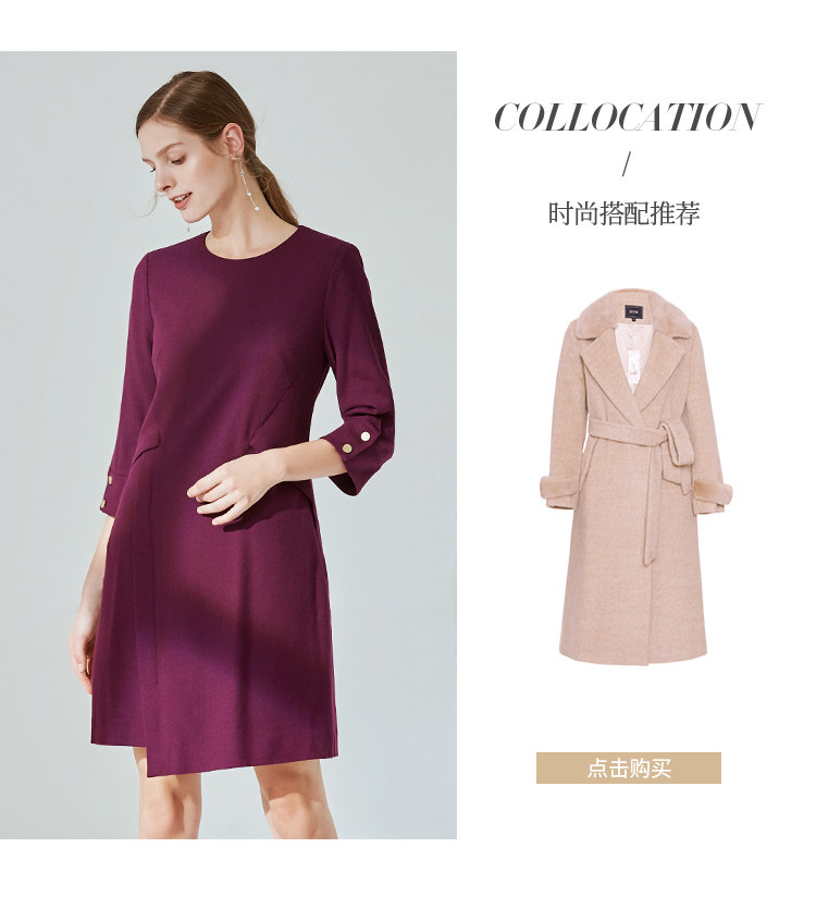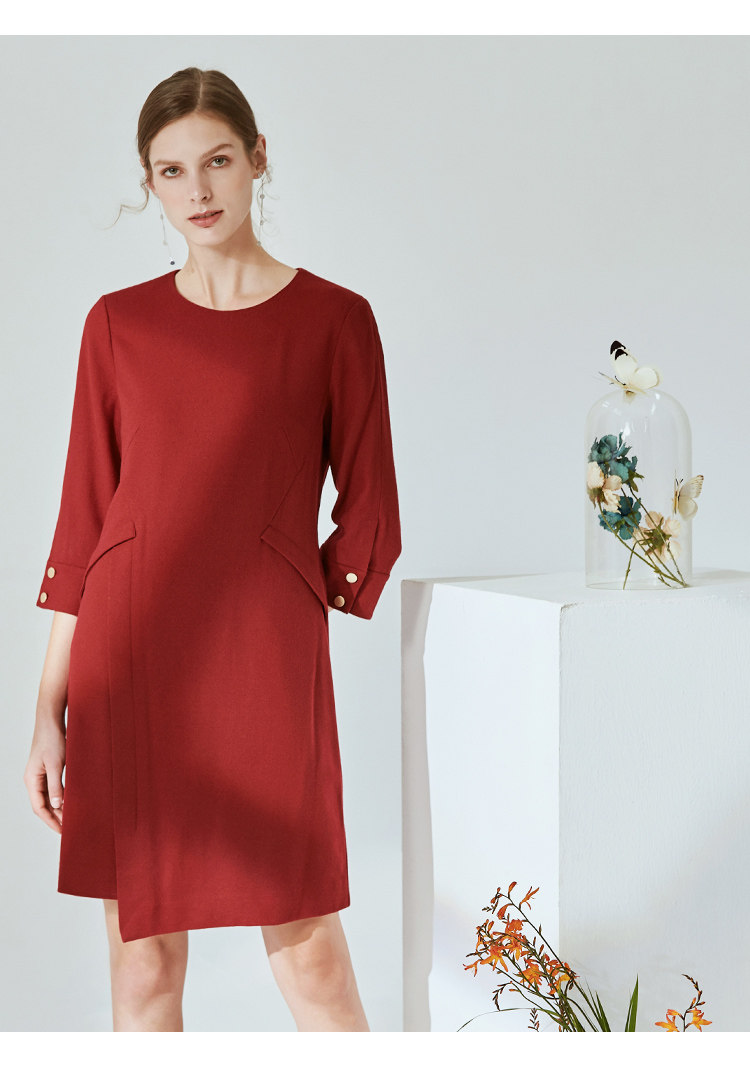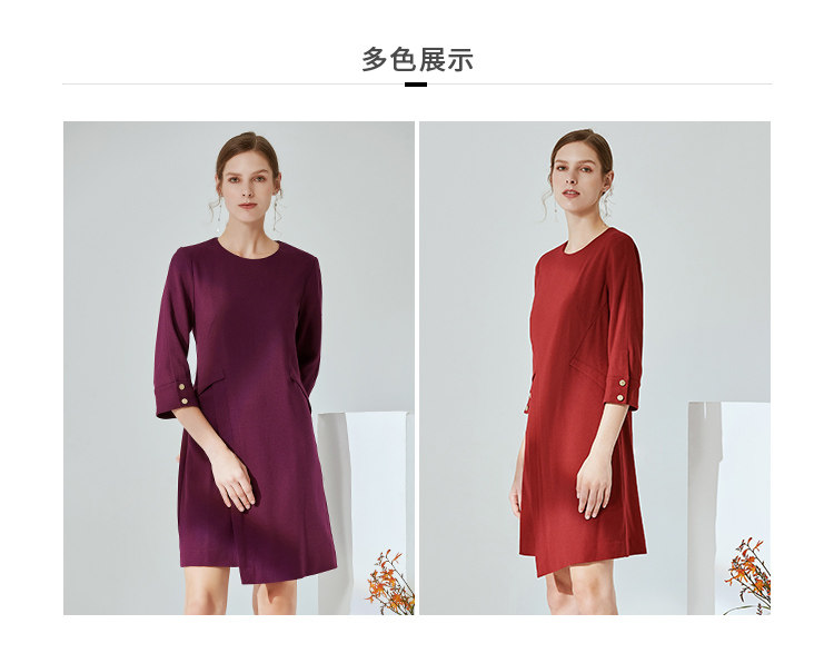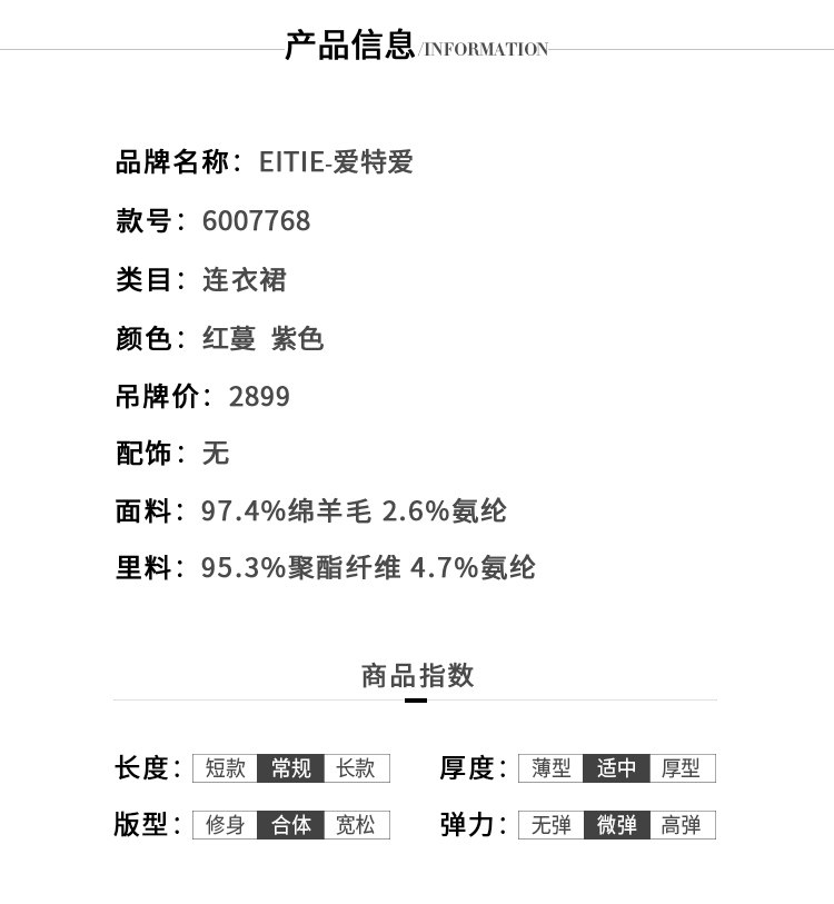 EITIE爱特爱春季新款通勤圆领七分袖收腰A版连衣裙中长女6007768