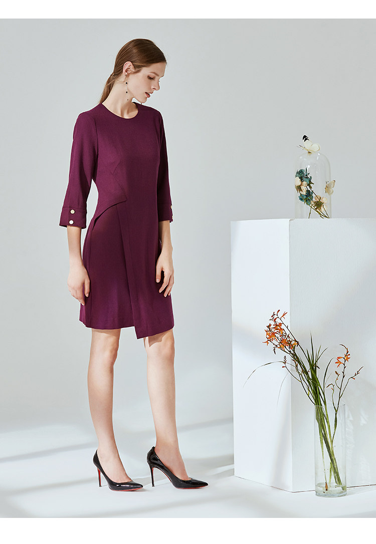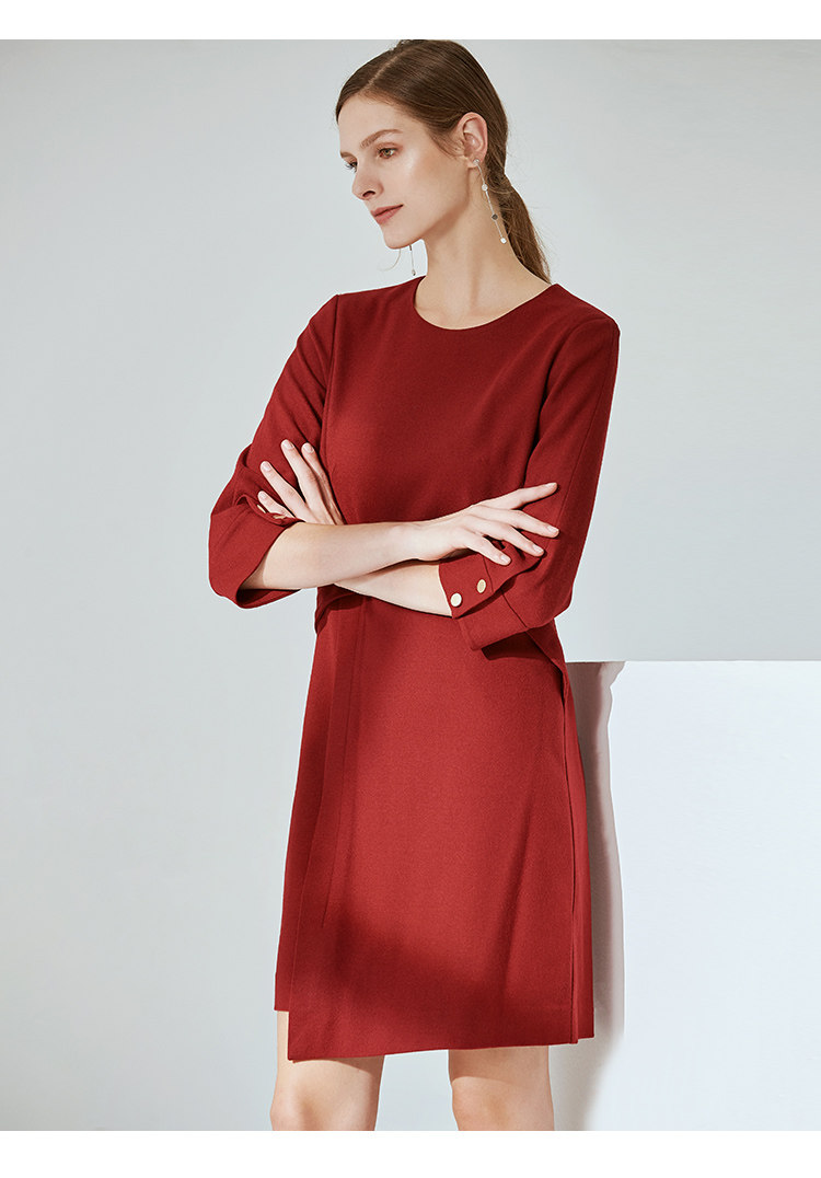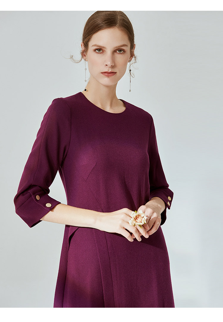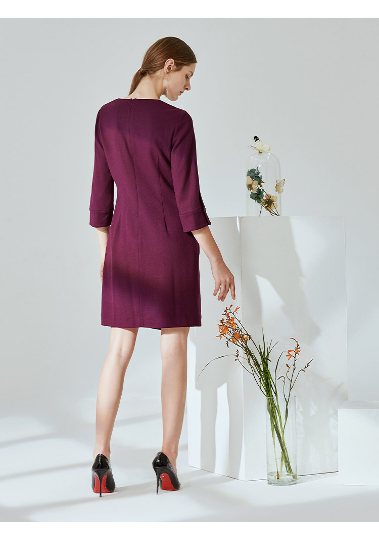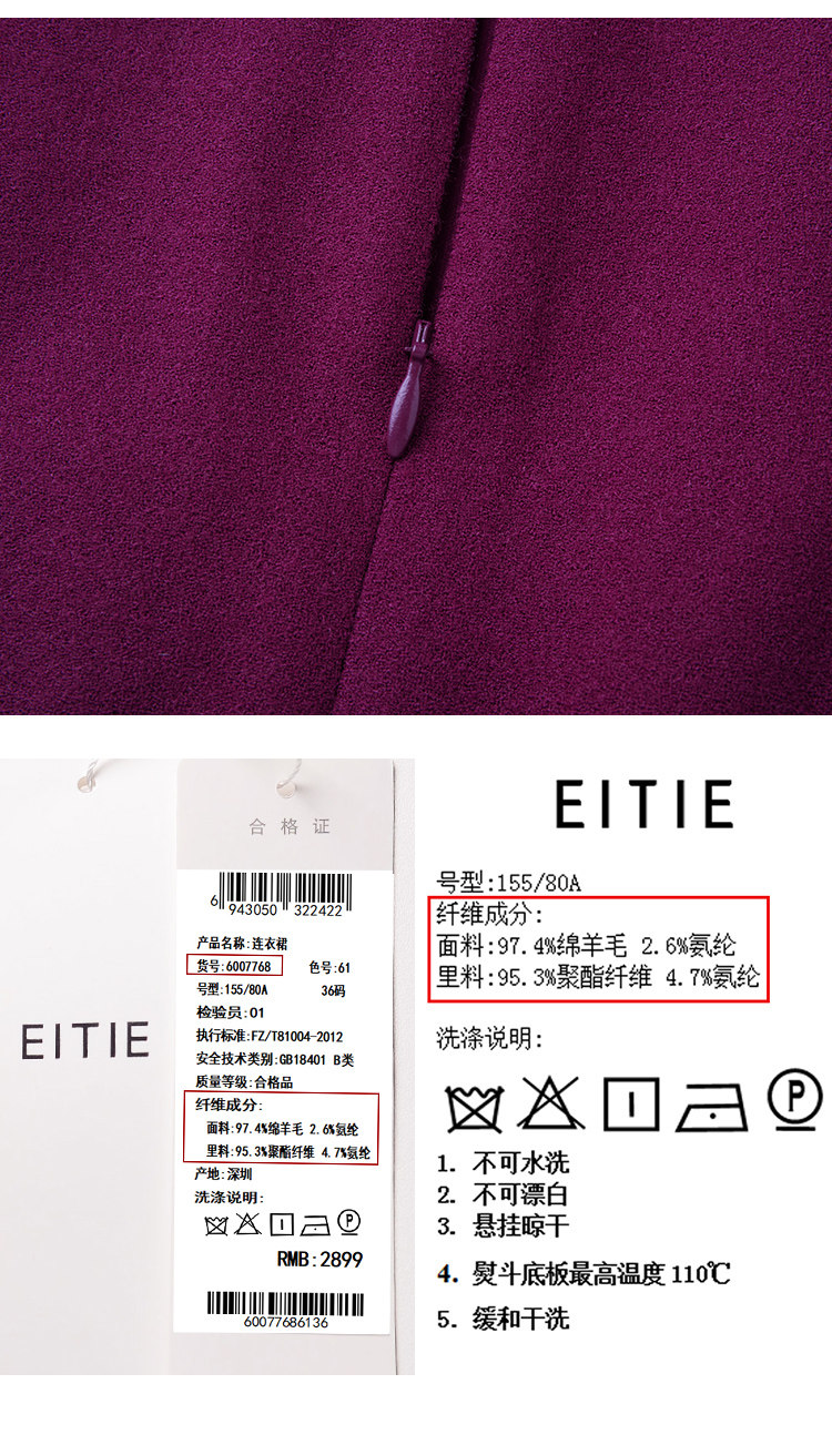 EITIE爱特爱春季新款通勤圆领七分袖收腰A版连衣裙中长女6007768