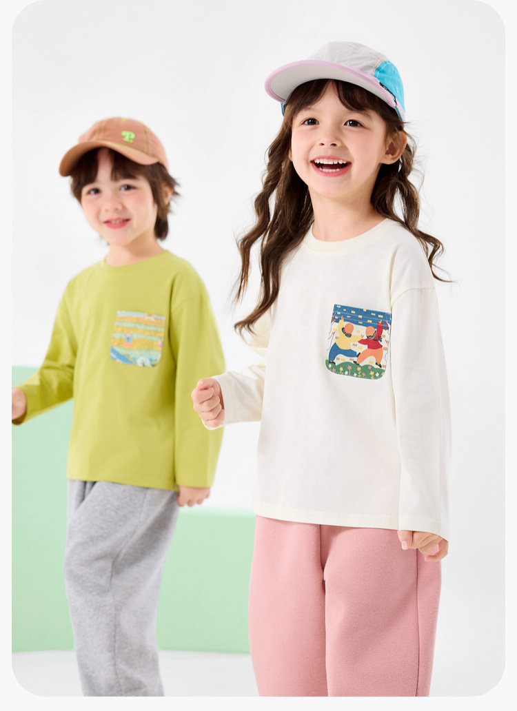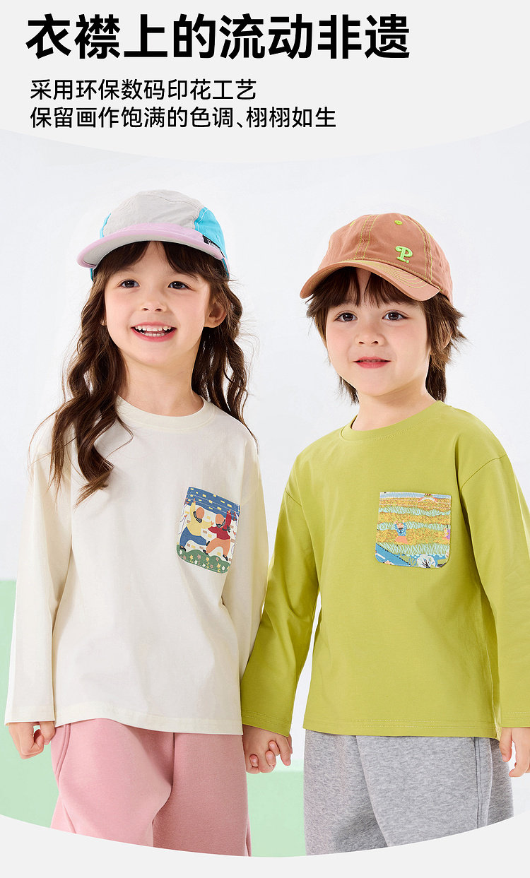 嘟嘟家男童T恤春款女童上衣非遗联名儿童衣服洋气宝宝t恤百搭春装F6ATX015