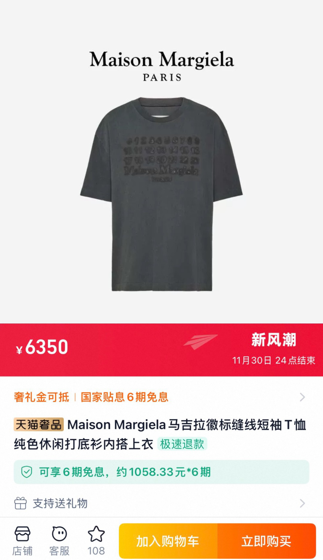 文俊辉、吴宇恒同款Maison Margiel*a徽标缝线暗纹刺绣 男女都可以驾驭的数字Tee