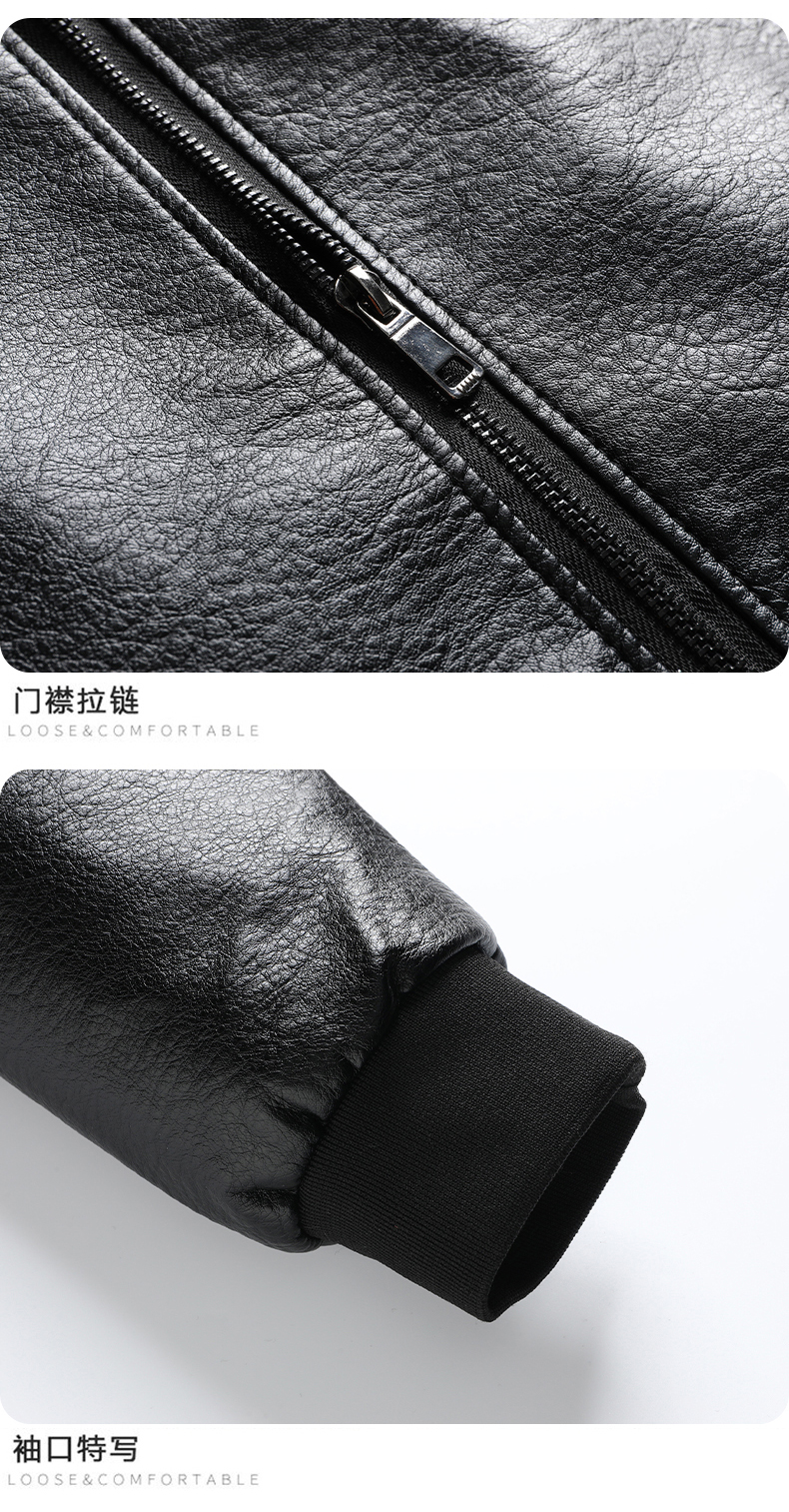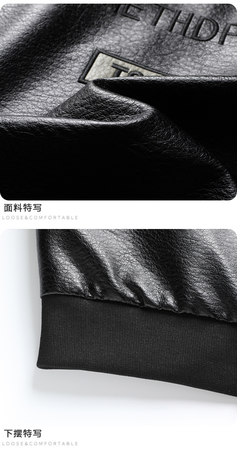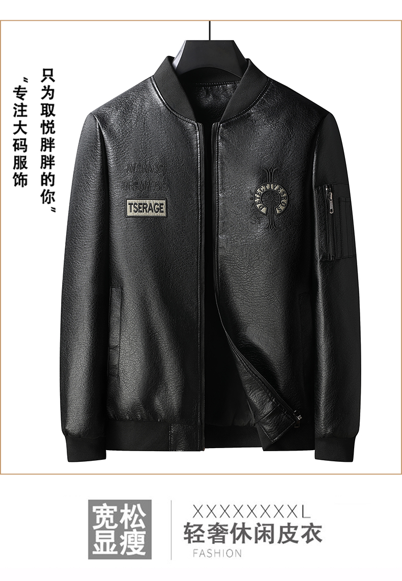 【新款DPX】大依优型大码棒球领皮夹克刺绣pu外套加肥加大休闲胖子宽松外套上衣男装潮流