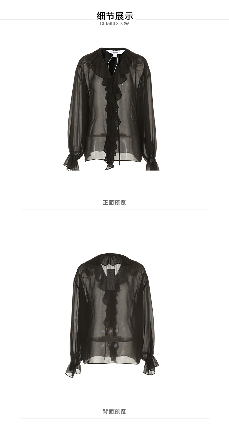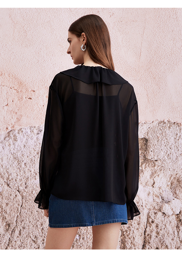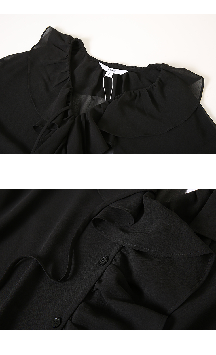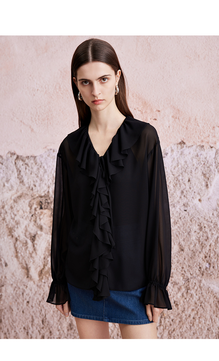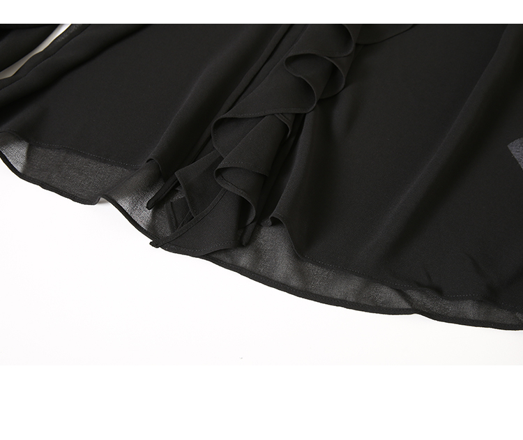 VIMAGE纬漫纪时尚荷叶边黑色网纱防晒两件套雪纺衫上衣夏新款V2113736