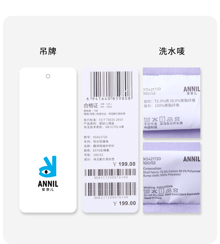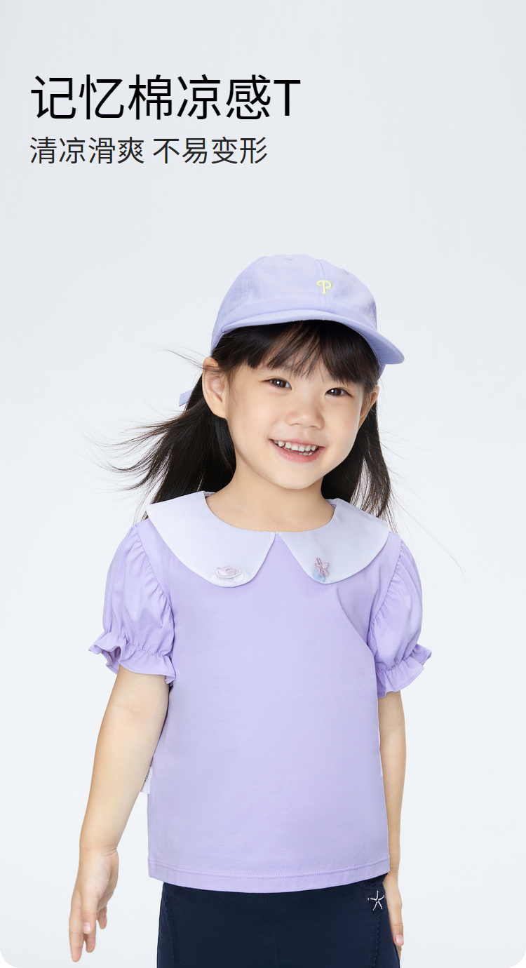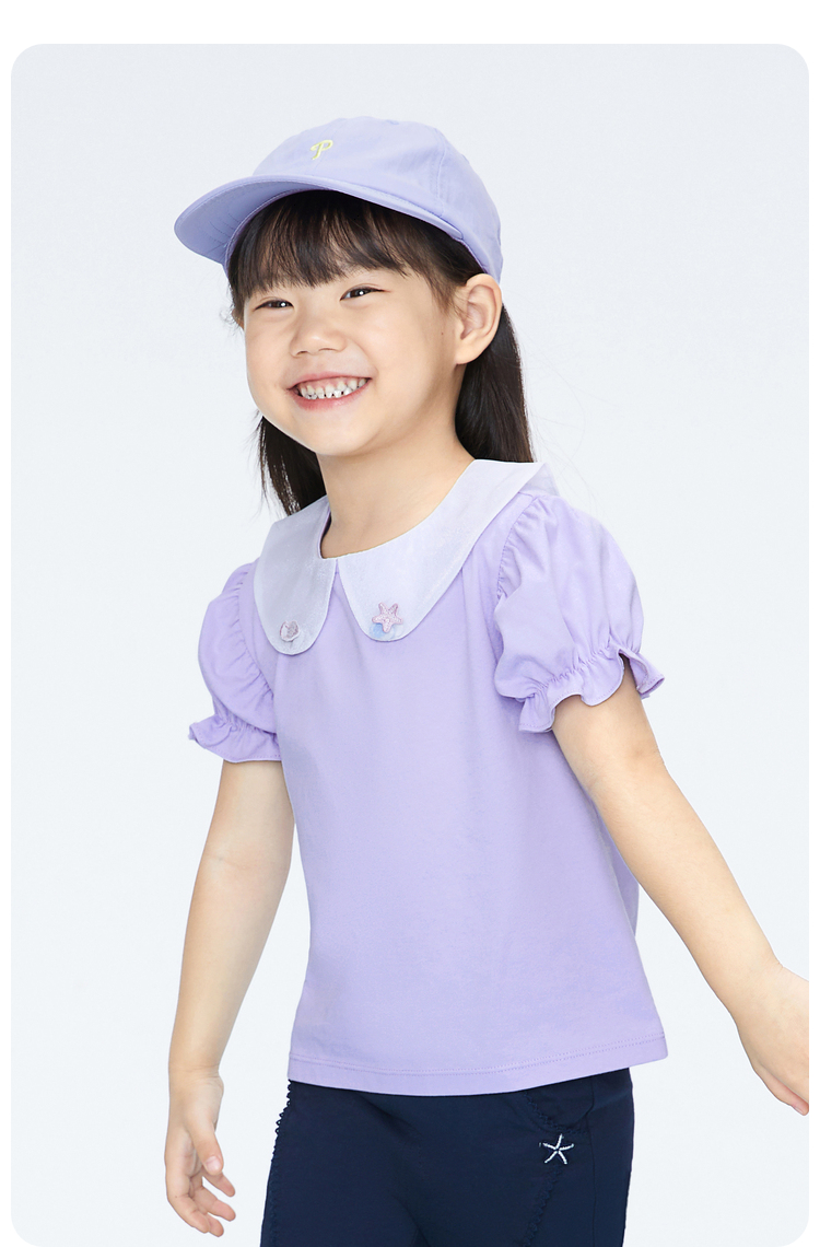 女童清凉T恤翻领短袖上衣夏季新款安奈儿童装实体店同款XG421720