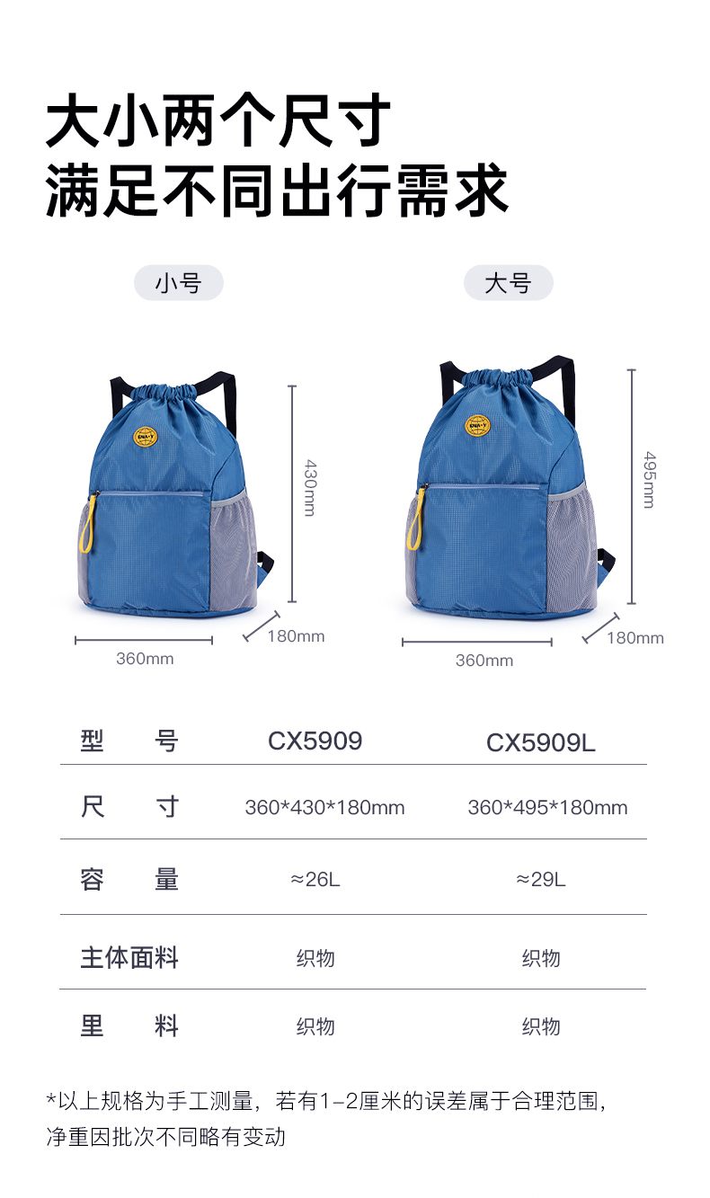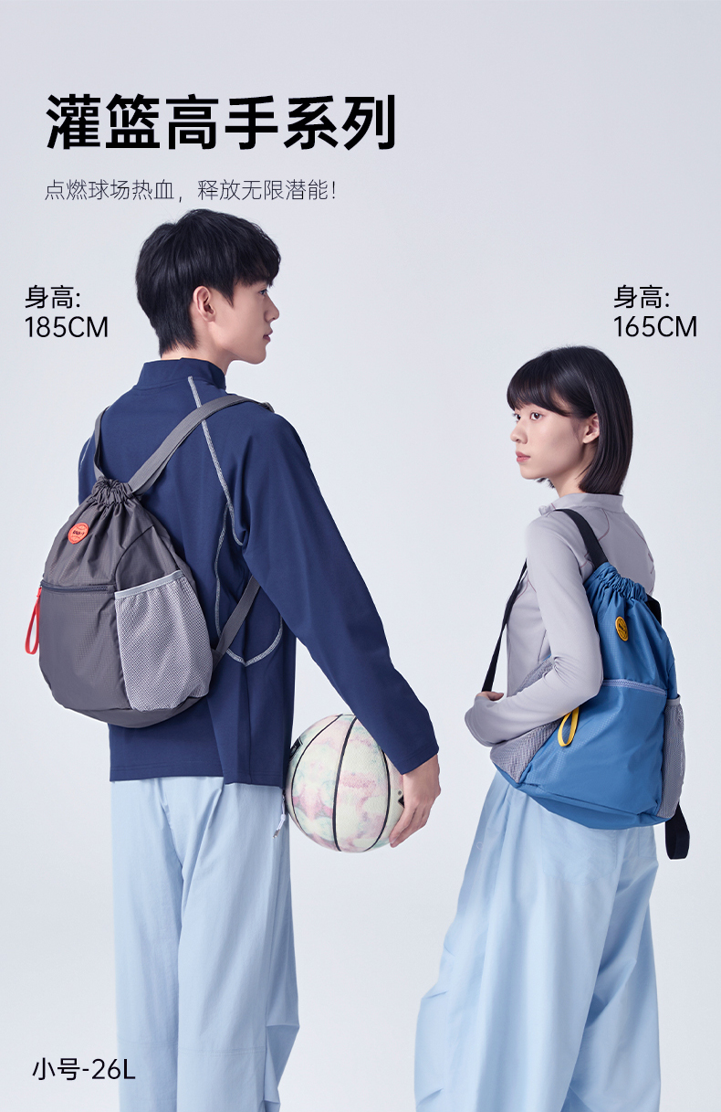 【抽绳篮球包】卡拉羊超轻云朵便捷抽绳篮球包休闲双肩包CX5909
