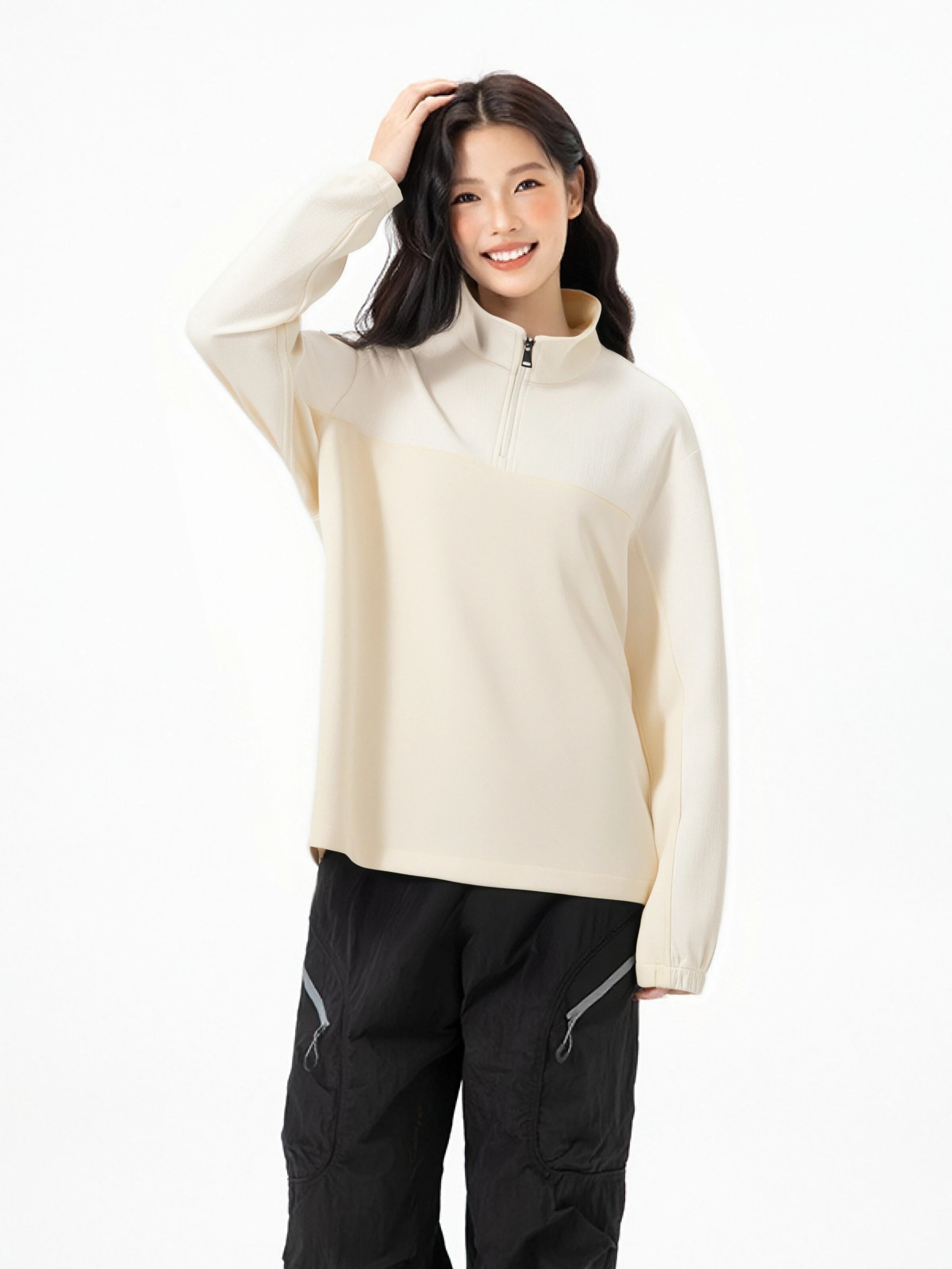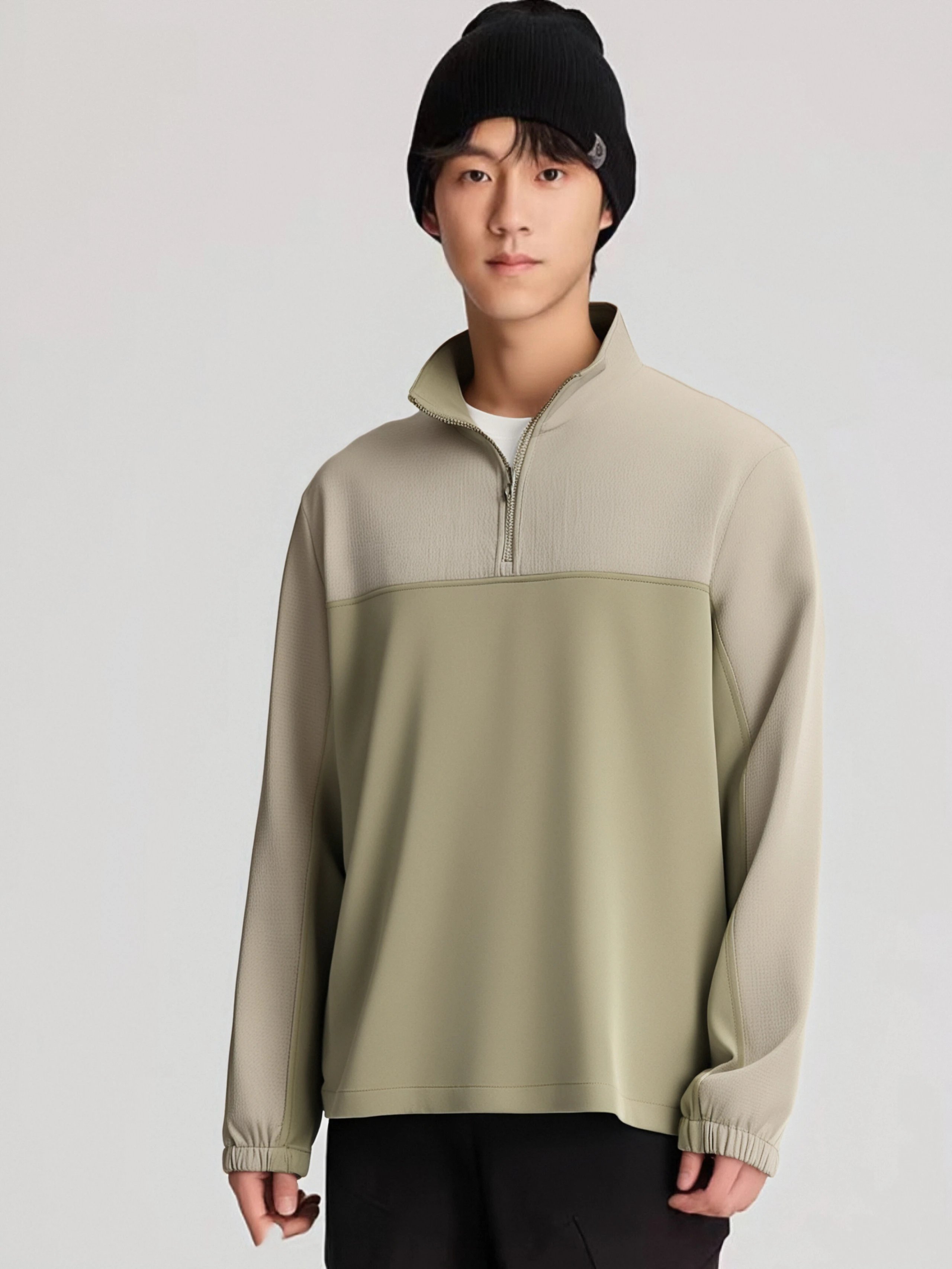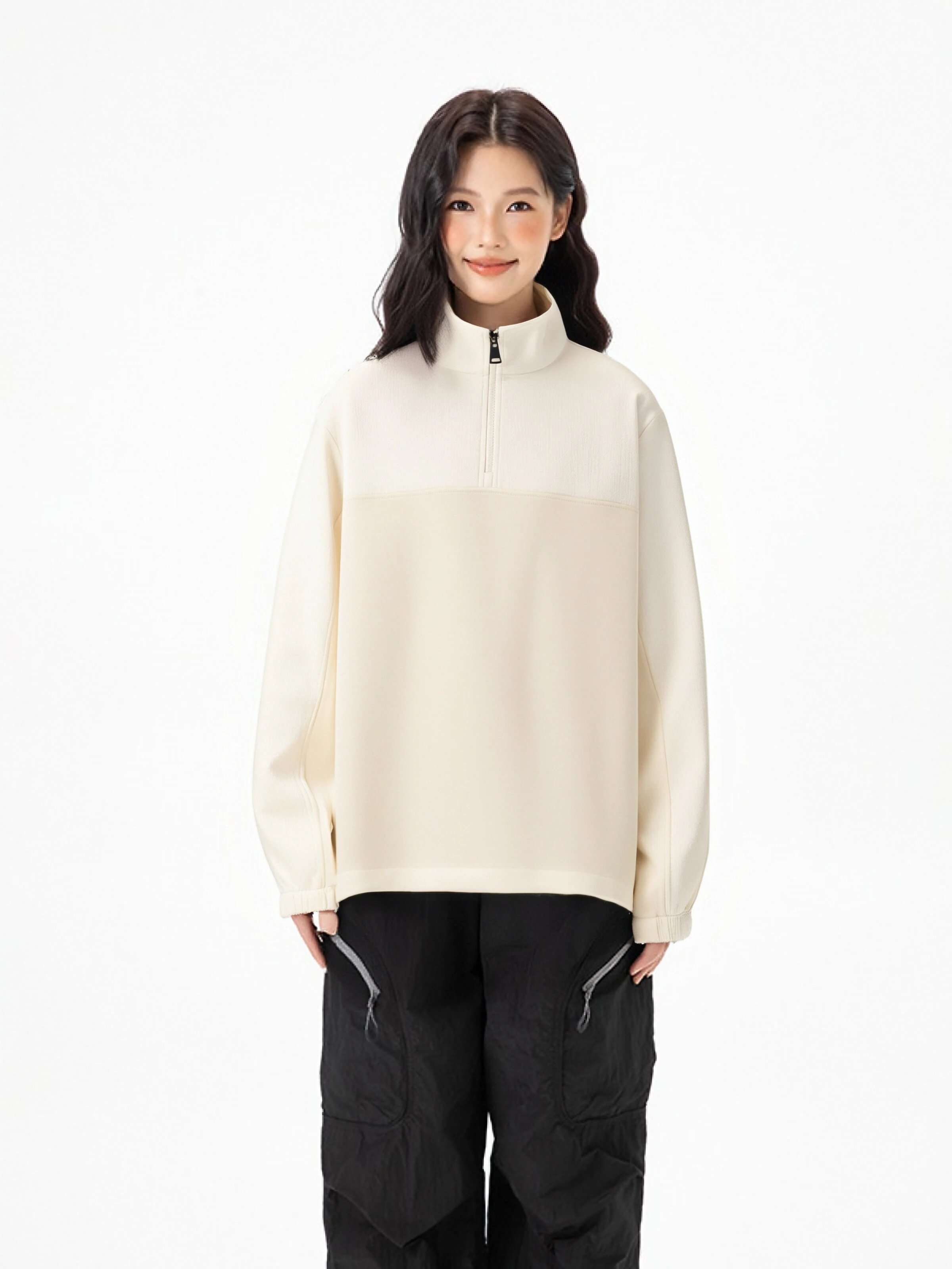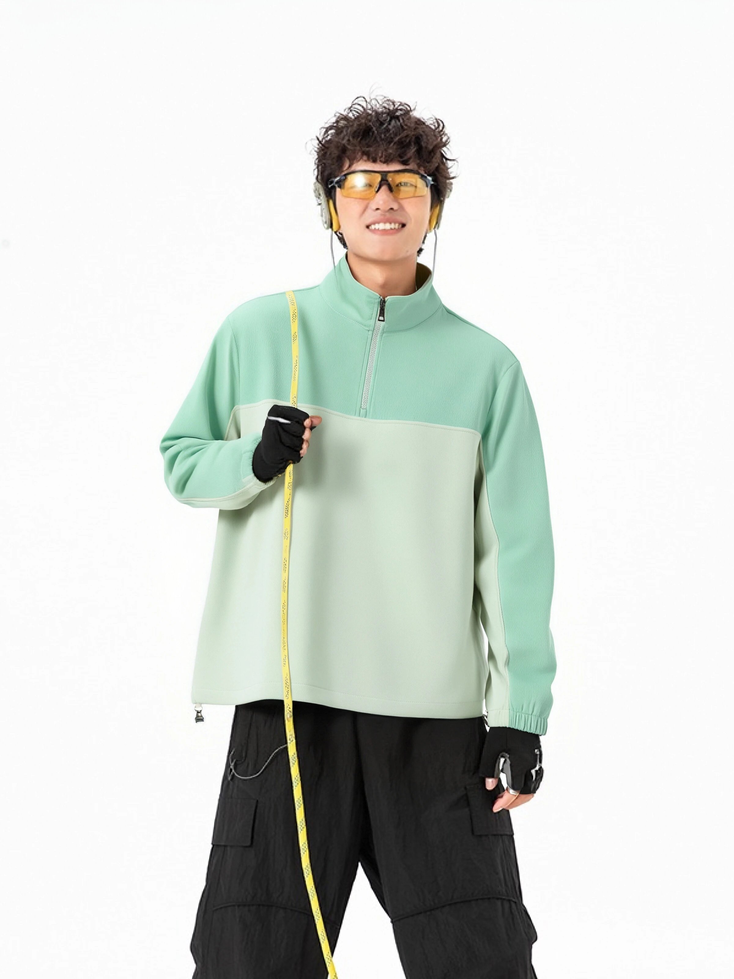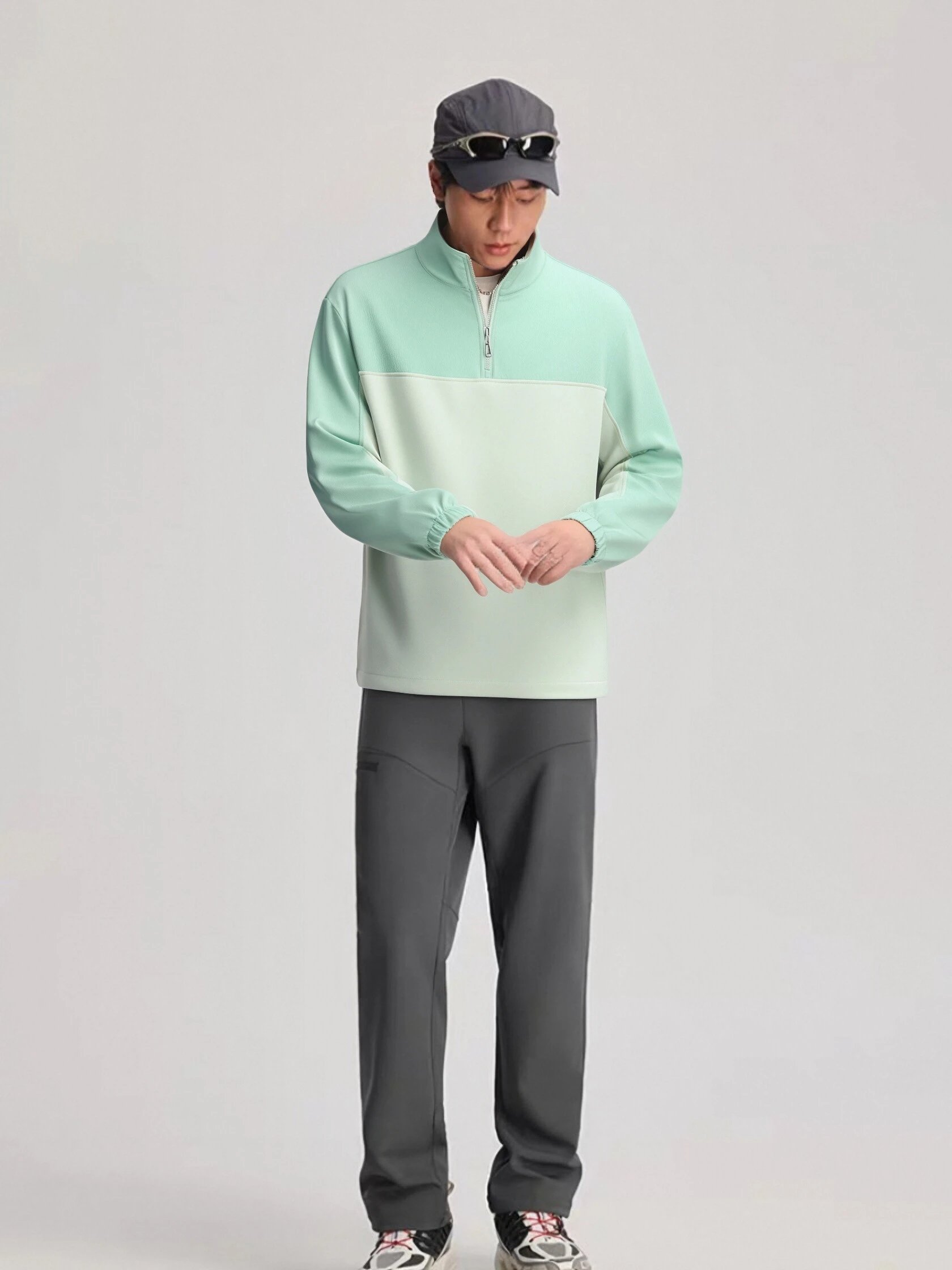 【380克高克重 版型显瘦 撞色拼接】Schenvega撞色半开领卫衣(B49-2508)