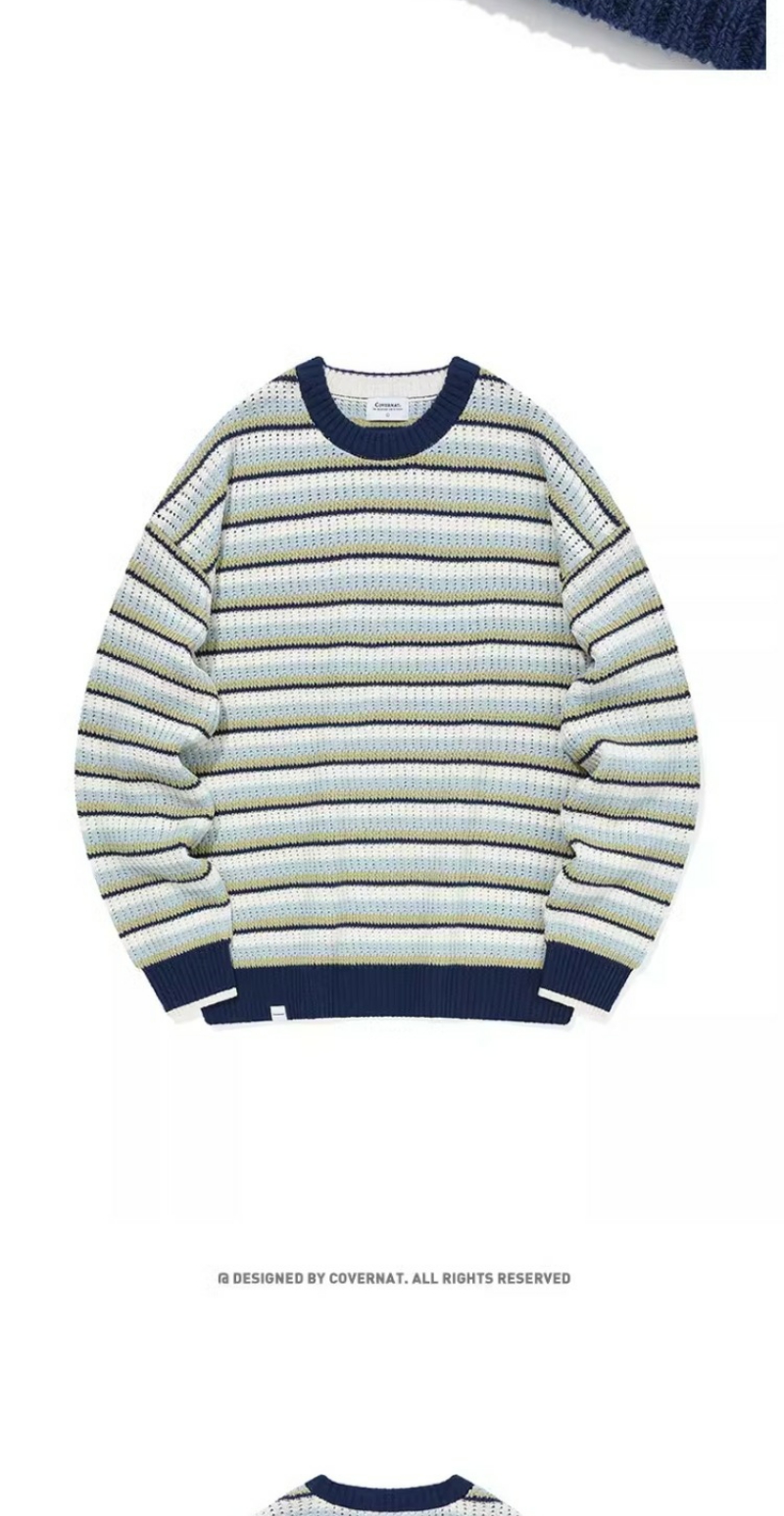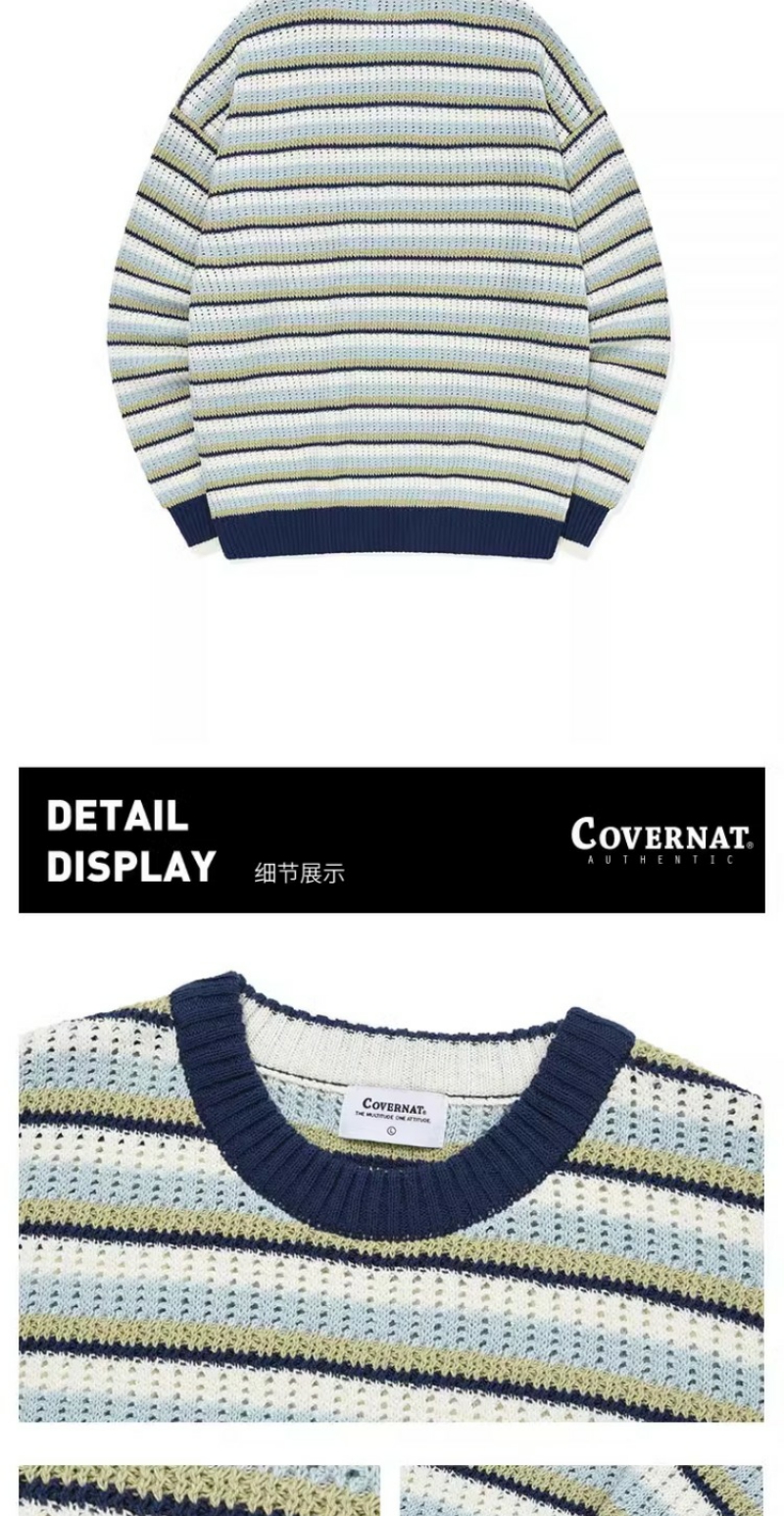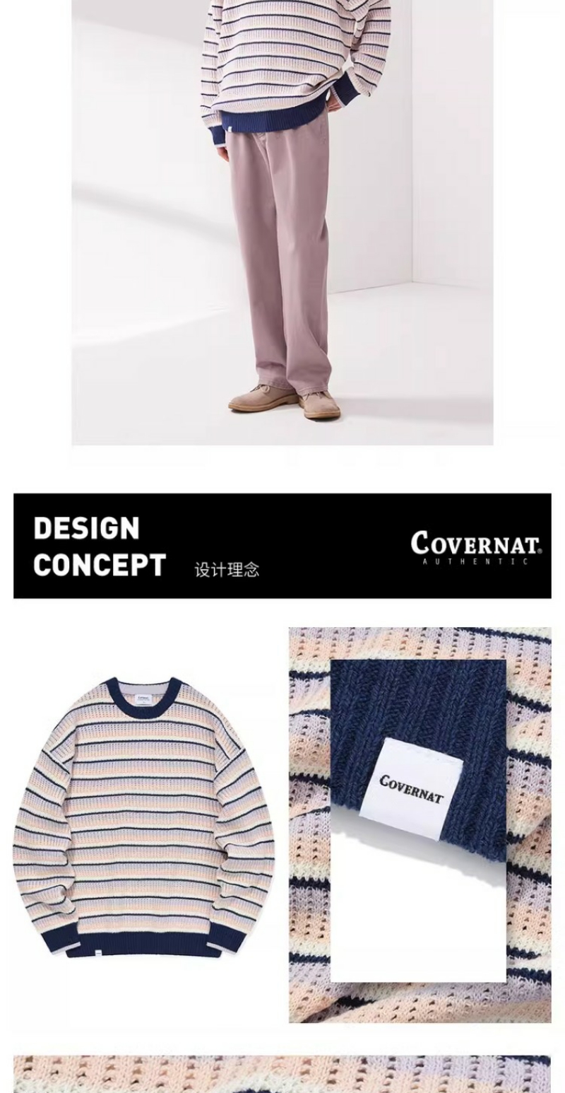 covernat2024春新品情侣款宽松套头针织衫减龄学院条纹CO2401KT05