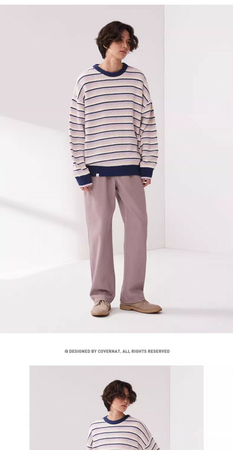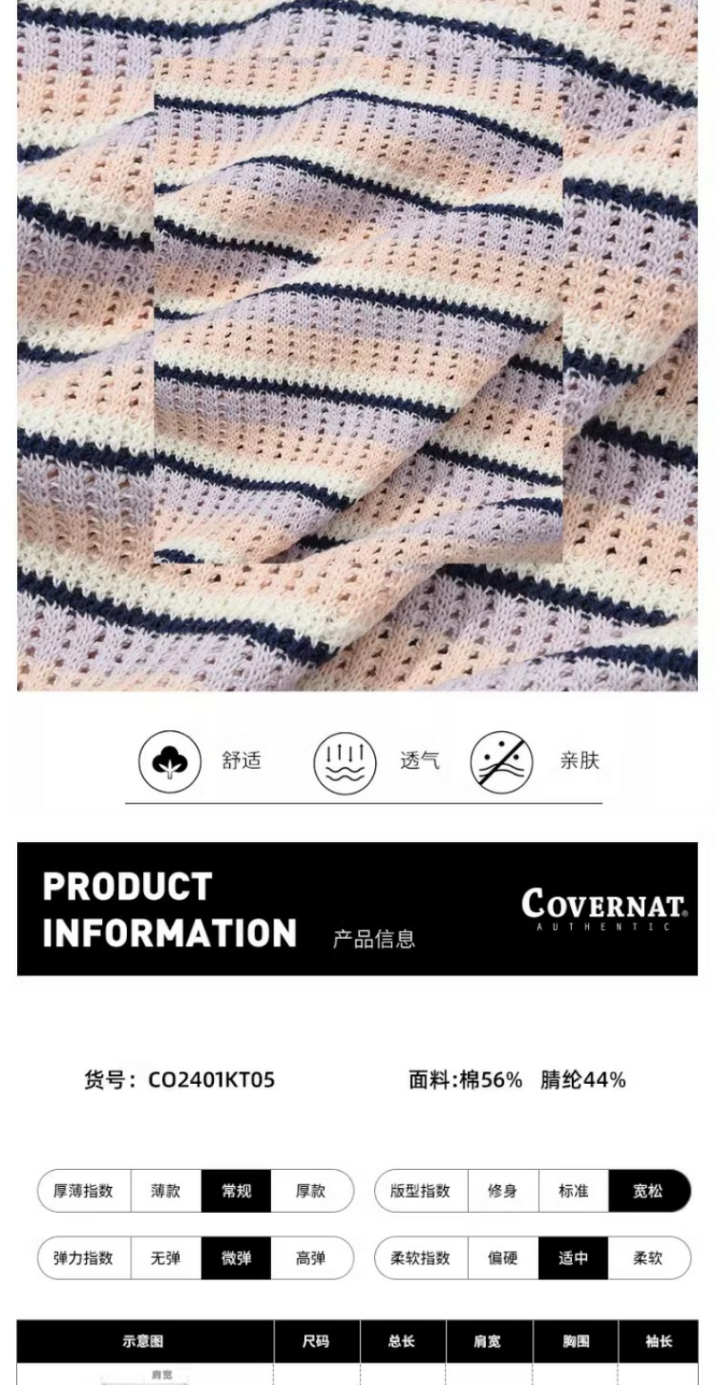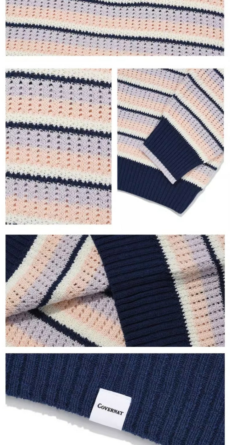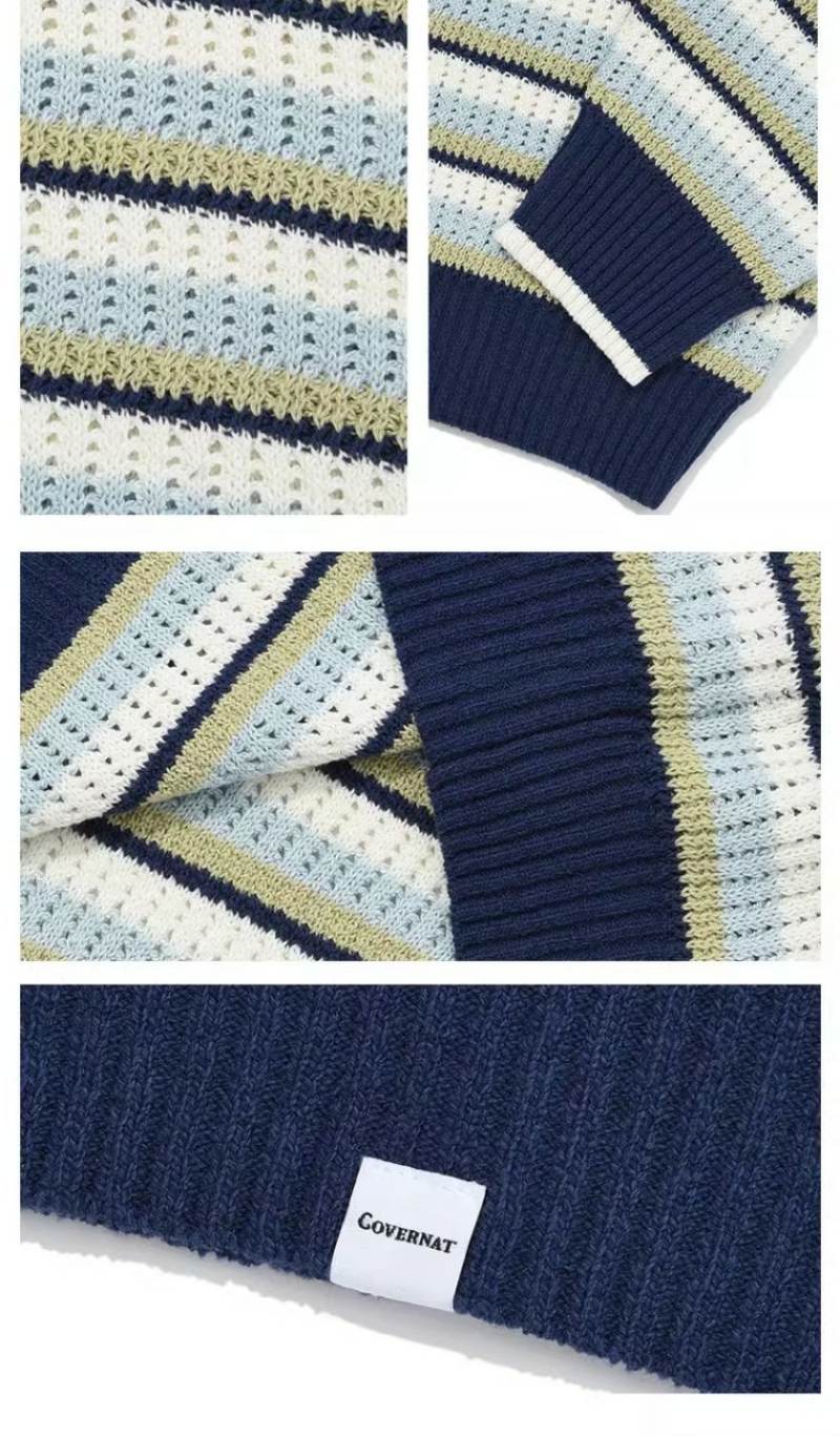 covernat2024春新品情侣款宽松套头针织衫减龄学院条纹CO2401KT05