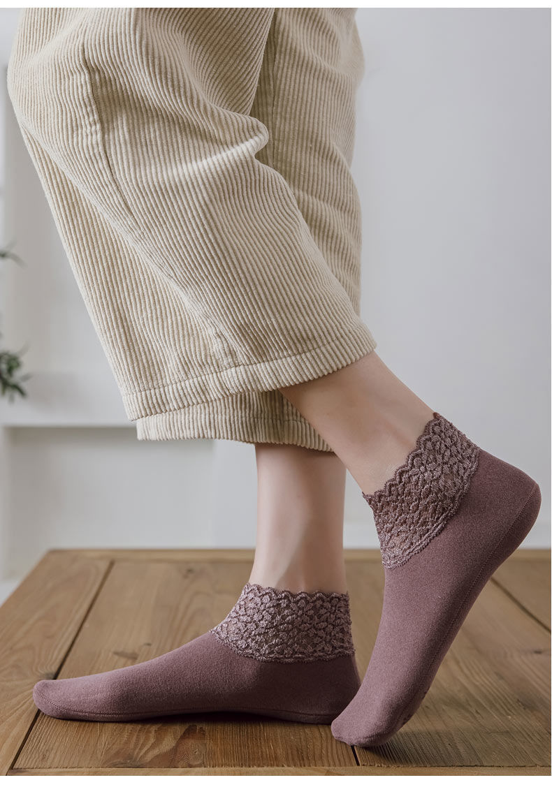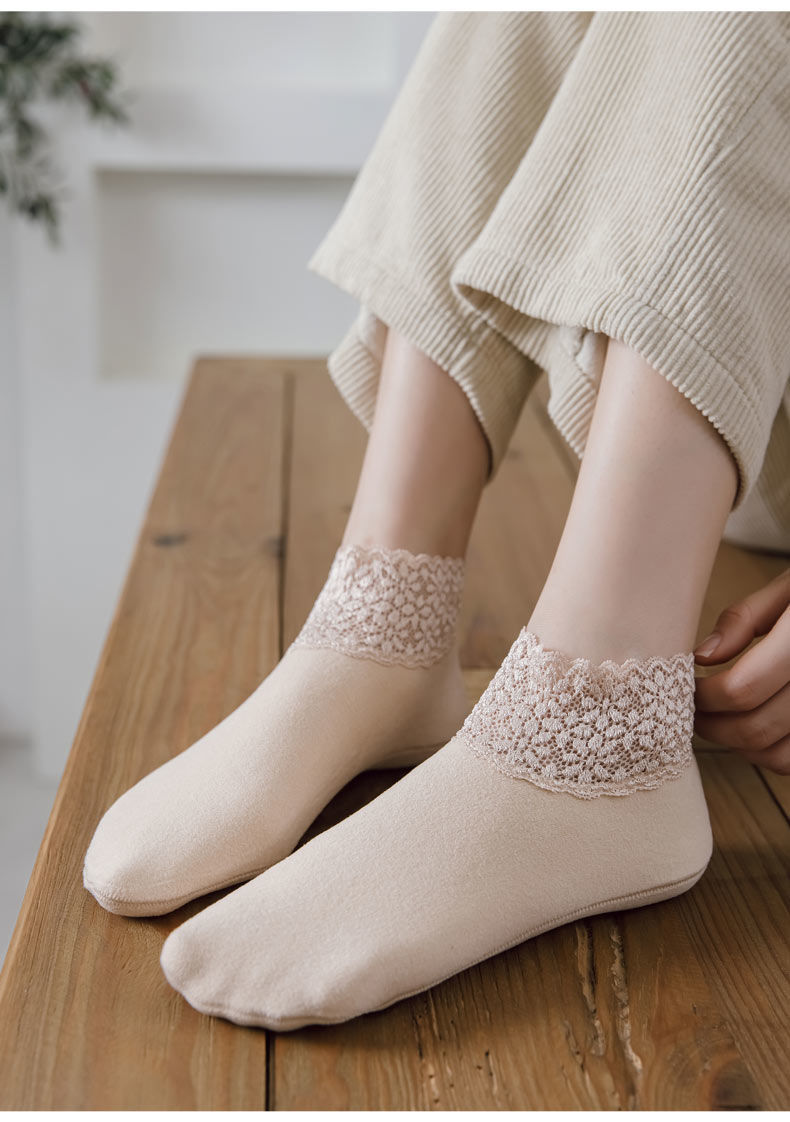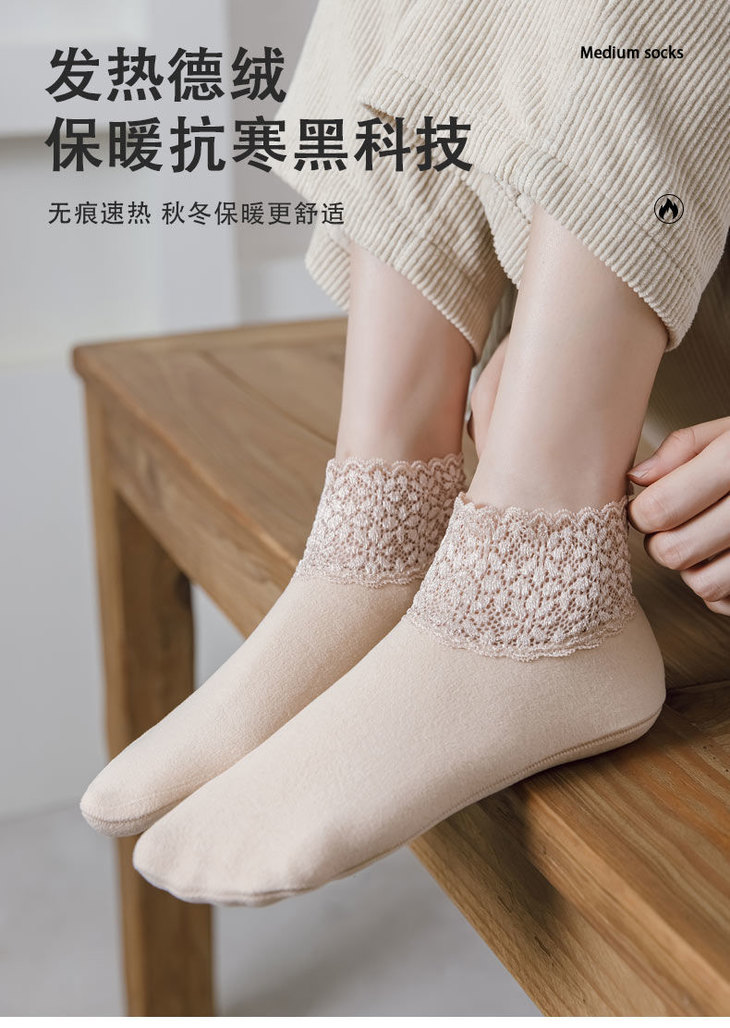 TZF-PXMY211027新款德绒保暖加厚蕾丝花边地板袜