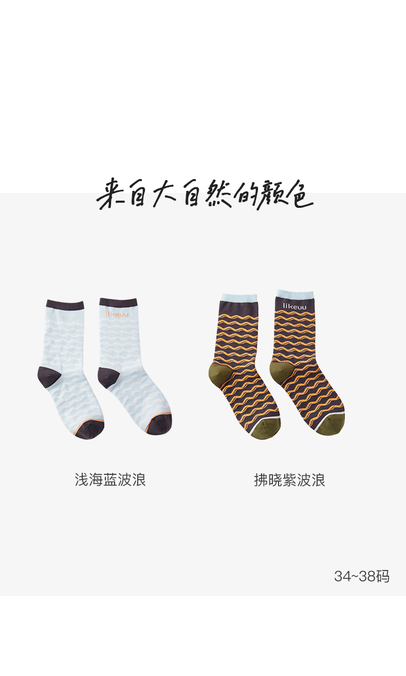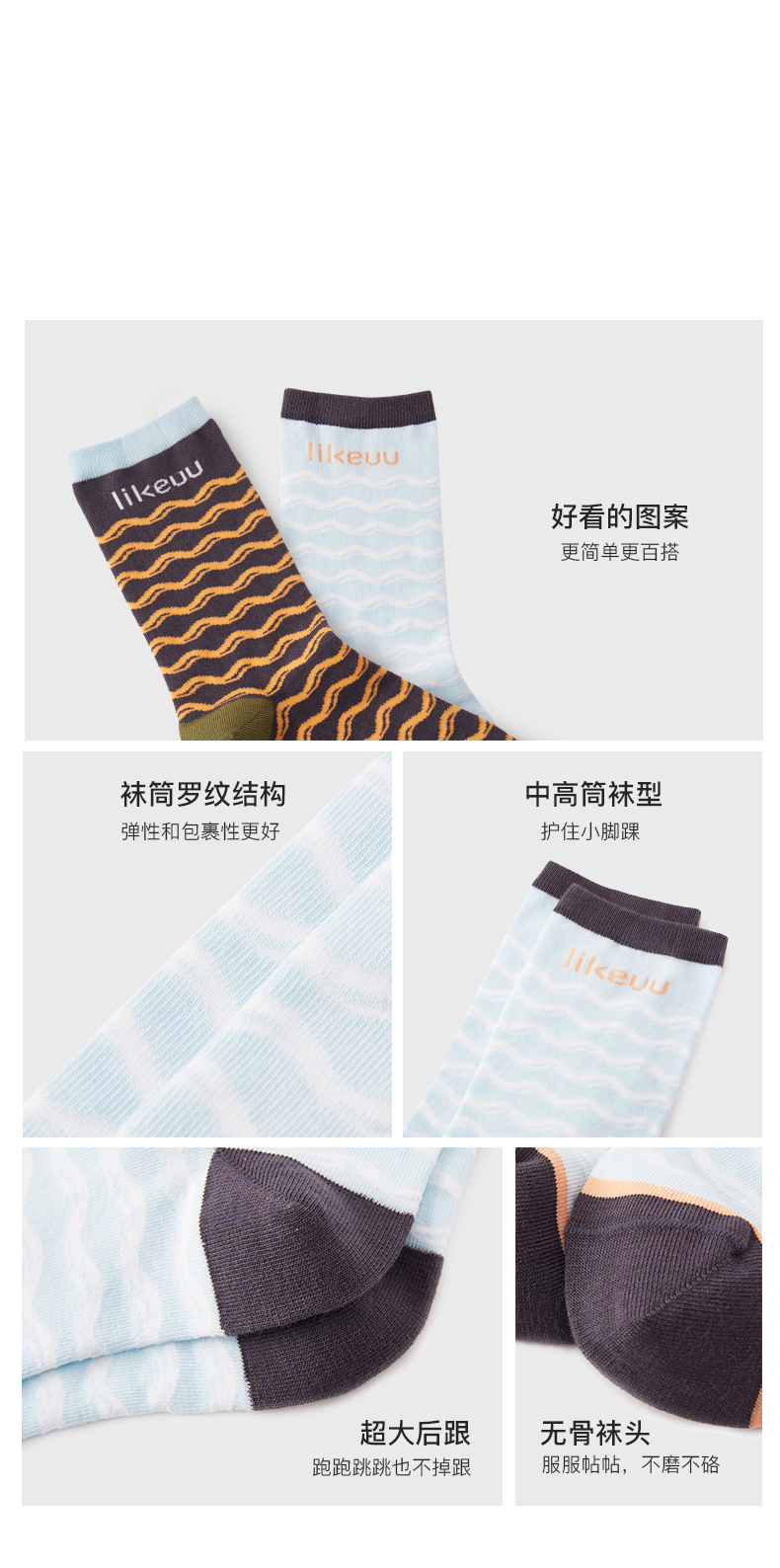 ubras旗下likeuu儿童袜子男女童不易起球透气撞色波浪袜两双装LE1163031 ZY