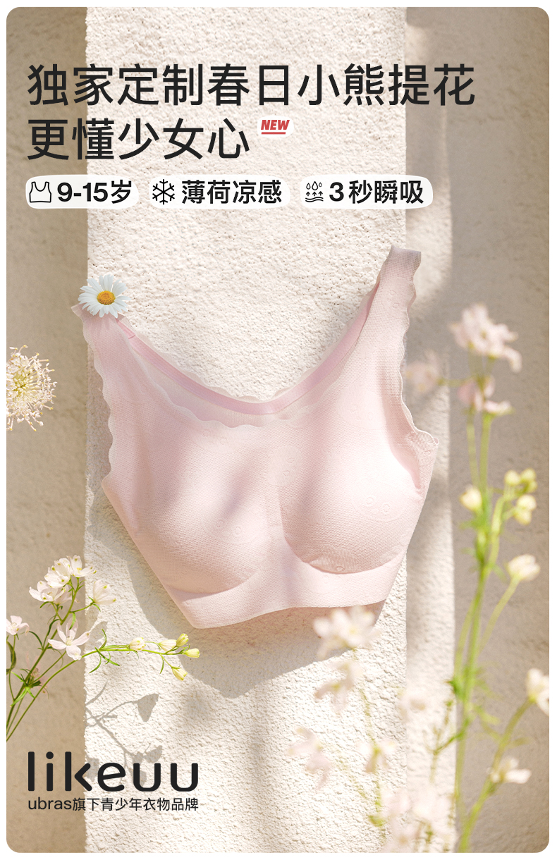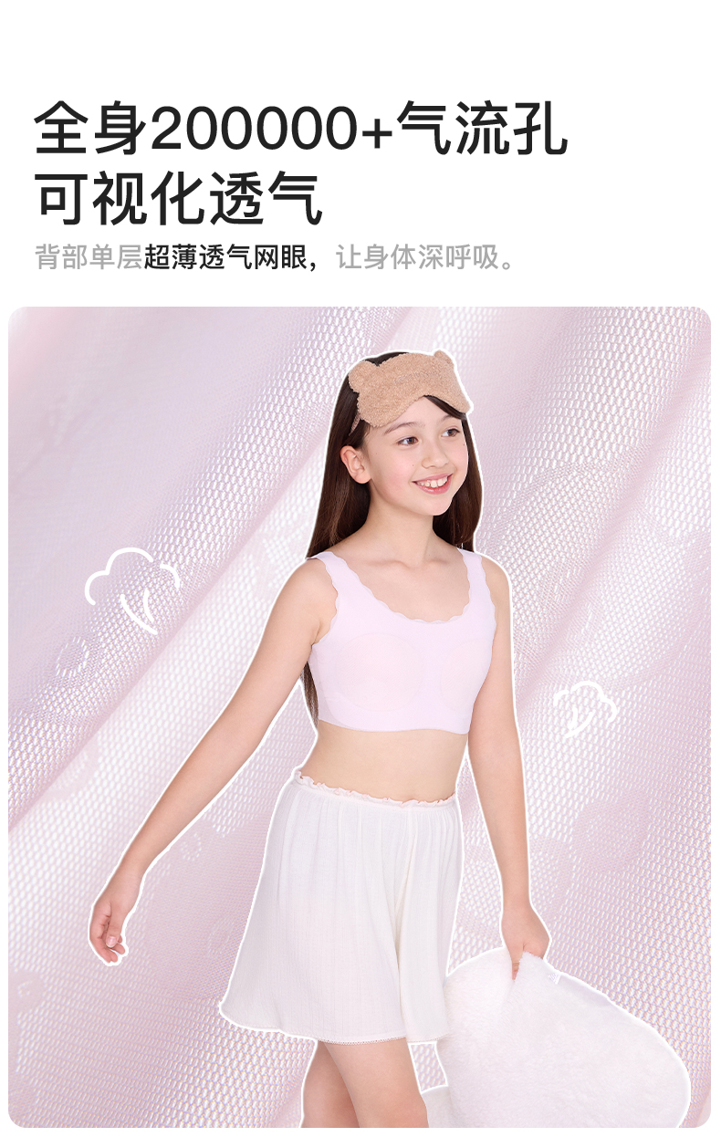 ubras旗下likeuu少女发育期小熊提花透气网孔内衣zy