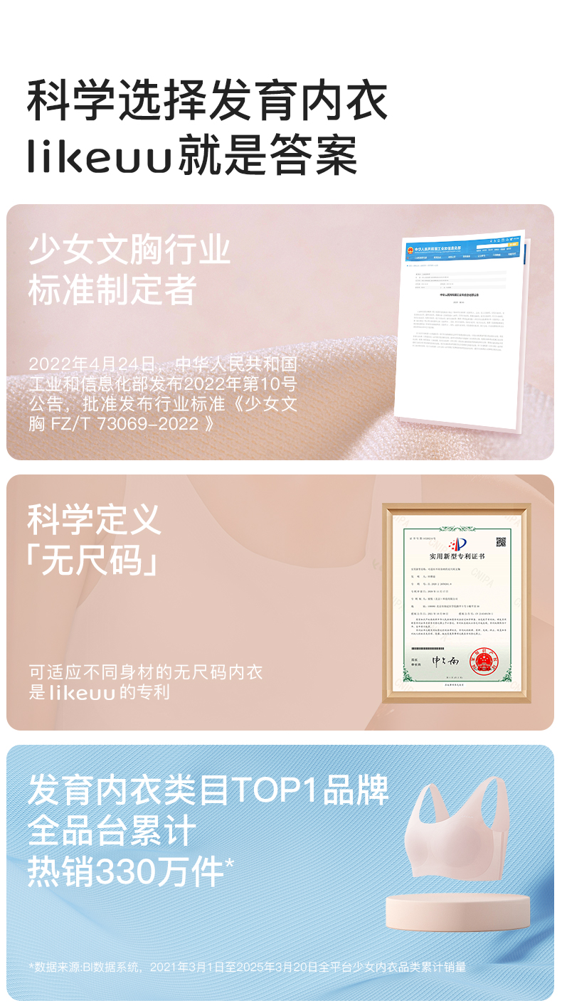 - likeuu是专注于为6~15岁的青少年创造柔软、无束缚的成长体验,以好奇心为灵感的成长发育期贴身衣物品牌。likeuu的产品覆盖内衣、内裤、保暖衣、家居服、运动等品类。