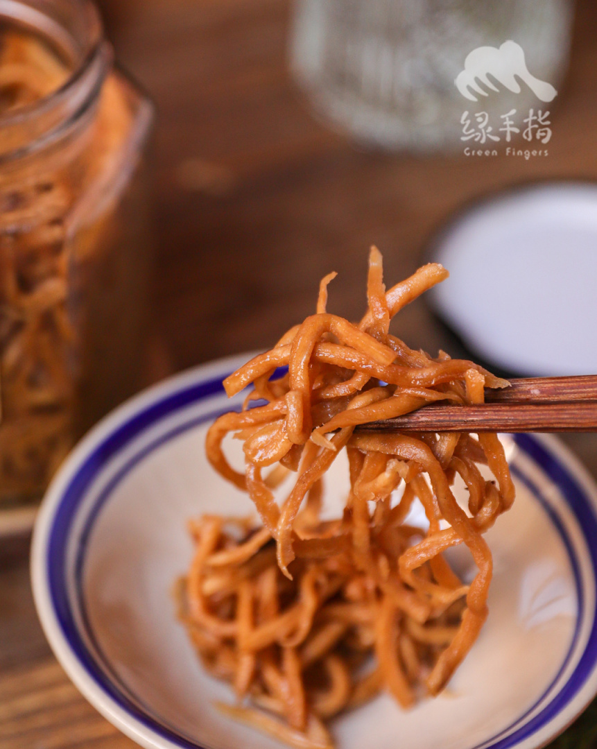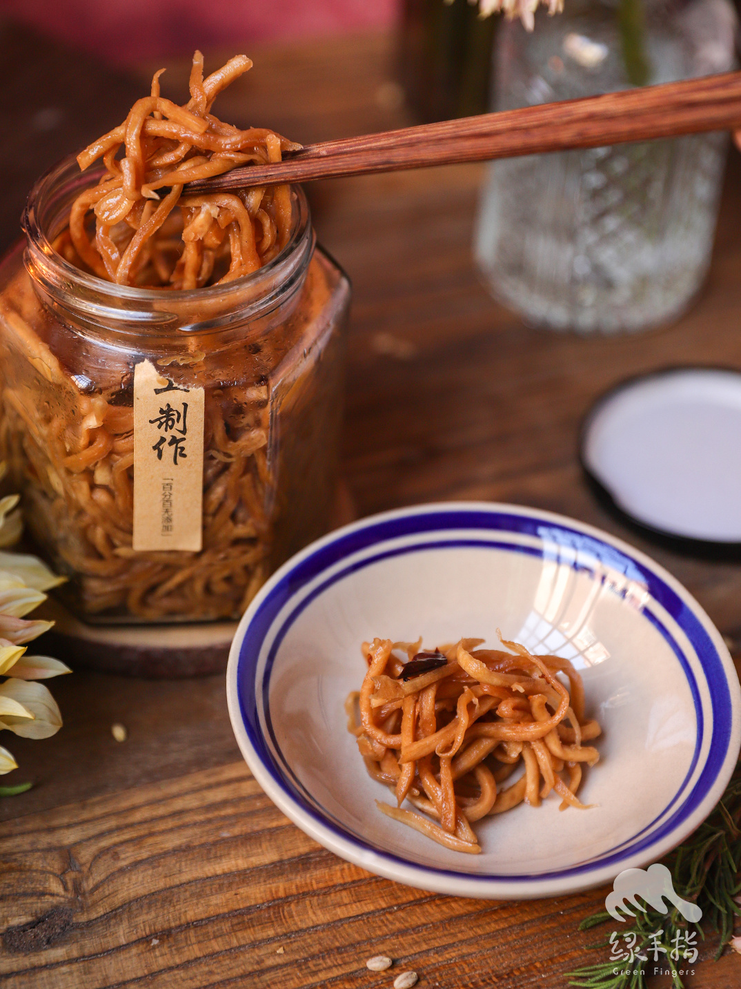 根用芥菜,俗称芥菜疙瘩、大头菜,是秋冬制作咸菜的最常用到的,榨菜、雪里蕻也都属于芥菜这个大家族。腌制的芥菜丝比较爽脆,带一点点辣,入口就能尝到淡淡的芥末味,但并不冲鼻,让人越吃越上瘾。
