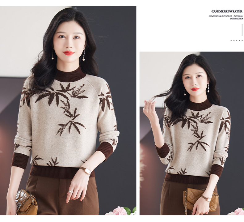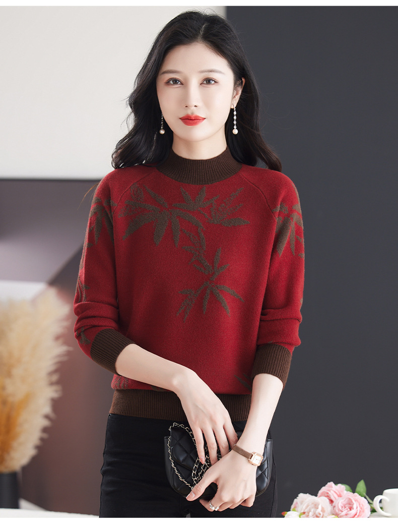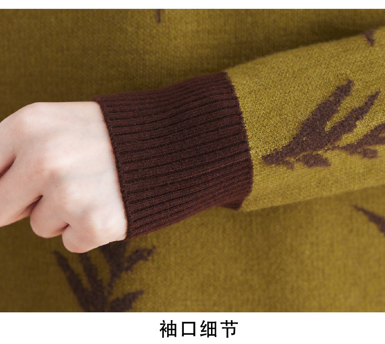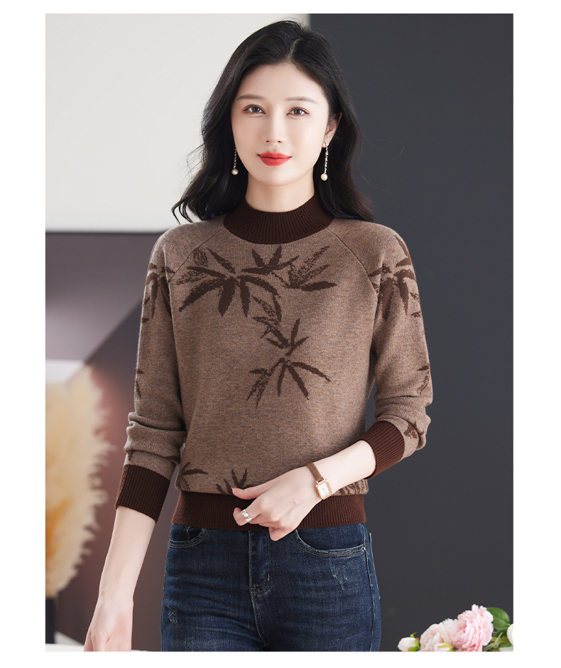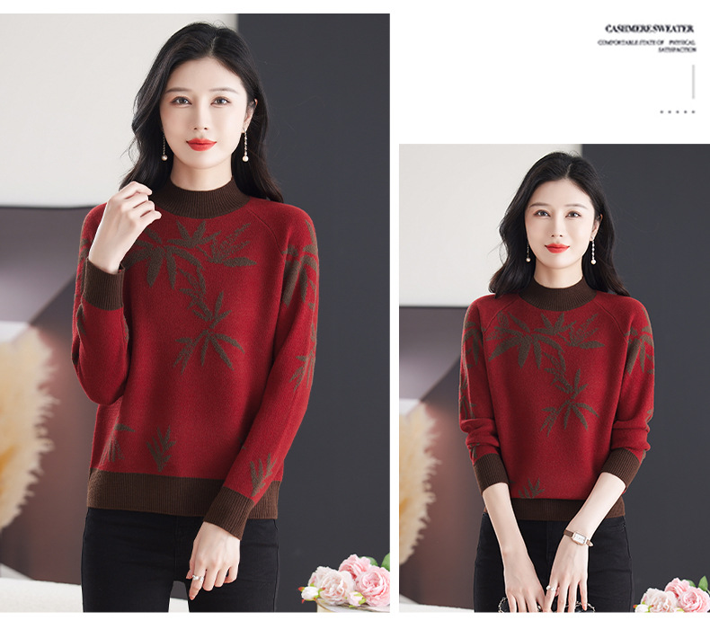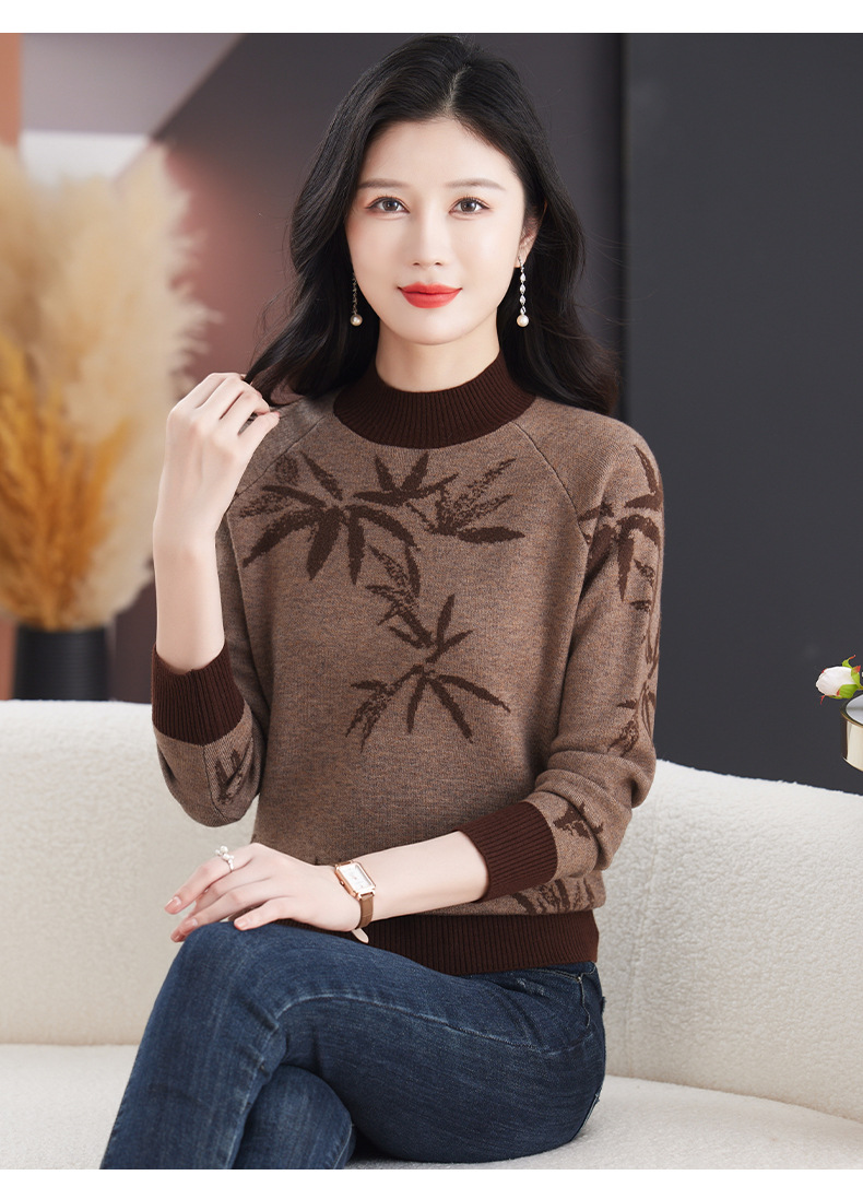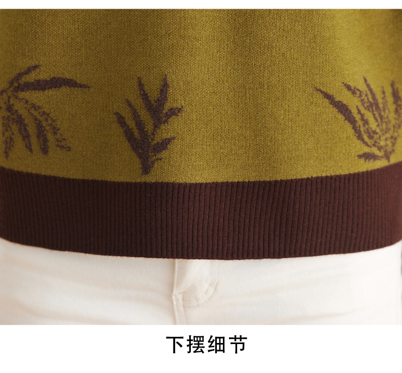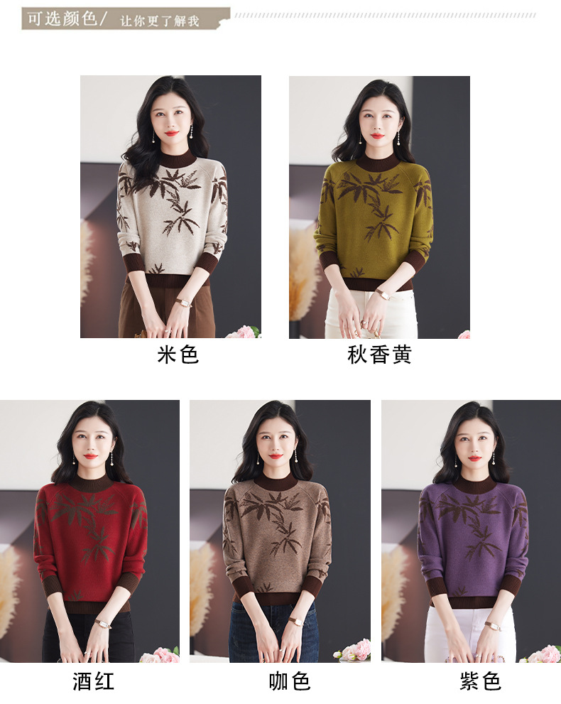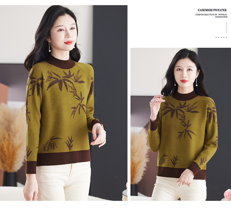 CC-103-7931新款时尚复古提花针织衫毛衣女士宽松厚款半高领百搭减龄上衣
